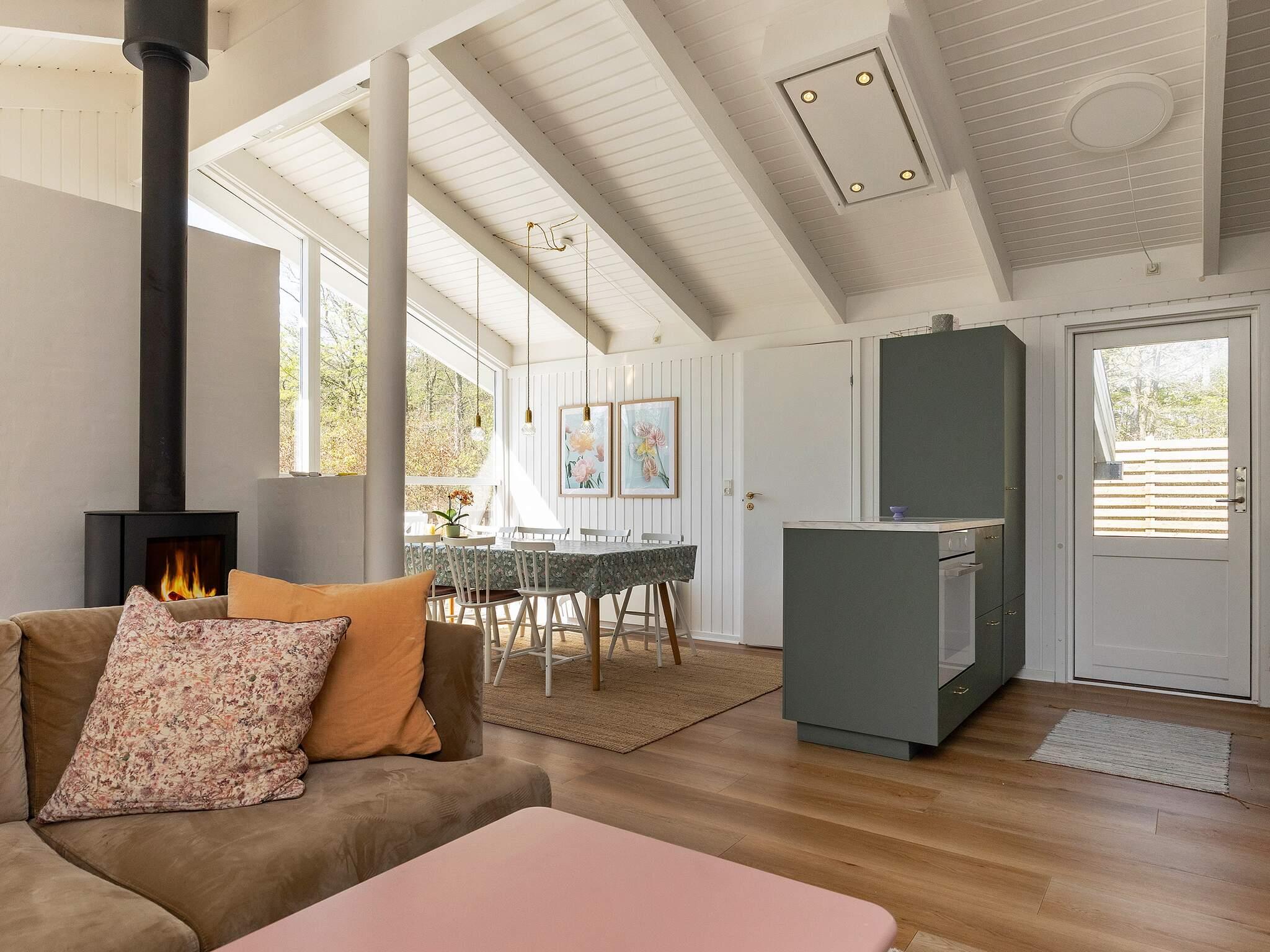 Huset har tre soveværelser: et stort soveværelse med en dobbeltseng, et andet værelse med en køjeseng og et tredje værelse med to enkeltsenge. Derudover er der en hems under det skrå tag med yderligere to sovepladser, primært velegnet til børn. Selvom der ikke er nogen traditionel tv-modtagelse, er en Chromecast tilgængelig til at streame dit eget indhold via en bærbar eller smartphone.