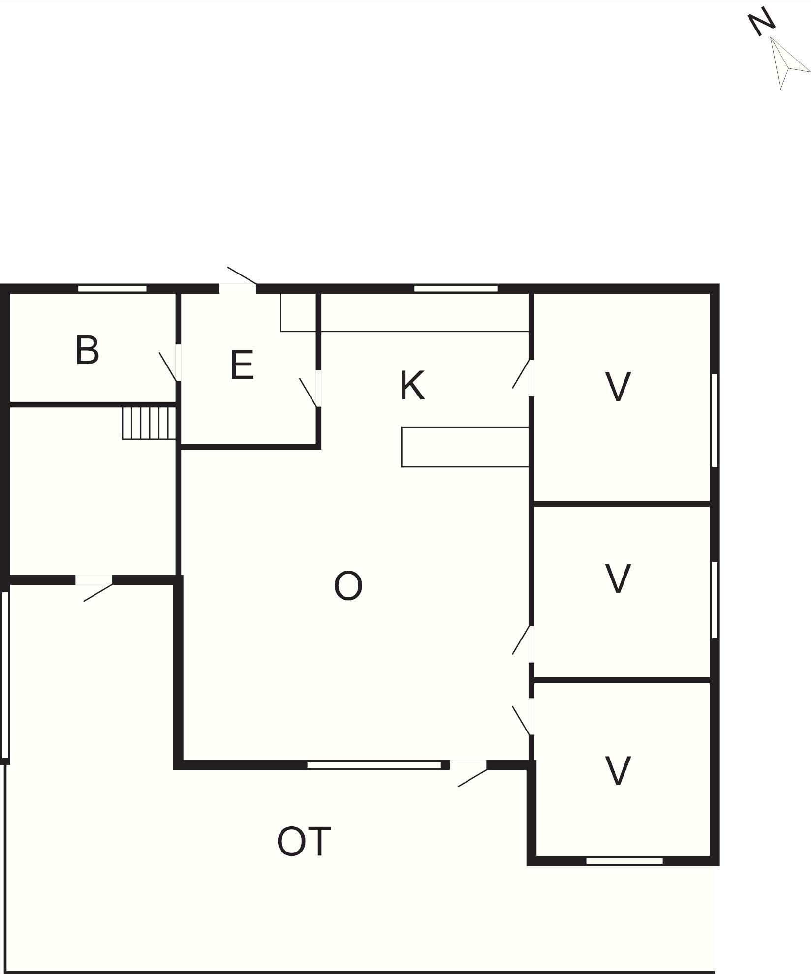 Huset er opdelt med 4 rum og et fint badeværelse. Opholdsrummet er sammenhængt med køkkenet, hvilket byder op til familie nærvær, snak mens aftensmaden laves og hygge i stuens sofaarrangement foran tv'et.