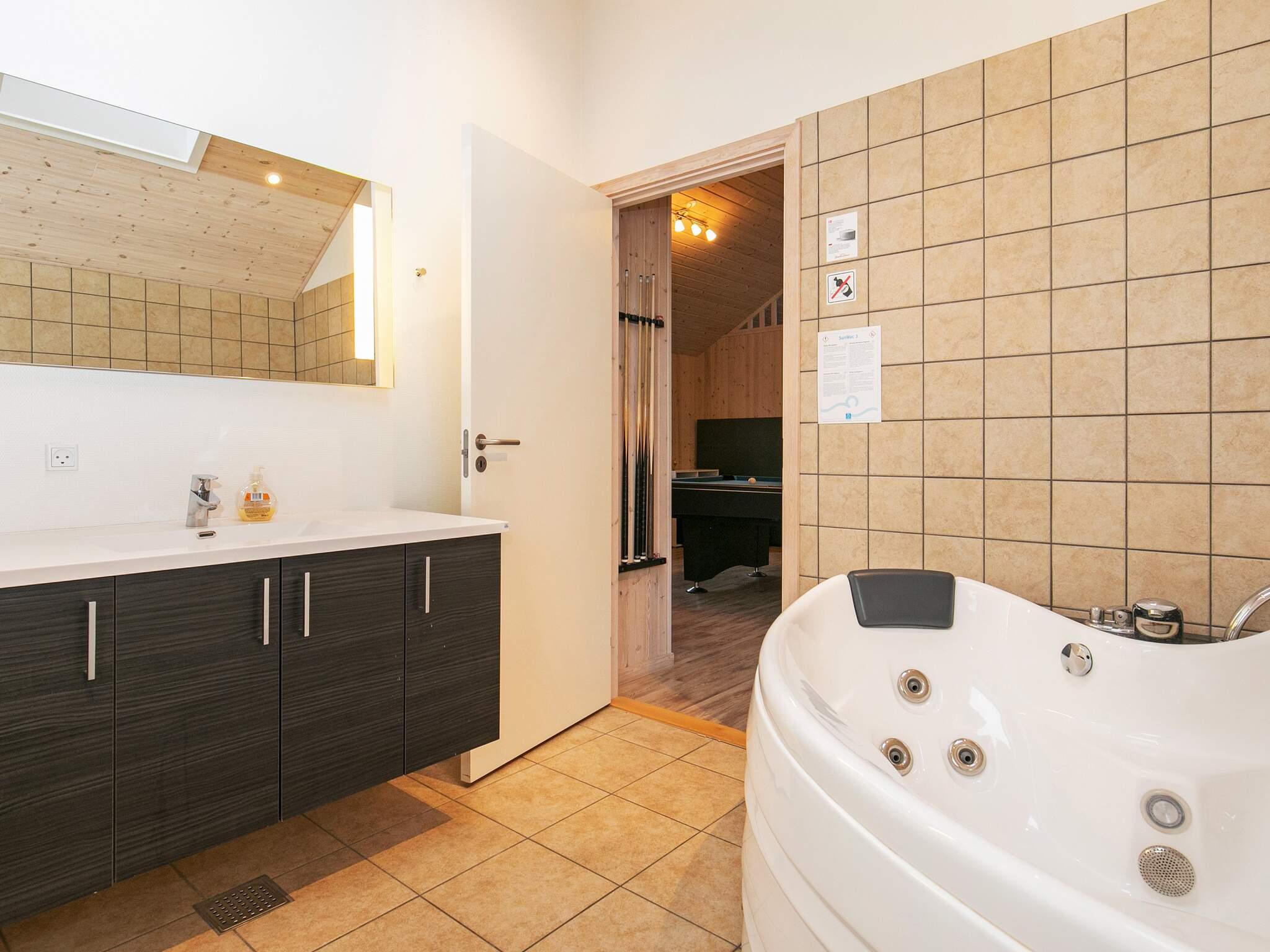 Stort sommerhus inkl. 15 m² hems med 4 madrasser og oplukkeligt velux vindue. Huset er velegnet til flere familier. Til husets 46 tommers tv hører en sound bar. Via aux stik og bluetooth kan I tilslutte smartphones, ipads o.lign. På tv´et er der ARD, ZDF, Sat 1, RTL, NRK 1, 2-eren, SV1 og de danske almindelige kanaler udvidet med en stor sportspakke. Trådløs bredbånd sørger for både wi-fi og kanalerne på tv’et. På hemsen er der et 22 tommers tv med dvd-afspiller. I alle værelser er der 2 enkeltsenge (80x200 cm). Sengene er stillet som dobbeltsenge, på 3 værelser kan sengene skubbes fra hinanden. Huset har en økonomisk varmepumpe, så I hurtigt og nemt kan regulere temperaturen. Bordtennis, billard og dart i huset. Fodboldmål, petanque, mulighed for volleyball og legetårn med både gynger, klatretov og rutsjebane.