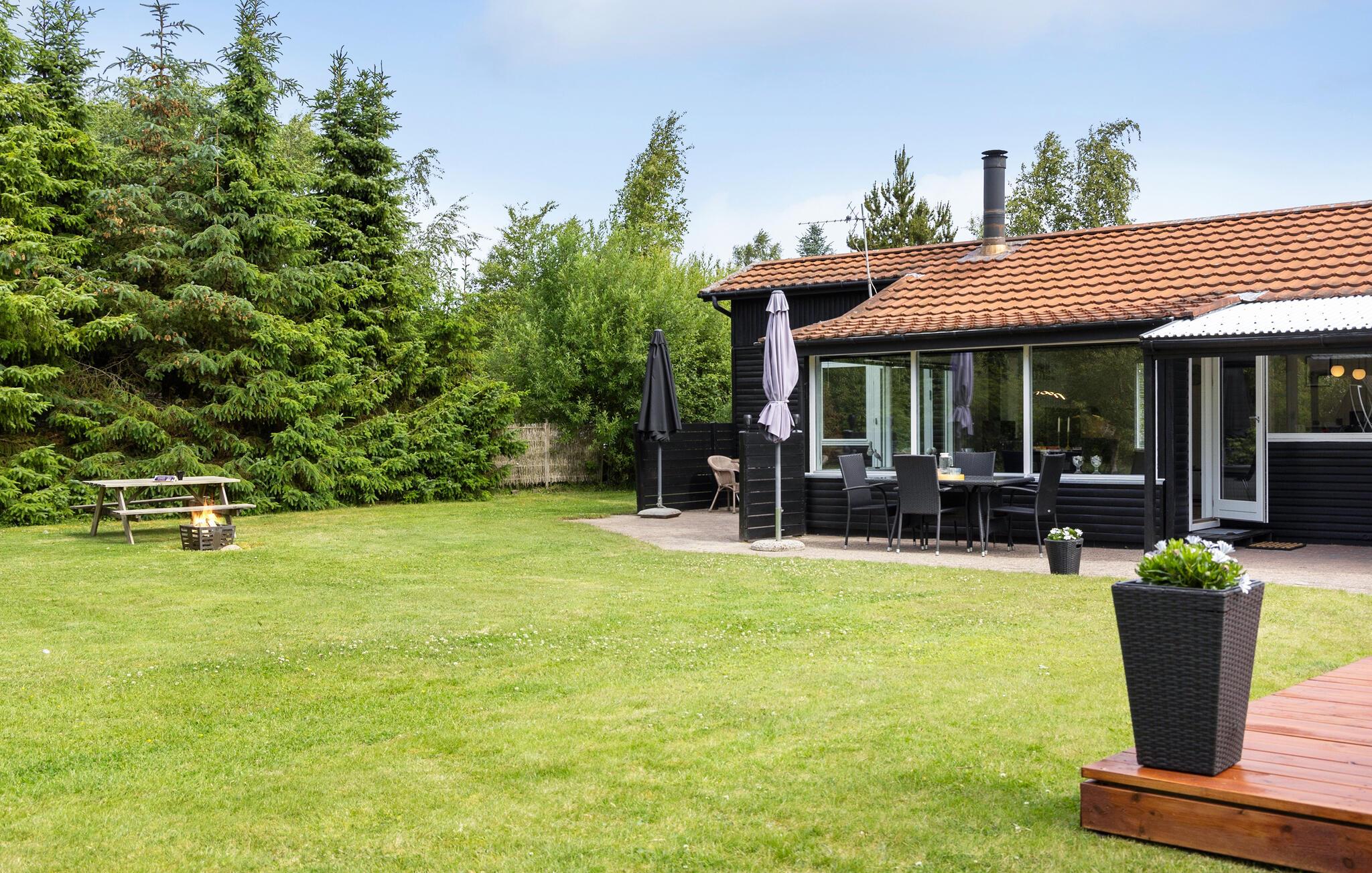 Oplev ægte afslapning i dette børnevenlige feriehus med vildmarksbad og stor have.