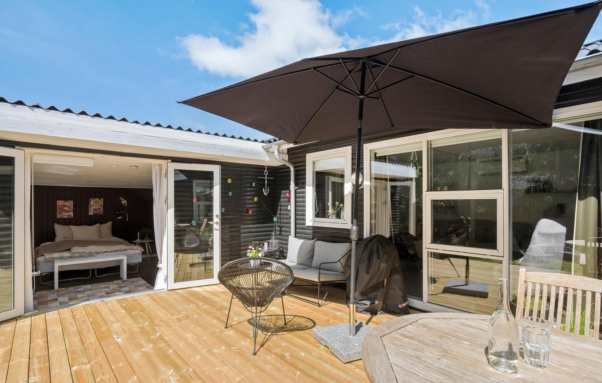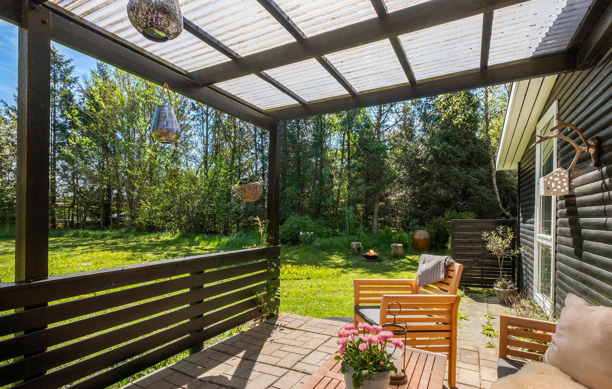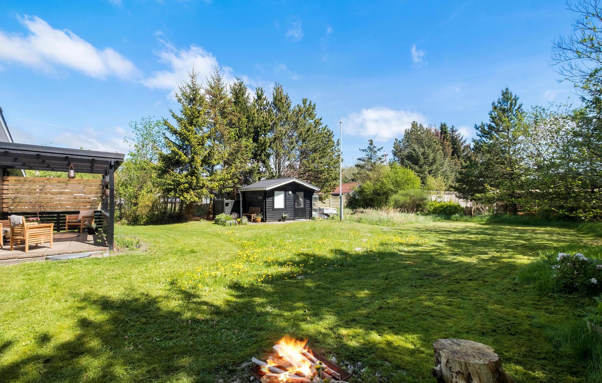 Udenfor venter en privat, indhegnet have med flere terrasser, så I uden problemer kan finde sol, skygge og læ hele dagen. Den større naturgrund er dog ikke indhegnet, og her kan jeres børn boltre sig med legeredskaberne og spille bold. Om aftenen kan I runde en skøn sommerdag af med et lækkert grillmåltid, mens I lægger planer for den kommende dag.