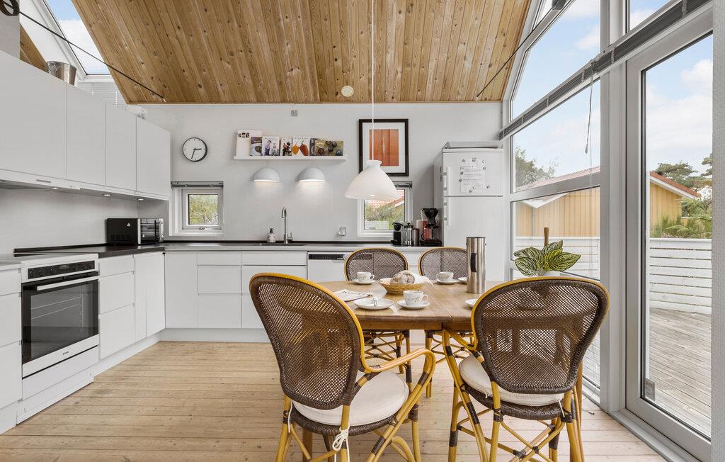 Tilbring en dejlig tid sammen med familien i dette hus i Hals, som ligger idyllisk ved Aalborg Bugt, kun få minutters gang fra den nærmeste sandstrand. Dette indbydende hus har alt, hvad I har brug for til et komfortabelt og afslappende ophold. Det attraktive opholdsområde er husets hjerte og skaber den perfekte ramme for fælles stunder. Nyd jeres måltider ved bordet i det åbne køkken-alrum, og tag derefter kaffen med ud på den store terrasse, hvor der er plads til hele familien. Om aftenen sørger brændeovnen for en varm og hyggelig atmosfære, hvor I kan slutte dagen af i ro og mag.