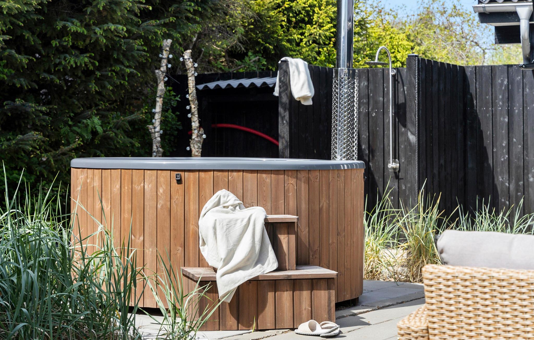 Lad jer forkæle af den hyggelige varme fra jeres spabad i det alsidige udendørsområde, mens I indånder den friske luft, og børnene nyder de mange legemuligheder. Glæd jer til stemningsfulde grillaftener under stjernehimlen og lad naturens fred og ro træde i kraft på jer.