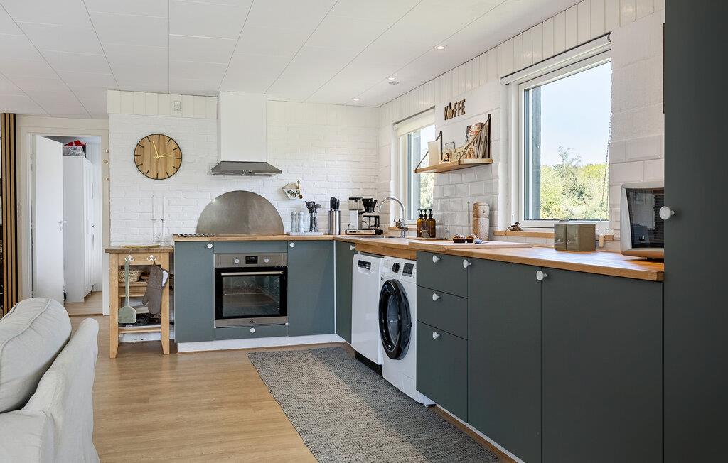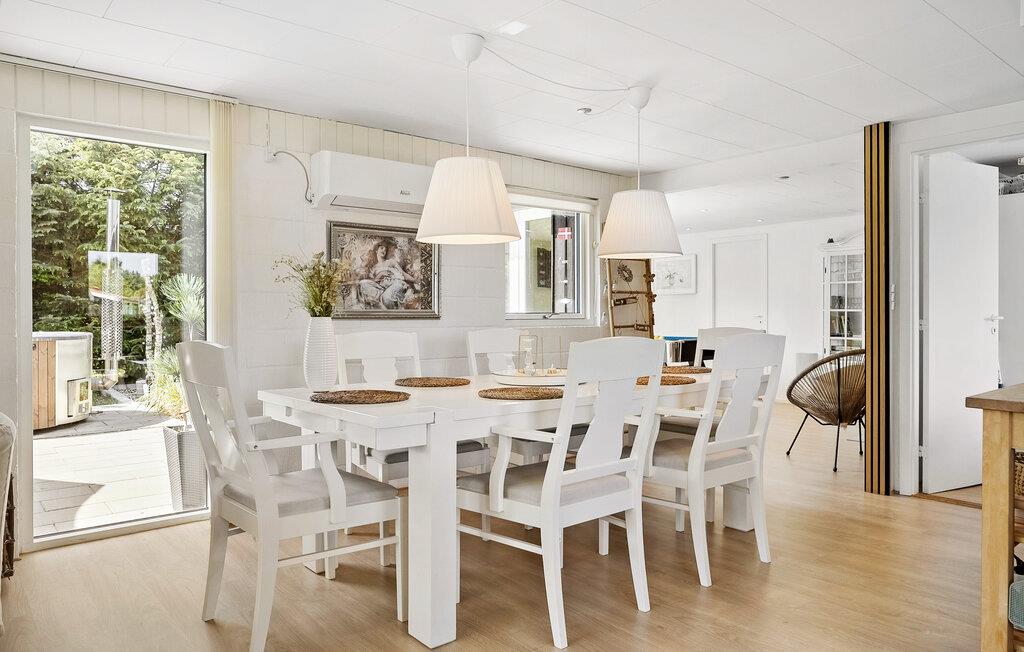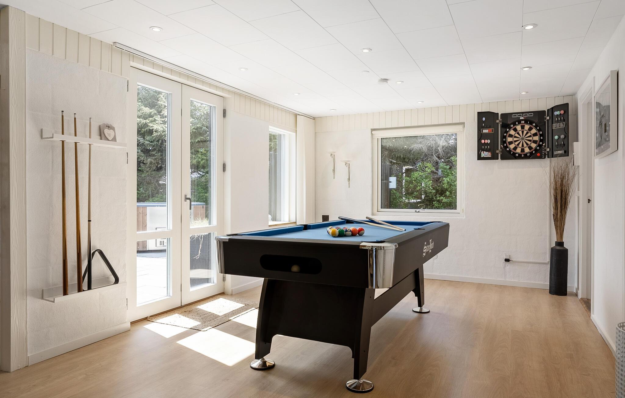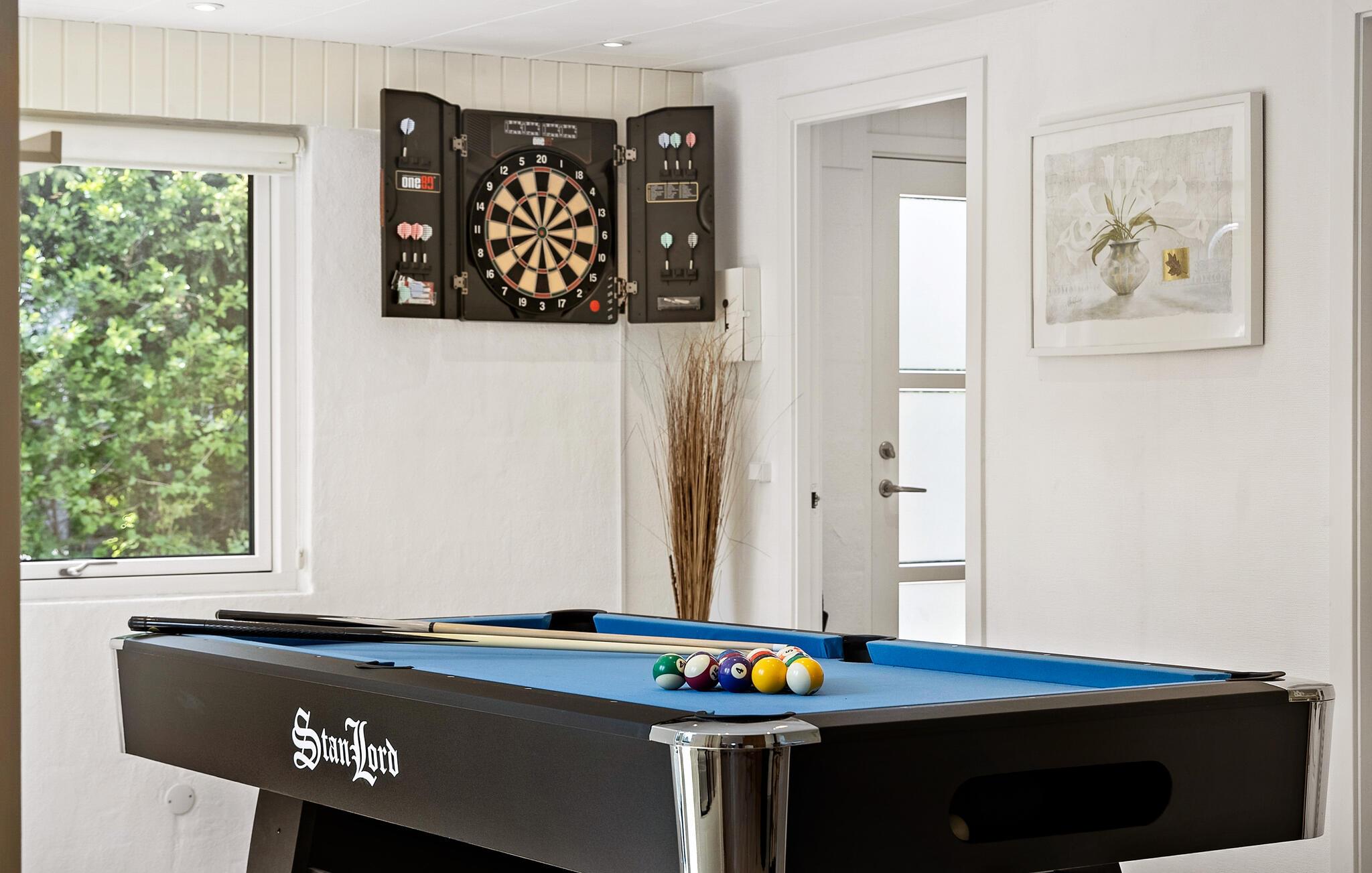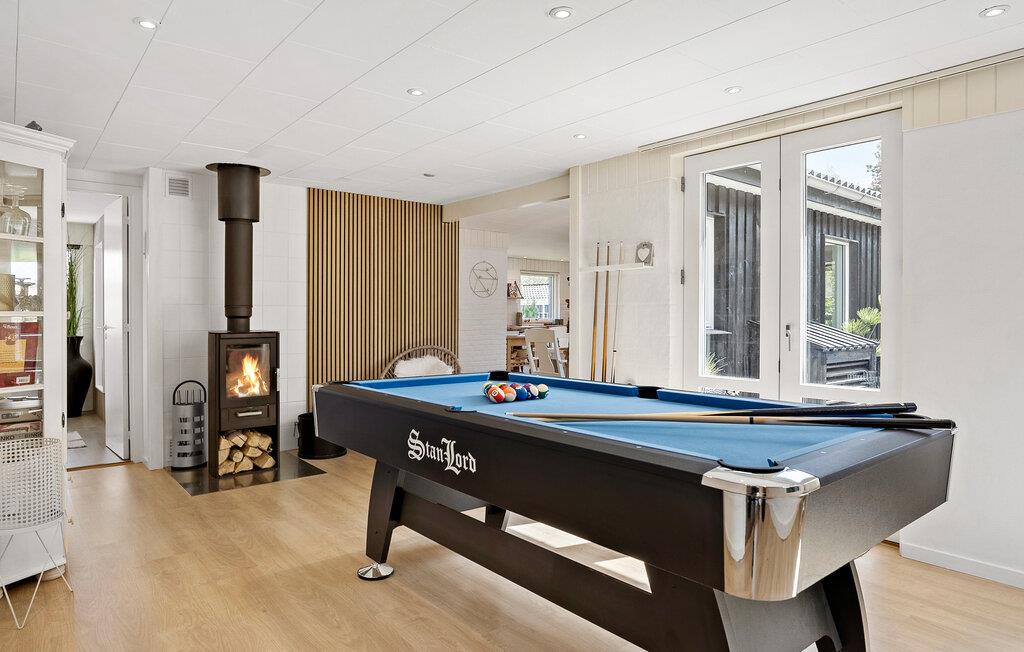 Glæd jer til en god stemning i dette sommerhus af høj kvalitet. Brug tid sammen på at lave mad i det rummelige køkken og nyd jeres livretter i velkendt selskab i den indbydende spiseplads. Udfordr hinanden ved poolbordet og afslut dagen på den komfortable sofa med en bog eller en film.