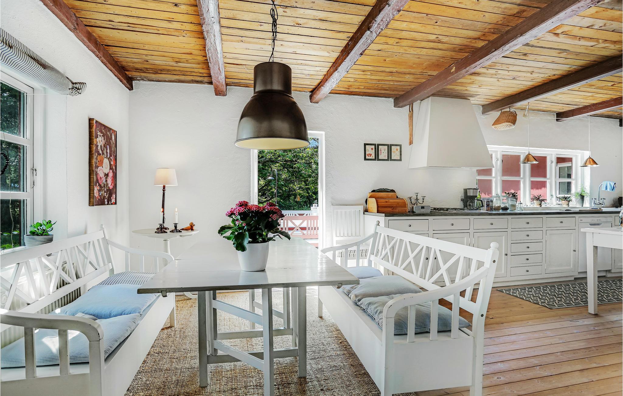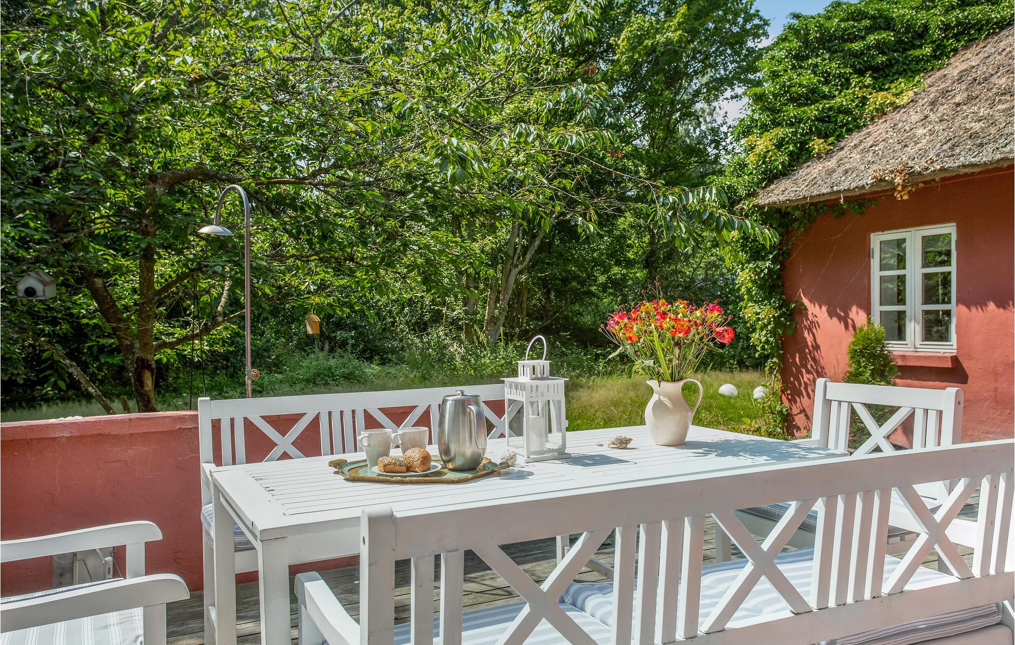 Udenfor lægger den smukke og vilde have op til afslapning i græsset eller leg på gyngen. På den smukke terrasse kan I slutte aftenen sammen over en lækker grillret og gode snakke.