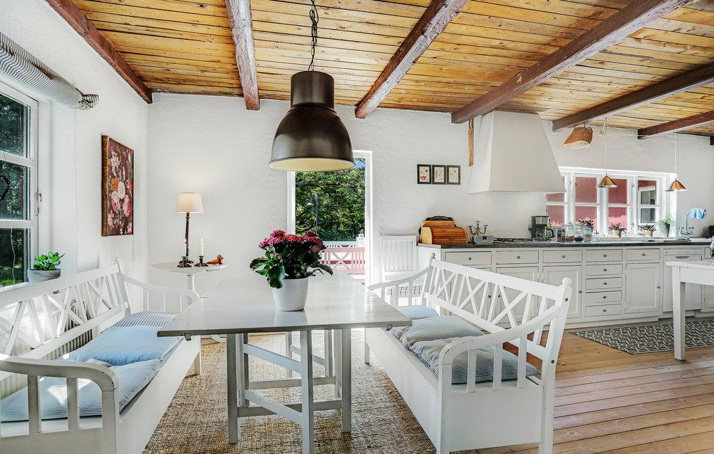 Glæd jer til en skøn familieferie i Hals, hvor I finder dette karakterfulde hus. Huset er stemningsfuldt og smukt indrettet med flotte detaljer som træ- og stengulvene eller bjælkelofterne. Nyd god af de lækre og rummelige værelser. I har også den luksus at have flere opholdsrum, så I kan samles eller tilbringe lidt tid hver for sig, alt efter behov. Stuen med åbent køkken udgør husets omdrejningspunkt og kommer til at danne ramme for mange hyggelige stunder.