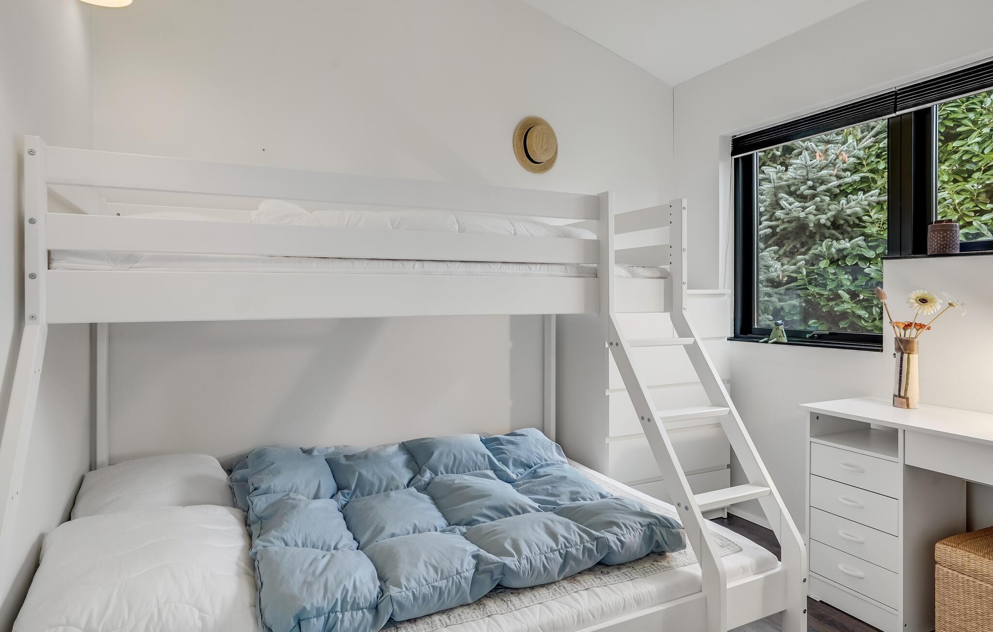 Soveværelse (nr. 2) - 2 Sovepladser. (Dobbeltseng(e)). 1 Soveplads. (Etageseng(e)).