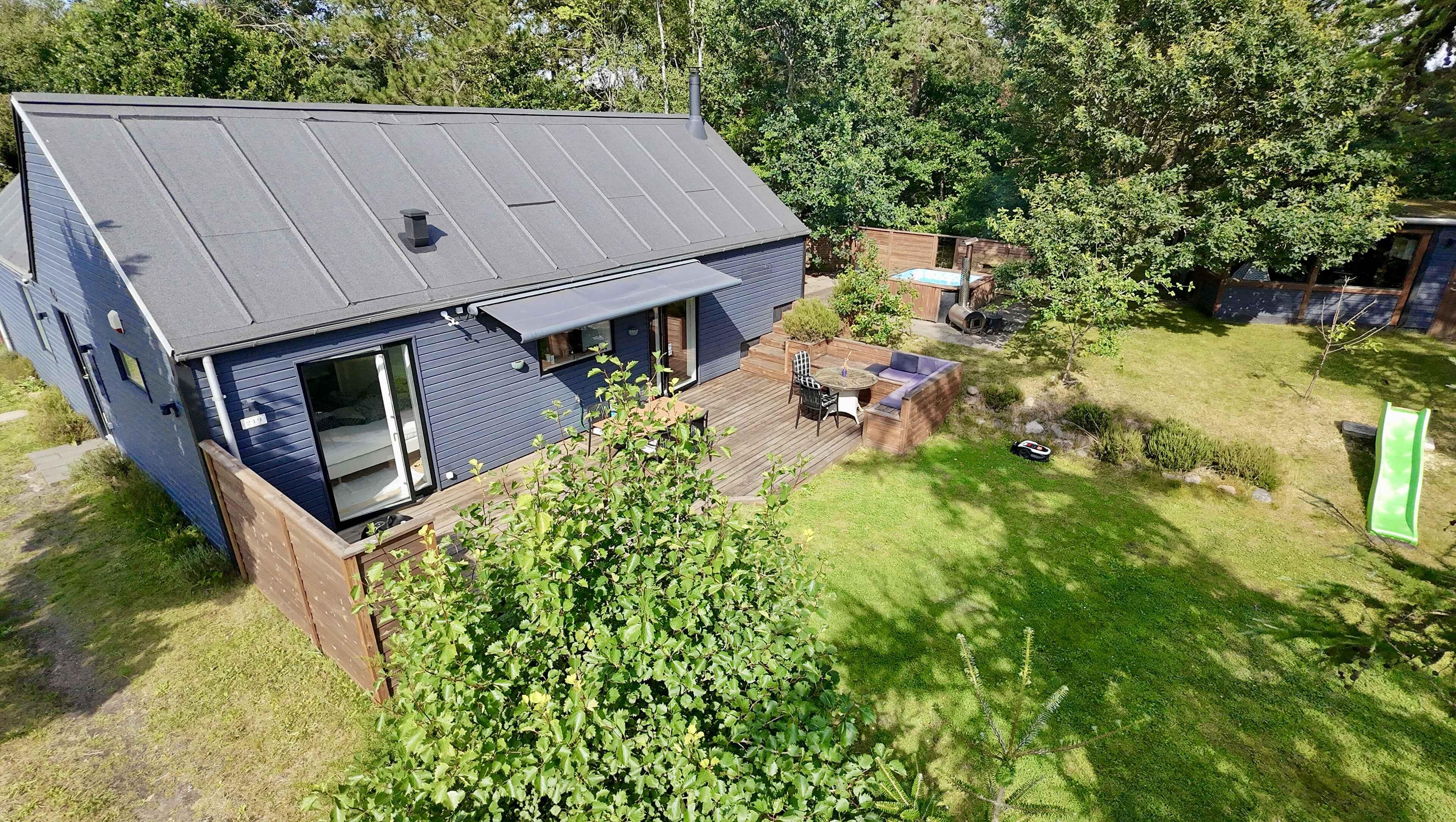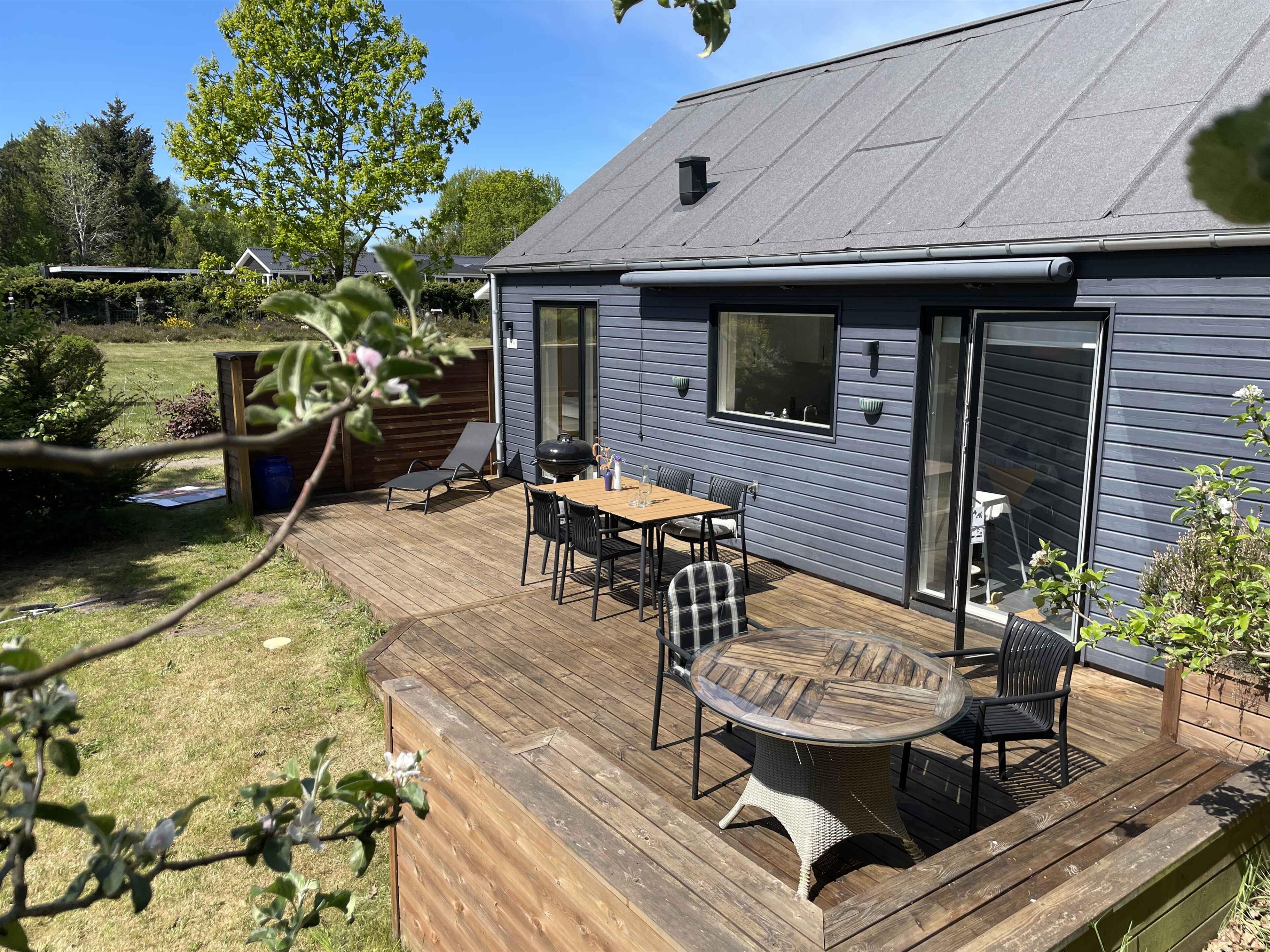 Moderne feriehus fra 2015 nær Hou med vildmarksbad, brændeovn og stor terrasse.