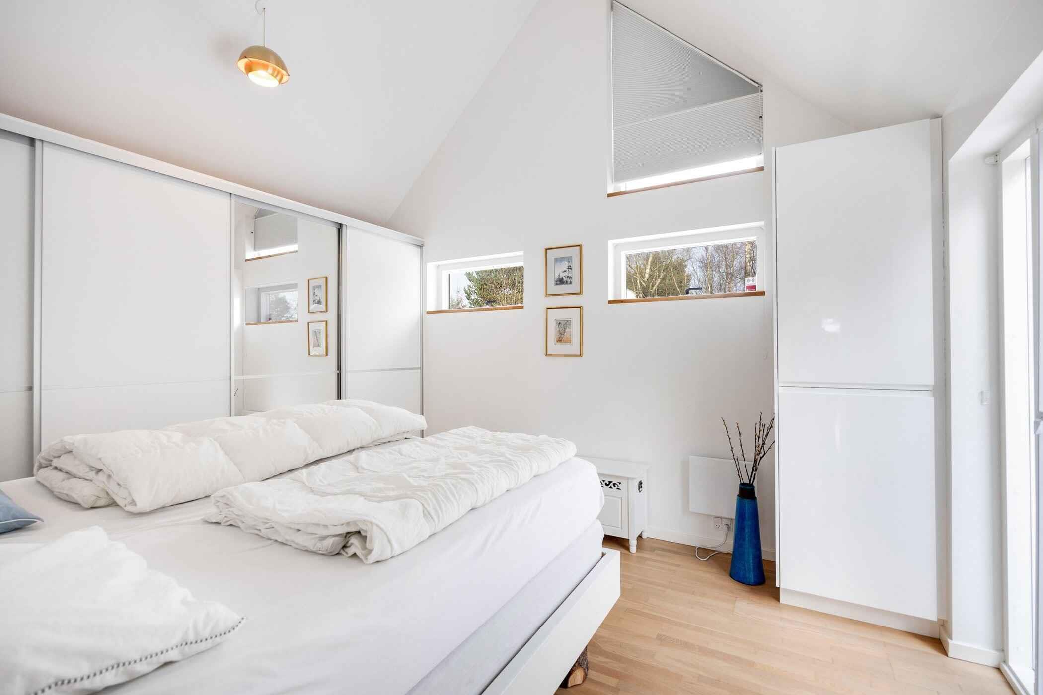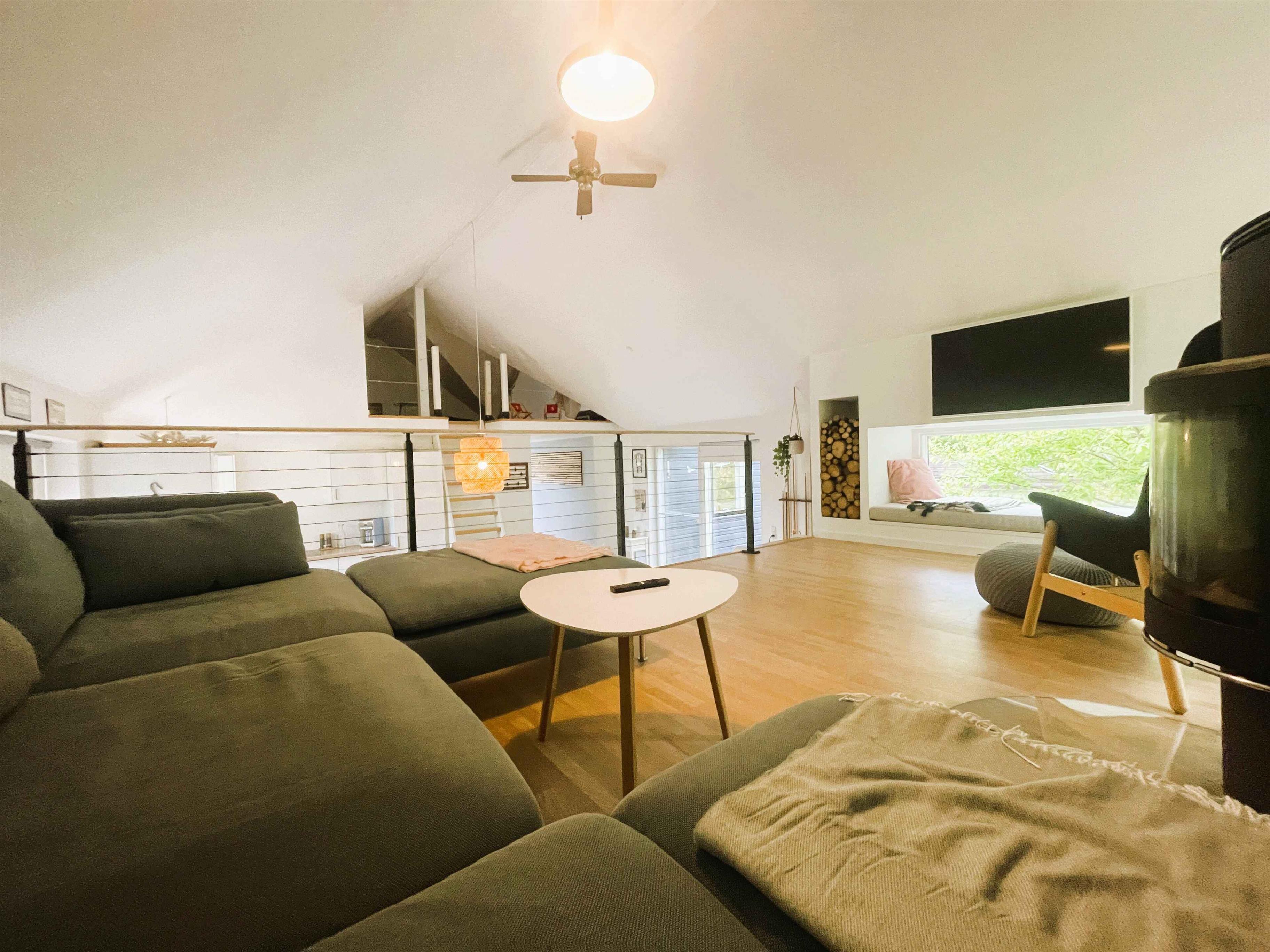 Unik feriehus fra 2015 på 99 m² til 6 pers. med hems, brændeovn og charmerende alkove. Stor terrasse med vildmarksbad, udendørs bruser og bålplads. Kun 1 km fra Hou, strand og hyggeligt havnemiljø.