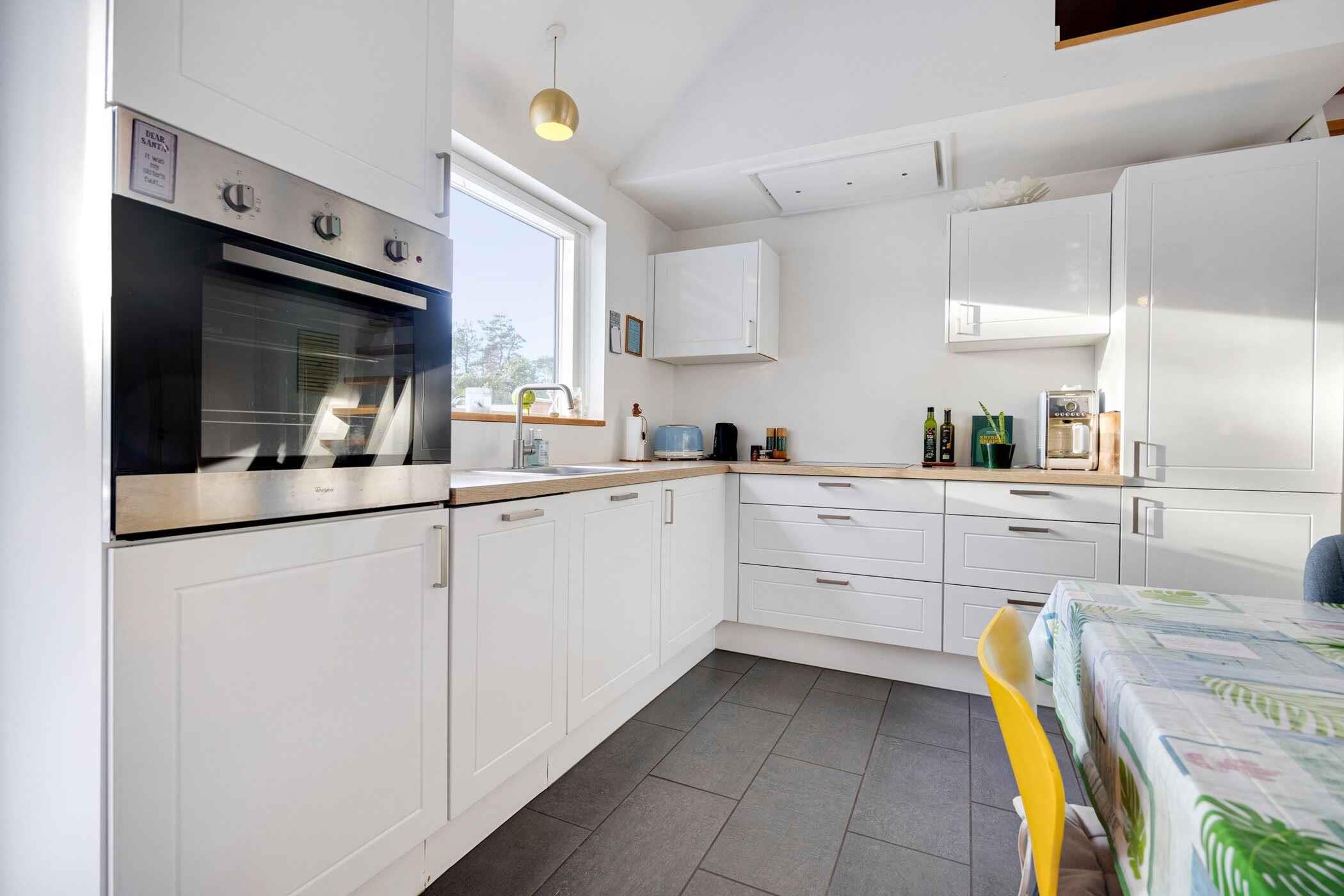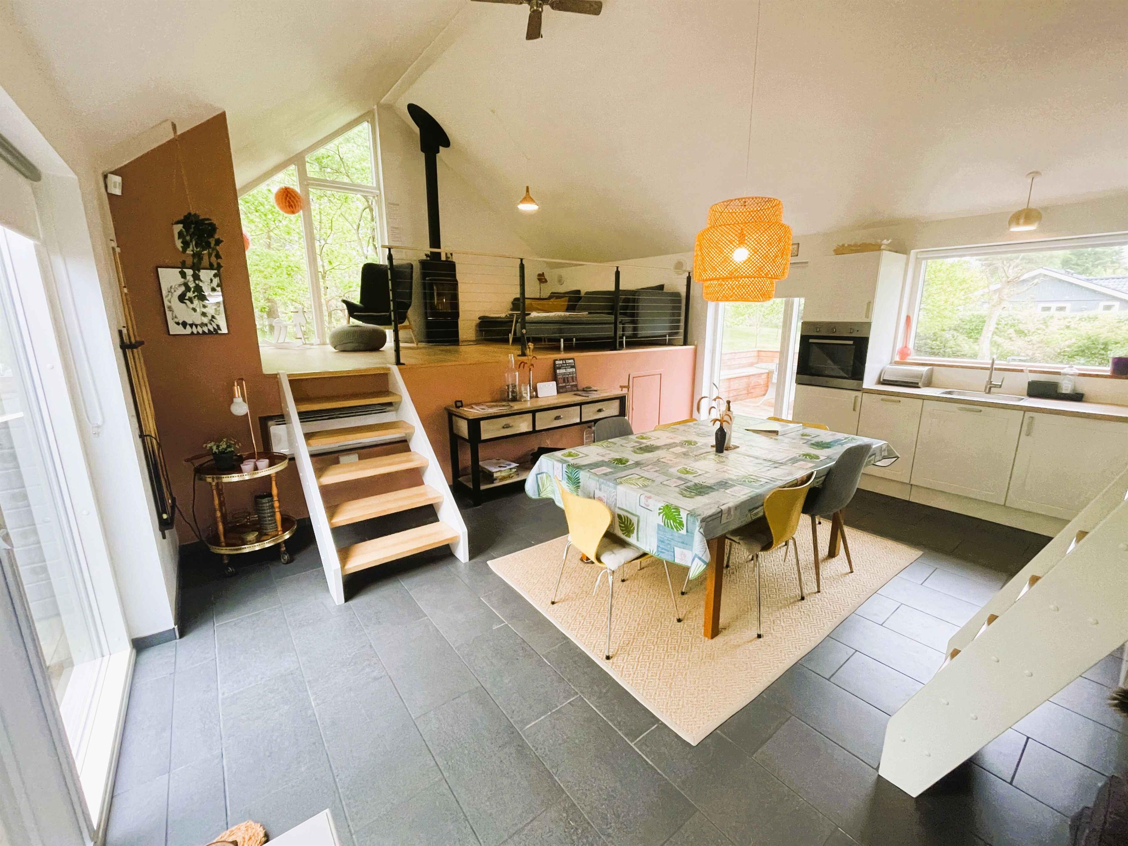 Velkommen til et moderne og indbydende feriehus fra 2015 med plads til 6 personer – et sted hvor komfort og afslapning går hånd i hånd. Huset er 99 m² og rummer to lyse soveværelser med dobbeltsenge samt en stor hems med ståhøjde og soveplads til to. I stuen finder I både en hyggelig brændeovn og en charmerende alkove med glasparti – perfekt til afslapning med en god bog eller et spil med familien. Køkken og stue er i forskudte plan, hvilket skaber en unik og hyggelig atmosfære. Det moderne køkken er fuldt udstyret med alt, hvad I behøver for en bekvem ferie. Den lyse indretning og de åbne rum skaber en afslappet stemning, og med både varmepumpe og brændeovn er huset behageligt året rundt. Der er naturligvis fri internetadgang, så I nemt kan holde forbindelsen – eller streame en film efter en dag i naturen. Udenfor byder haven på små, hyggelige kroge, hvor morgensolen kan nydes med en kop kaffe. Den store træterrasse med læhegn indbyder til lange sommerdage under åben himmel. Her kan I forkæle jer selv med et vildmarksbad, skylle sandet af under den udendørs bruser eller samle familien omkring bålet, når aftenen falder på. Kun 1000 meter fra huset ligger den charmerende havneby Hou, som om sommeren summer af liv med arrangementer og aktiviteter for både børn og voksne. Byen byder på gode indkøbsmuligheder, hyggelige spisesteder og en isbod – alt sammen med kort afstand til nogle af Nordjyllands bedste og mest børnevenlige badestrande. Nærområdet er oplagt til både gåture og cykeludflugter med sin smukke natur, rolige skove, åbne enge og små stier langs kysten. Her får I det bedste fra både natur og byliv. Dette feriehus er det ideelle valg for jer, der drømmer om ro, komfort og autentiske naturoplevelser – alt sammen tæt på strand og hyggelig havnestemning.