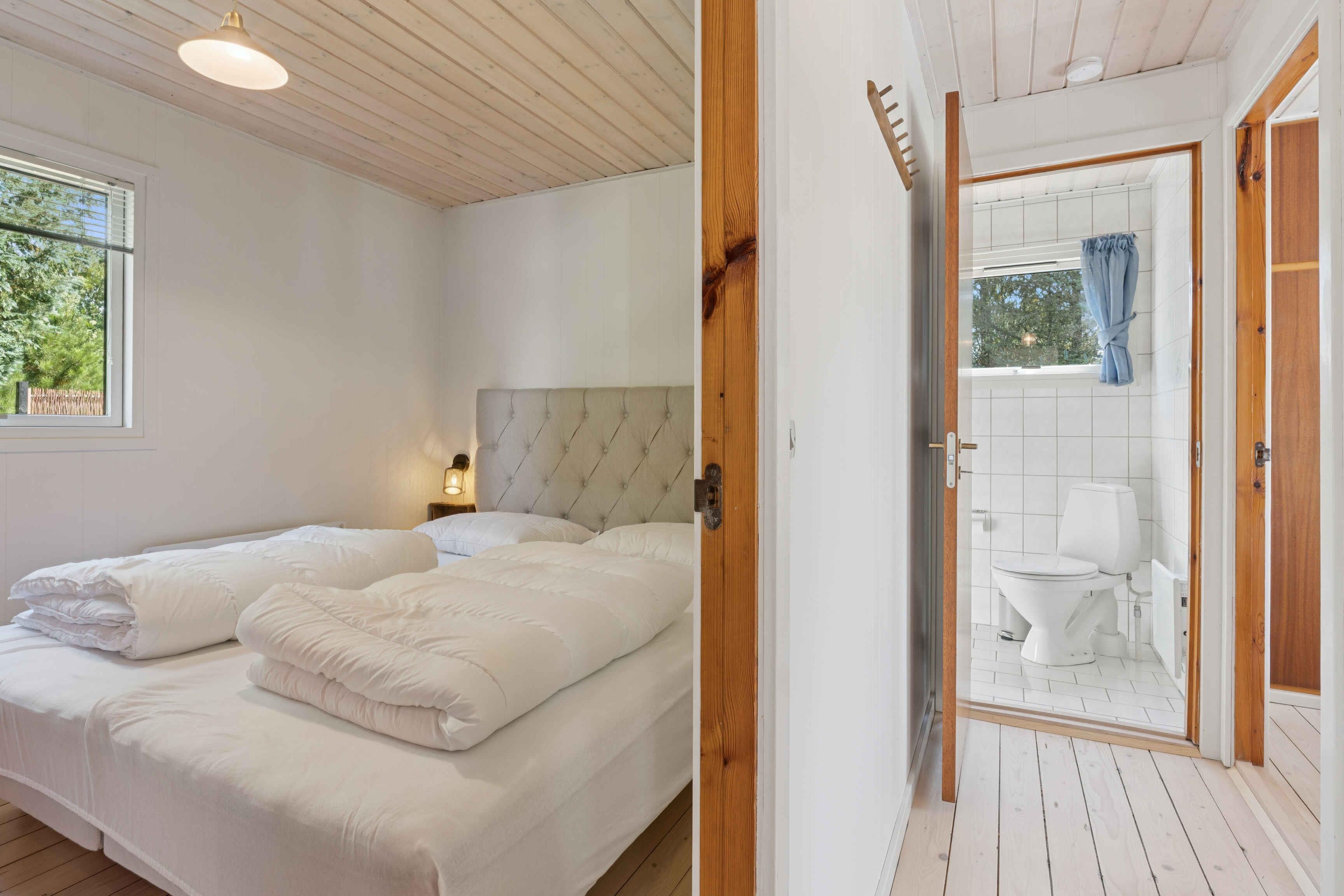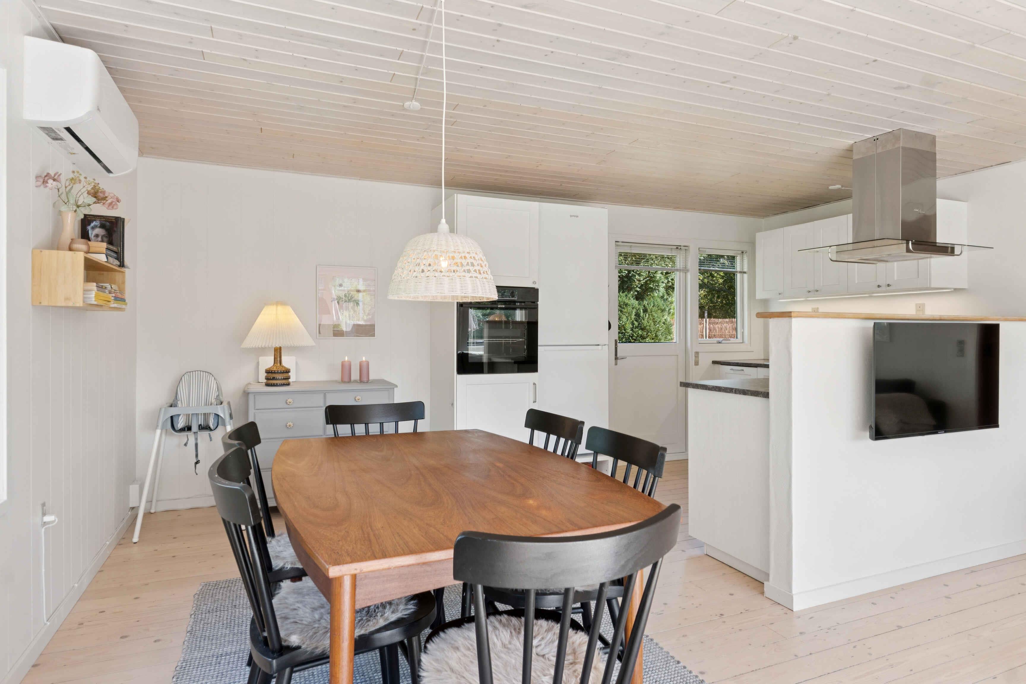 Nordjysk sommerperle med sjæl – tæt på strand, havn og natur Velkommen til vores charmerende sommerhus i Hals, et sted hvor ro og ægte sommerstemning mødes. Her kan I vågne op til fuglesang, tage på cykelture til Hals by og nyde solnedgangen ved Hou Havn, hvor der om sommeren summer af liv med caféer, isbutikker og ofte levende musik. Huset er indrettet med varme og sjæl – en klassisk skandinavisk stil med lyse vægge og en hyggelig brændeovn, der skaber stemning på kølige aftener. Det er det perfekte fristed for både familier og par, som ønsker fred, komfort og nærhed til naturen. Det får I i sommerhuset Plads til 6 personer med: • 2 soveværelser med dobbeltsenge • 1 værelse med køjeseng – ideelt til børn Nyt, funktionelt køkken med opvaskemaskine og vaskemaskine Lyst badeværelse med bruseniche Hyggeligt sofahjørne med fjernsyn og gratis internet Brændeovn til hyggelige aftener Haven – jeres private oase Den store, lukkede have er perfekt til leg og afslapning. Her kan børnene boltre sig i sandkassen og med masser af udendørs legetøj til alle aldre, mens I nyder solen på terrassen, slapper af i hængekøjen eller griller aftensmaden. I haven er naturen tæt på – rådyr, egern og harer besøger ofte området, især om morgenen og i skumringen. Om aftenen kan I nyde en stjerneklar himmel og den helt særlige ro, der kun findes her. Oplevelser og beliggenhed Kun 700 meter til en børnevenlig strand 600 meter til indkøbsmuligheder Hou Havn med caféer, isbutikker og sommerstemning lige om hjørnet Hals ligger i cykelafstand – perfekt til en dagstur Aalborg nås på ca. 35 minutter i bil Skagen er inden for dagsudflugtsafstand, hvis I vil opleve mere af Nordjylland Praktisk info Gratis WiFi og fjernsyn Parkering ved huset Mulighed for høj stol og weekendseng til de mindste Husdyr er velkomne Rygning ikke tilladt Dette sommerhus er det oplagte valg for jer, der vil have en ferie med sjæl, nærhed til natur og nem adgang til både strand og byliv. Vi glæder os til at byde jer velkommen! Obs, udlejes ikke til erhversmæssigt brug.