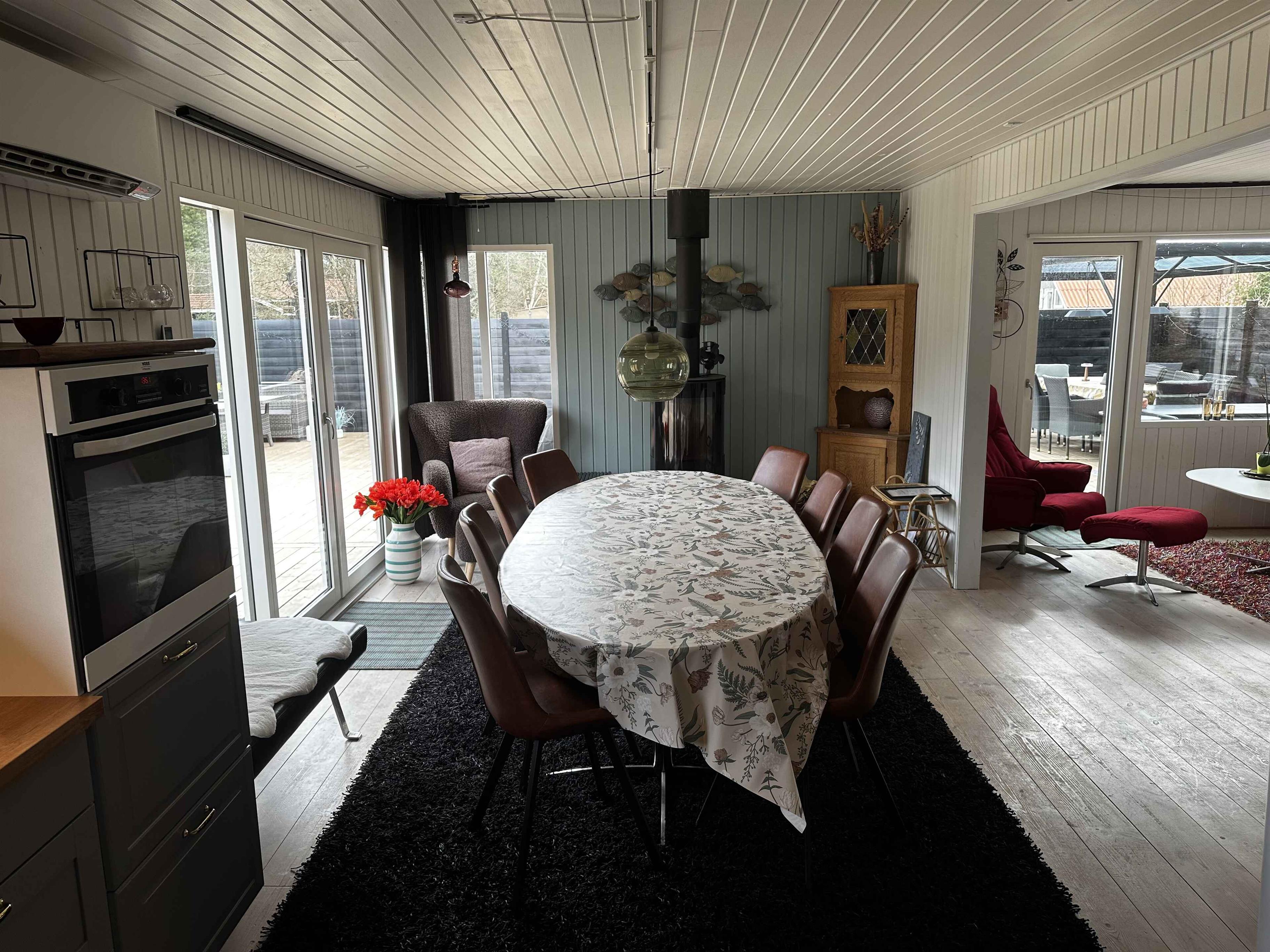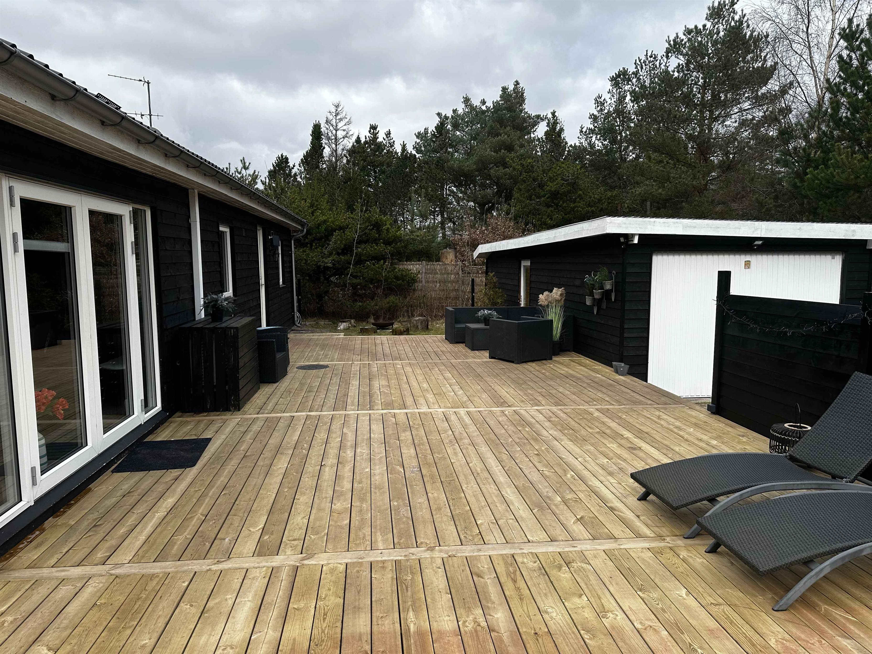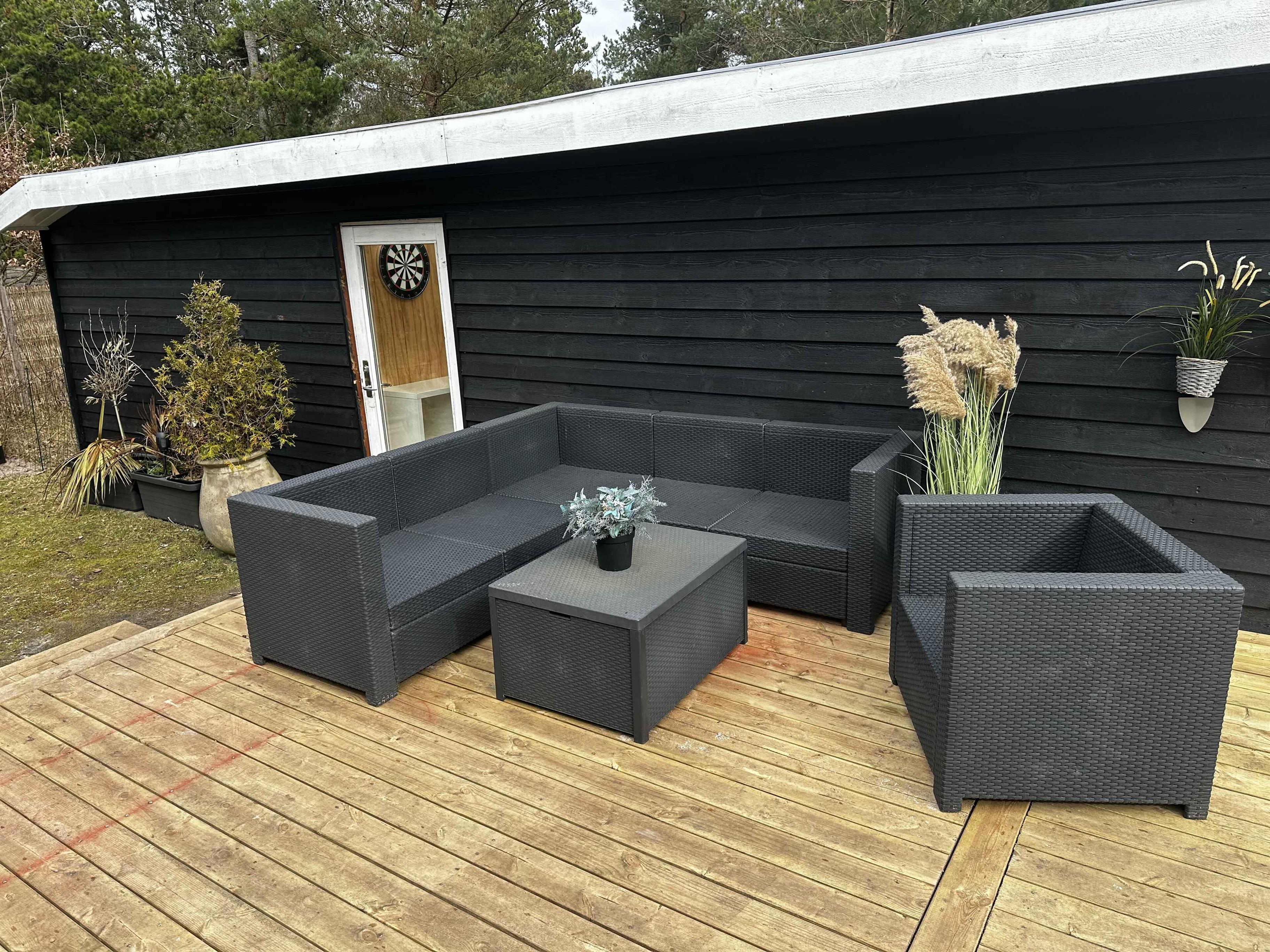Sommerhuset er solgt i sommeren 2025 og de nye ejere er i gang med en opdatering af sommerhuset, samt fået etableret en ny stor terrasse på 140m2. Sommerhuset er stilfuld indrettet og med en rigtig hyggelig atmosfære. Den store solrige træterrasse er mindst lige så attraktiv. Med andre ord er det skønt at opholde sig ude og inde her på adressen – og så gør det bestemt heller ikke noget, at der kun er 500 meter til Kattegat og den smukke kyststrækning. Indretning: Inden døre er der lyst og indbydende, og man kan tydeligt mærke, at der er lagt vægt på at gøre rummene hyggelige og stemningsfulde. Det gælder de fire soveværelser, der alle er udstyret med dobbeltseng. 2 af soveværelserne er udstyret med TV med Chromecast. Stue og køkken ligger i åben forbindelse. Her er der brændeovn og varme pumpe til eventuelle kølige dage og aftener, og hvis I er i humør til en god film eller lidt let underholdning, står der et TV med Chromecast placeret ved sofa afdelingen. Kort sagt meget behagelige rammer, ferie livet kommer til at udspille sig i. Udendørs Ude på den 1.493 m2 store grund naturgrund er der også godt at være – ikke mindst på terrassen, der smyger sig om to sider af sommerhuset. Mod øst er der havkig fra terrassen og mod syd er den er skærmet af et hegn så man kan færdes ugeneret på terrassen. Liggestole, havemøbler og en grill står til rådighed, så I ikke skal mangle noget. Herudover er mulighed for at riste skumfiduser ved bålpladsen. I garagen forefindes forskellige aktiviteter som I kan hygge Jer med. Beliggenhed Fra terrassen kan I se vandet. Det tager cirka fem minutter at gå ned til enden, og derfra kan I fortsætte den korte tur ad små stier, indtil I står på sandstranden og skuer ud over Kattegat. Strandene her i området er kendt for at være børnevenlige med lavt vand, så også de yngste familiemedlemmer kan soppe og svømme, når sommersolen står højt på himmelen. Får I lyst til en gåtur, kan I bevæge jer op langs kysten til Hous fine lystbådehavn, I Hou kan I også passende forkæle jer selv med en stor isvaffel ved vandet eller en dejlig frokost på et af byens spisesteder. 250 meter fra sommerhuset ligge Lagunen, der byder på fiskesø, badeland, legeplads og Café. Om sommeren er der også kræmmermarked ved Lagunen. Nærmeste indkøbsmulighed ligger 4 km væk. Obs, udlejes ikke til erhversmæssigt brug.