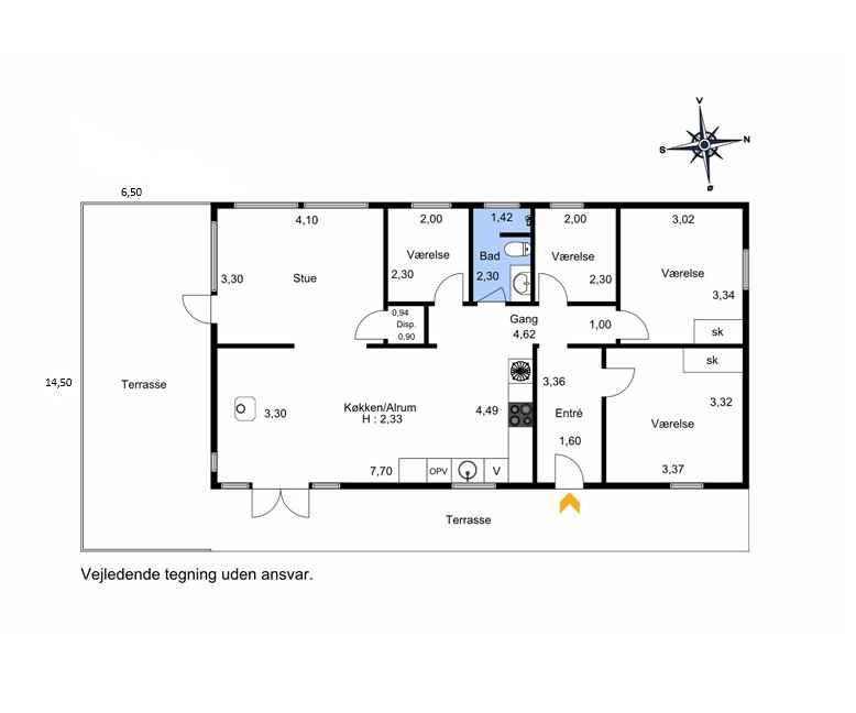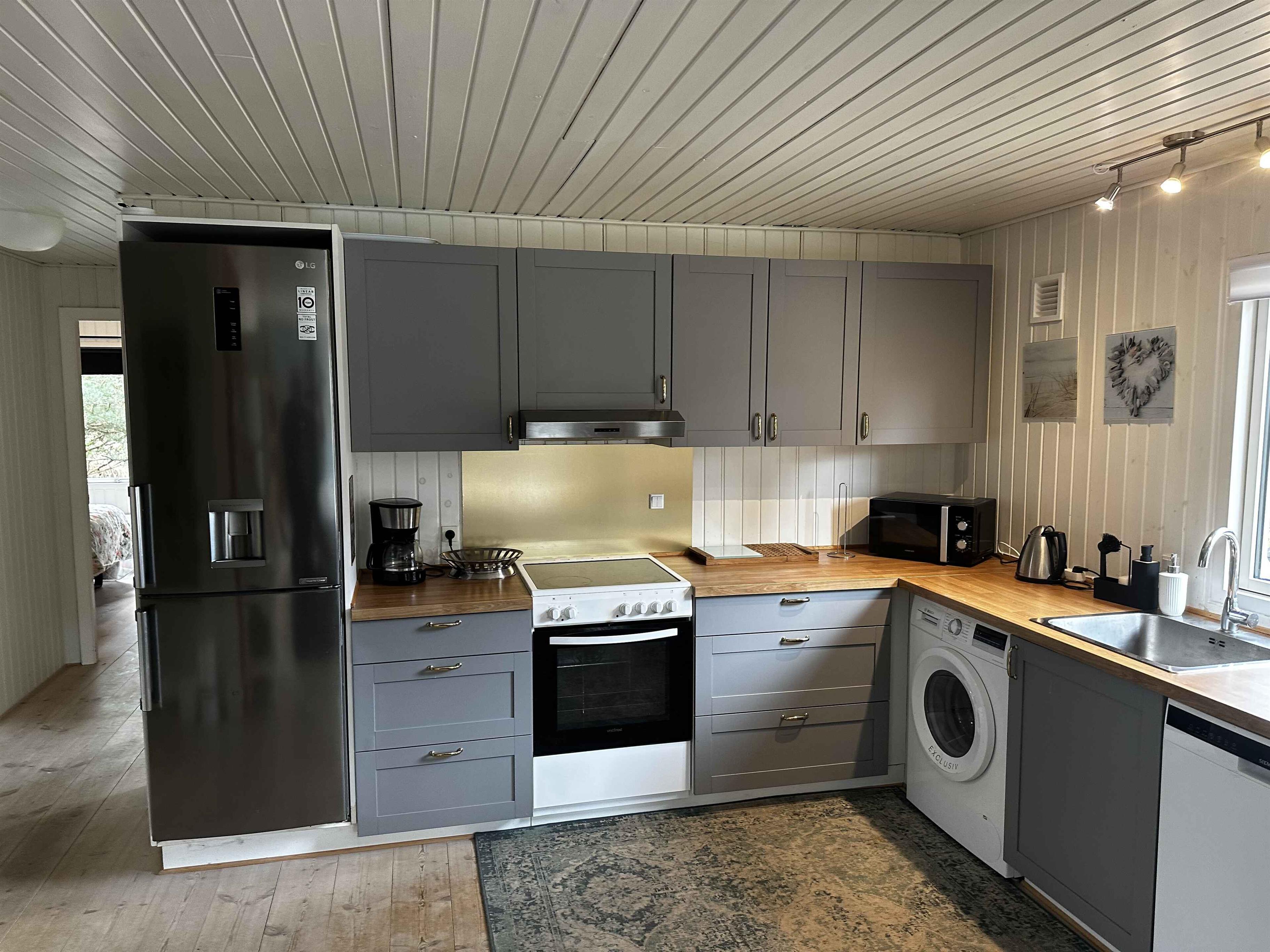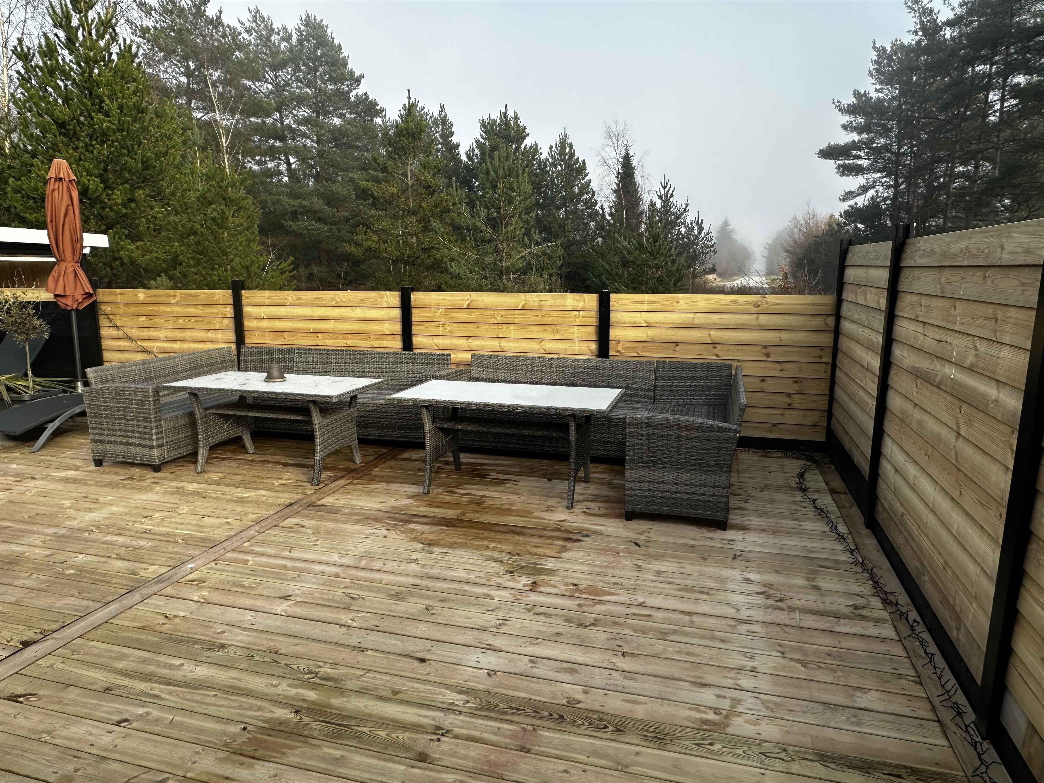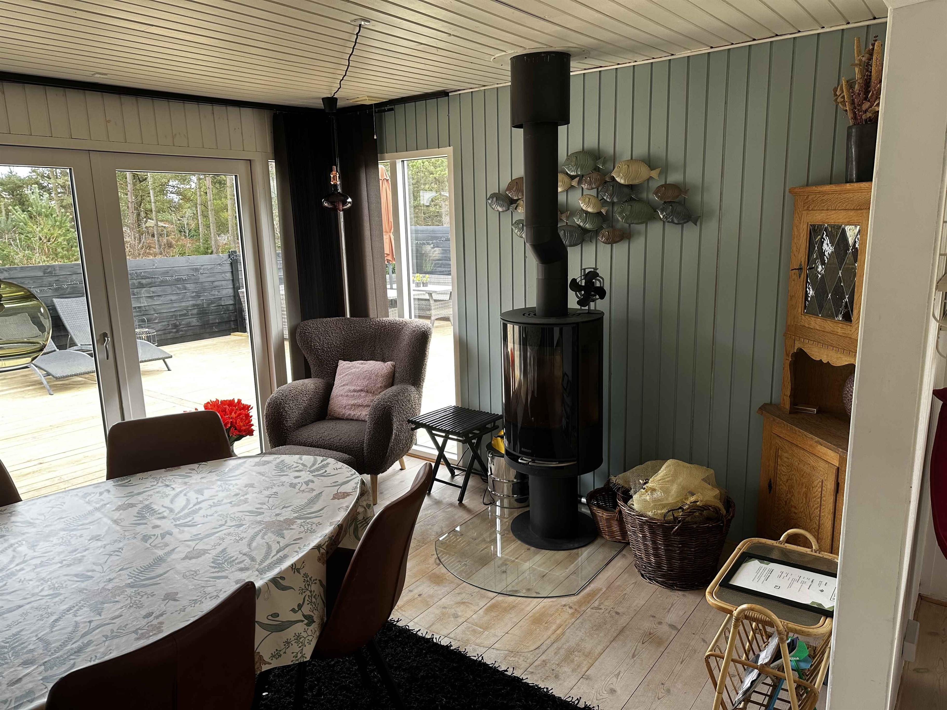 Sommerhuset er solgt i sommeren 2025 og de nye ejere er i gang med en opdatering af sommerhuset, samt fået etableret en ny stor terrasse på 140m2. Sommerhuset er stilfuld indrettet og med en rigtig hyggelig atmosfære. Den store solrige træterrasse er mindst lige så attraktiv. Med andre ord er det skønt at opholde sig ude og inde her på adressen – og så gør det bestemt heller ikke noget, at der kun er 500 meter til Kattegat og den smukke kyststrækning. Indretning: Inden døre er der lyst og indbydende, og man kan tydeligt mærke, at der er lagt vægt på at gøre rummene hyggelige og stemningsfulde. Det gælder de fire soveværelser, der alle er udstyret med dobbeltseng. 2 af soveværelserne er udstyret med TV med Chromecast. Stue og køkken ligger i åben forbindelse. Her er der brændeovn og varme pumpe til eventuelle kølige dage og aftener, og hvis I er i humør til en god film eller lidt let underholdning, står der et TV med Chromecast placeret ved sofa afdelingen. Kort sagt meget behagelige rammer, ferie livet kommer til at udspille sig i. Udendørs Ude på den 1.493 m2 store grund naturgrund er der også godt at være – ikke mindst på terrassen, der smyger sig om to sider af sommerhuset. Mod øst er der havkig fra terrassen og mod syd er den er skærmet af et hegn så man kan færdes ugeneret på terrassen. Liggestole, havemøbler og en grill står til rådighed, så I ikke skal mangle noget. Herudover er mulighed for at riste skumfiduser ved bålpladsen. I garagen forefindes forskellige aktiviteter som I kan hygge Jer med. Beliggenhed Fra terrassen kan I se vandet. Det tager cirka fem minutter at gå ned til enden, og derfra kan I fortsætte den korte tur ad små stier, indtil I står på sandstranden og skuer ud over Kattegat. Strandene her i området er kendt for at være børnevenlige med lavt vand, så også de yngste familiemedlemmer kan soppe og svømme, når sommersolen står højt på himmelen. Får I lyst til en gåtur, kan I bevæge jer op langs kysten til Hous fine lystbådehavn, I Hou kan I også passende forkæle jer selv med en stor isvaffel ved vandet eller en dejlig frokost på et af byens spisesteder. 250 meter fra sommerhuset ligge Lagunen, der byder på fiskesø, badeland, legeplads og Café. Om sommeren er der også kræmmermarked ved Lagunen. Nærmeste indkøbsmulighed ligger 4 km væk. Obs, udlejes ikke til erhversmæssigt brug.