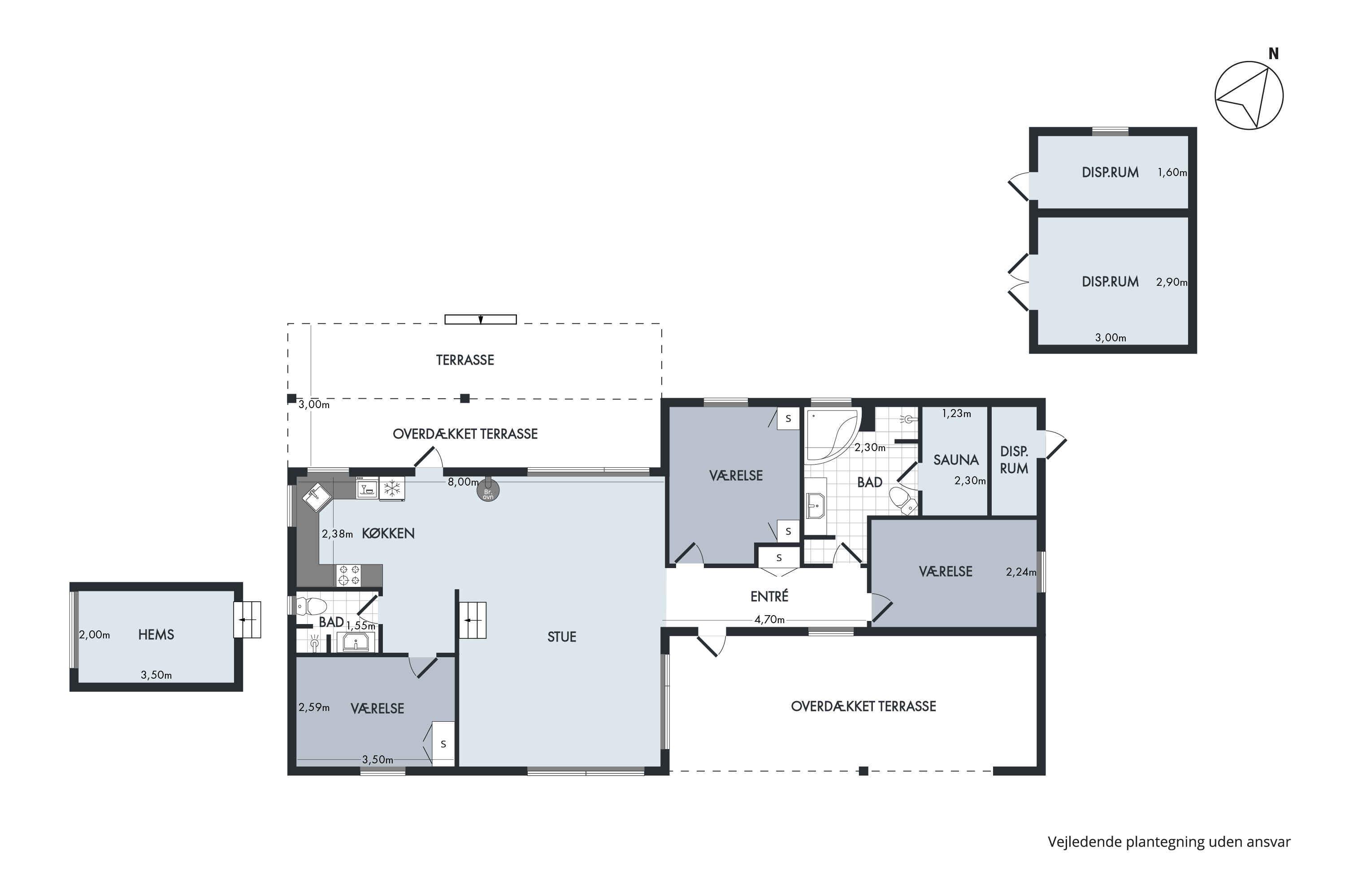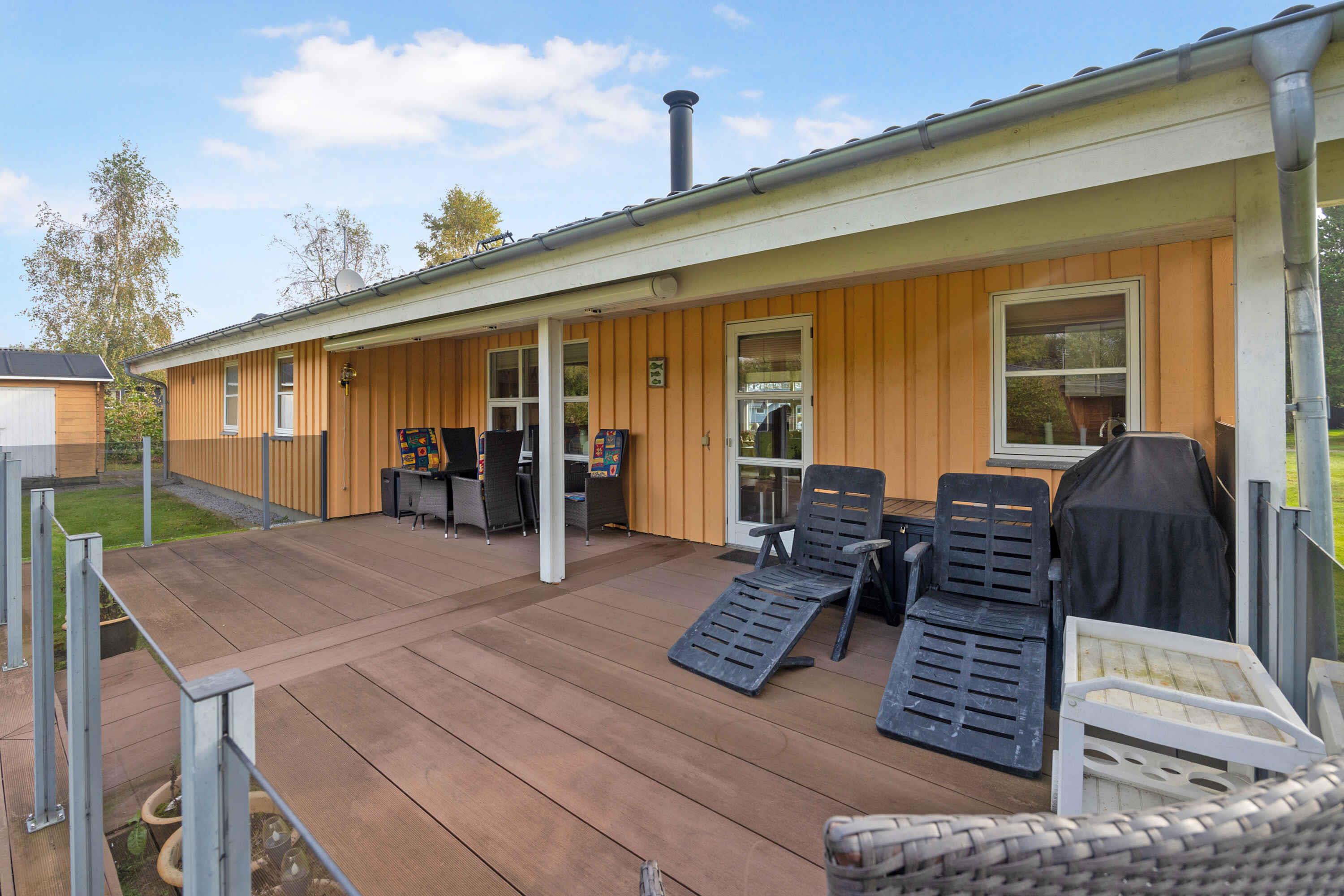 Velkommen til dette skønne sommerhus i Hals—dit perfekte udgangspunkt for en uforglemmelig ferie. Med sine 104 m2, er der plads til både familie- og venneferier. Dette sommerhus tilbyder 3 rummelige soveværelser udstyret med gode senge og madrasser. Sov sødt og vågn op til fuglenes kvidren. Sommerhuset har to badeværelser med bad. Desuden er det store badeværelse udstyret med både spa og sauna. Opholdsstuen er hjertet i huset, indrettet med behagelige lædersofaer og stole. Sommerhuset har et TV med parabol til tyske kanaler, derudover er der også DVD'er som kan benyttes. I køkkener mangler der intet. Fuldt udstyret med moderne hårde hvidevarer, så madlavningen bliver en leg. Udendørs byder en stor terrasse med overdækning på afslapning. Havemøbler på begge terrasser inviterer til både morgenkaffe og aftensmad i det fri. Haven er oplagt til børnefamilier, da det er en lukket have med gynger, legehus og et shelter. Hals-området er en sand perle. Her emmer af feriestemning især på havnen, hvor der også er flere restauranter og isboder. I området er der er mulighed for lange gåture langs stranden, et rigt dyreliv og muligheder for vandsport. Lokale markeder og kulturtilbud er inden for kort rækkevidde. Parker bilen i den store indkørsel med carport, og lad ferien begynde.