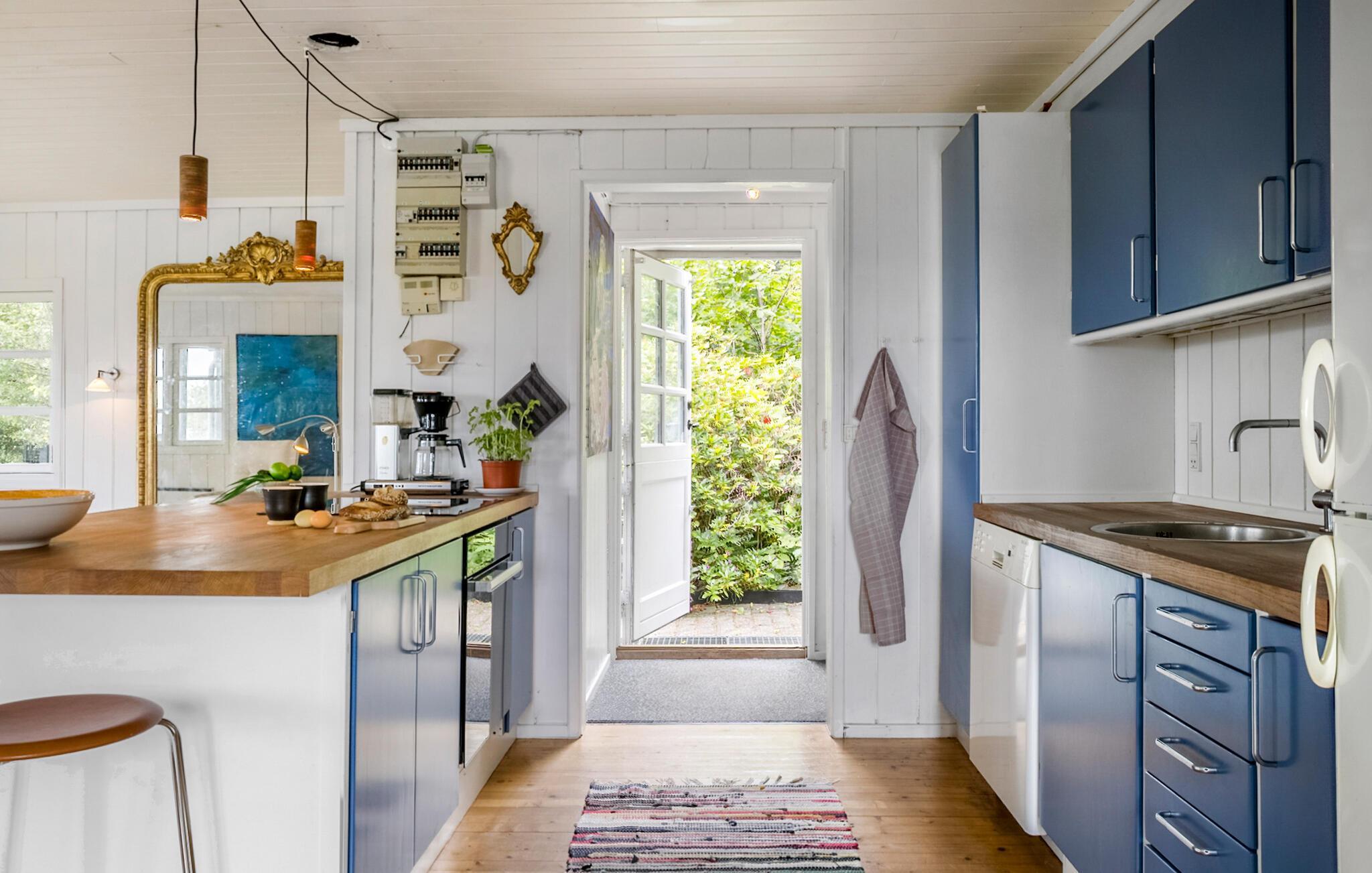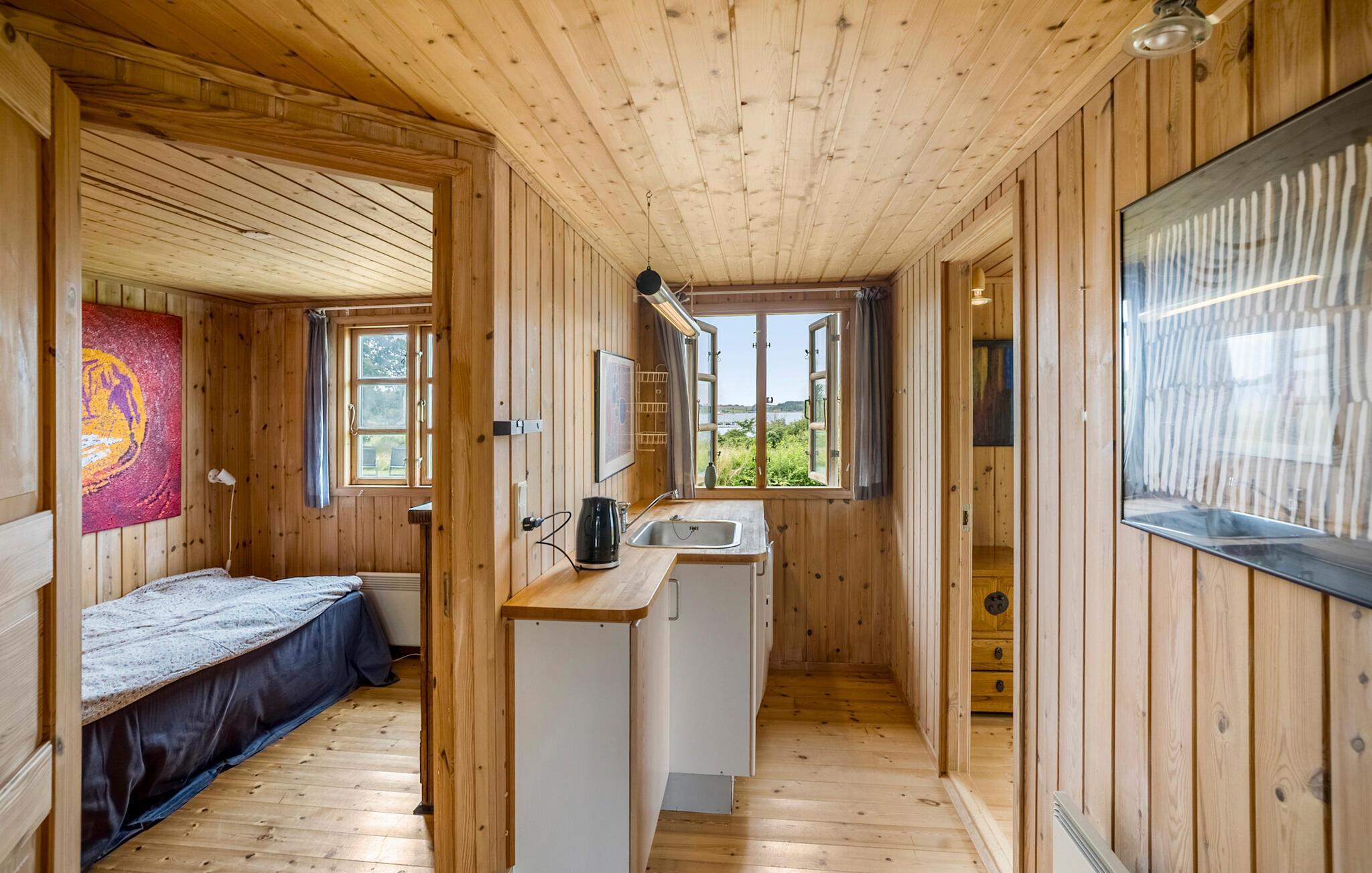 Nyd skandinavisk stil og naturlige omgivelser i jeres feriehus. Læg hverdagens travlhed bag jer og nyd de rolige omgivelser. Træd ind i den lyse opholdsstue med dens nøje udvalgte detaljer. Gør det behageligt i hjørnesofaen foran brændeovnen eller læs en bog i den behagelige lænestol. Tilbered jeres måltider i det åbne, farverige køkken med kogeø.