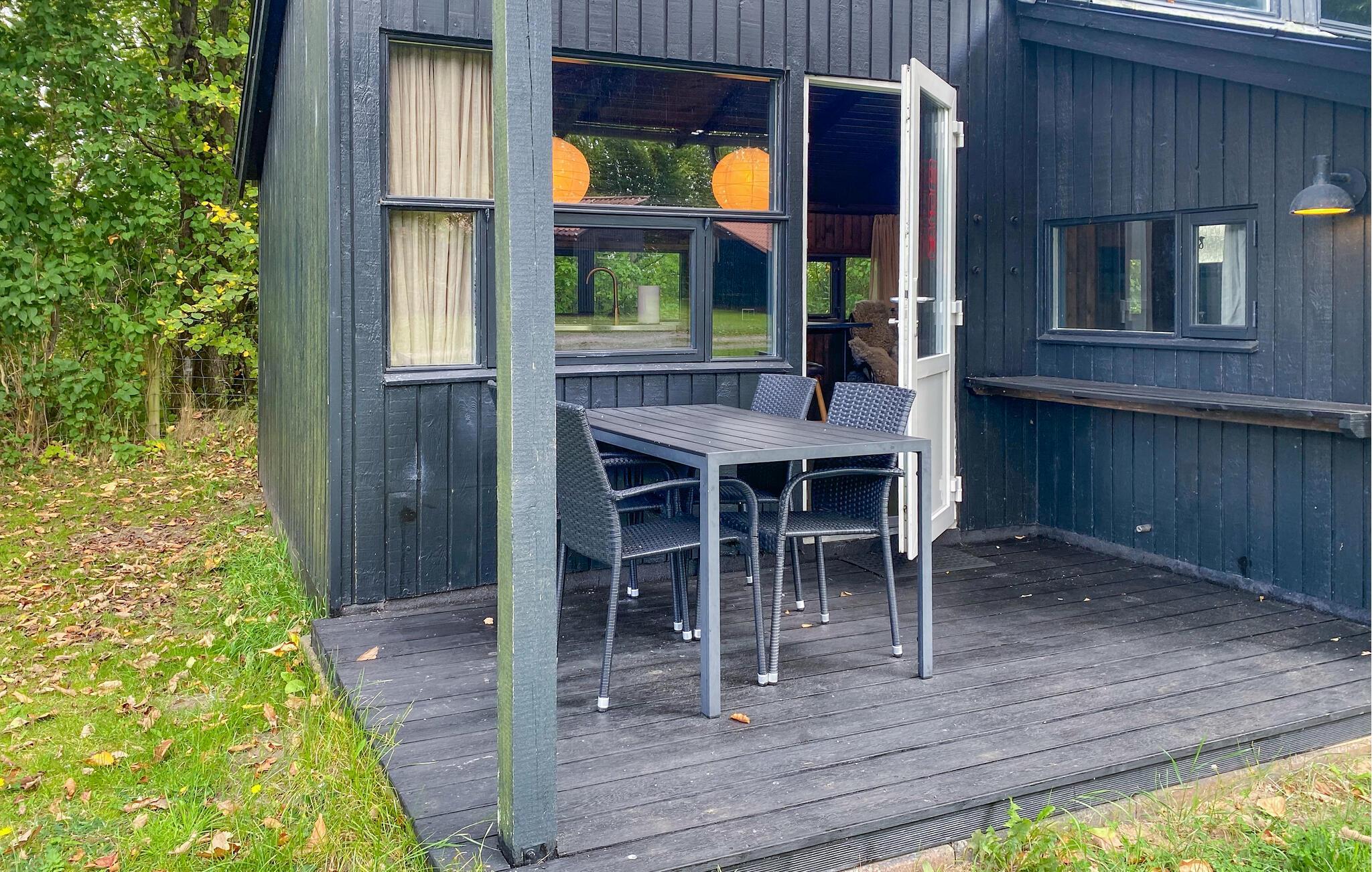 Charmerende træhus med terrasse nær sø, skov og minigolf for en afslappende ferie i Hampen.