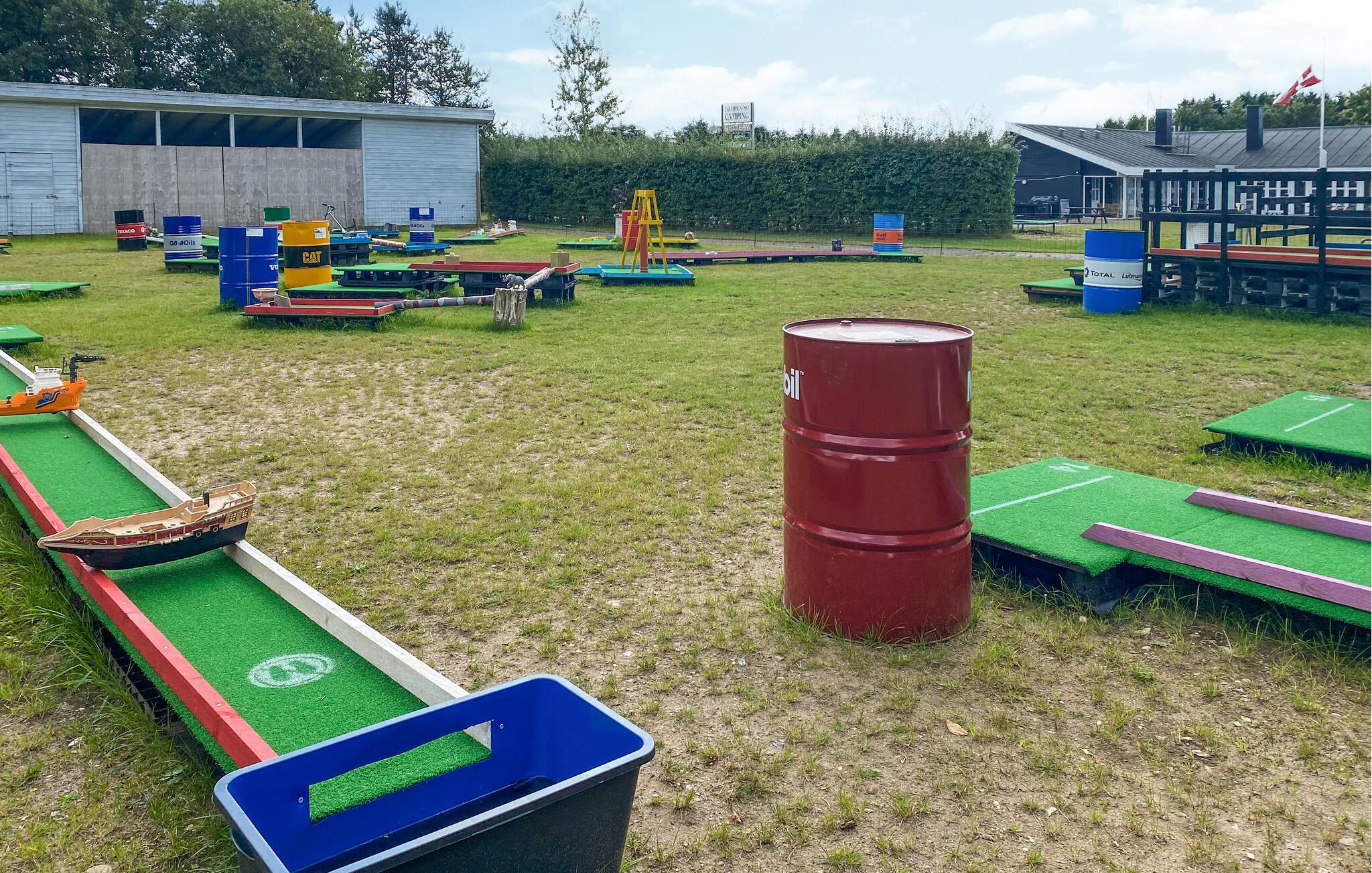 Lige uden for jeres hoveddør inviterer terrassen jer til at tilbringe afslappende timer udendørs. Nyd morgenmaden her i fred og ro, inden I tager afsted på jeres aktiviteter. I nærheden er der en farverig minigolfbane, hvoraf nogle er dekoreret med usædvanlige forhindringer som olietønder og små figurer – ideel som en sportslig udfordring for hele familien.