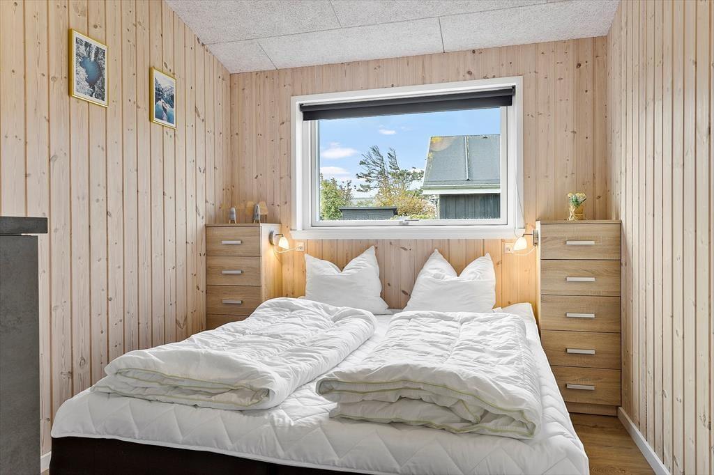 Inden bag den stilrene facade venter de lyse og indbydende rum på at byde dig velkommen. Sommerhuset er opført i 2021, og alt, lige fra akustikloftet og de store vinduespartier til det moderne møblement sørger for, at du og dine kære straks kan føle jer godt til rette. Fra stuens sofaafdeling og spiseplads kan I nyde den smukke udsigt til fjorden, og på det ene af de to soveværelser kan I vågne op til det smukke syn af bølgernes krusninger under de drivende skyer. Fra stuen fører en stige op til en hems, der også kan bruges til overnatning, så alt i alt er der sengepladser til seks personer.