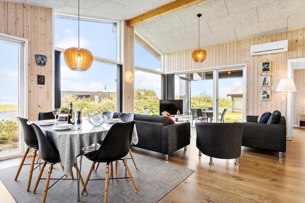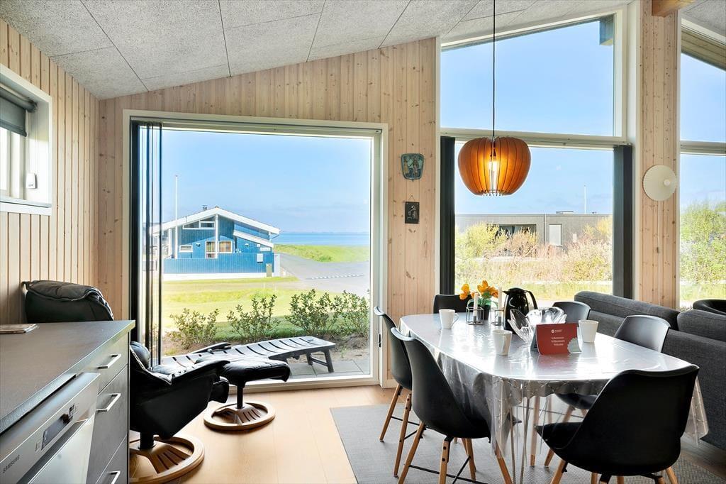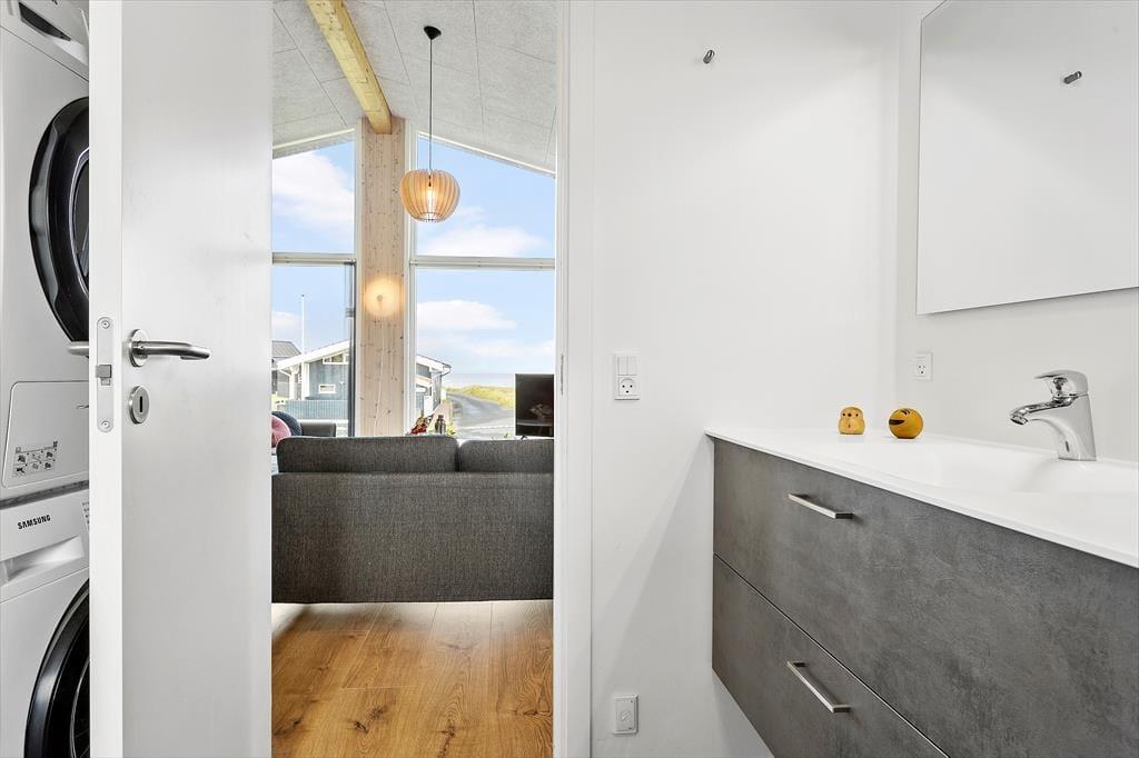 Handbjerg er et herligt sted at holde ferie, for det lille og hyggelige sommerhusområde ligger smukt ud til Limfjorden og byder på både badestrand og marina. Og når du ovenikøbet holder til i dette moderne kvalitetshus, får du en gennemført komfortabel ramme om driverlivet – i lyse, stilfulde rum og med både vildmarksbad og udsigt til vandet.