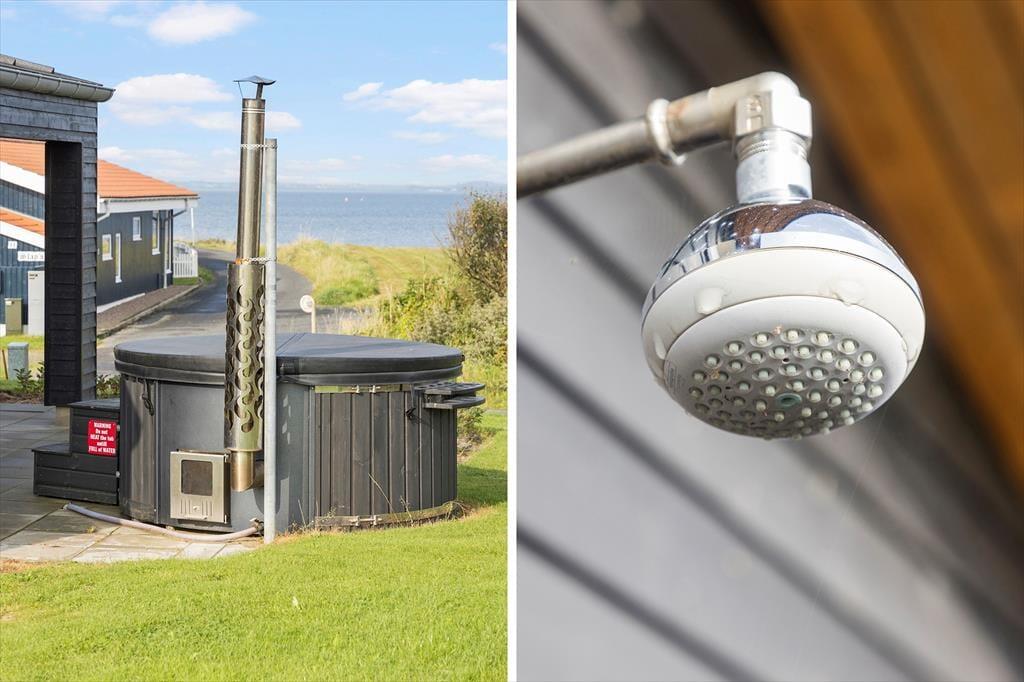 Sommerhusets terrasser er dejlige steder at nyde sol og sommervejr – men når du bor bare 100 meter fra vandkanten, er det sandsynligt, at du lige skal smutte ned for at hilse på fjorden eller have en dukkert, inden du sætter dig alt for godt til rette. Efter en strandtur kan du skylle dig under udebruseren, hvis det er nødvendigt, og hvis det er mere fristende med et tilbagelænet bad i varmt vand, er det husets vildmarksbad, du skal sænke dig i. Her kan du se frem til mange timers wellness og komplet afslapning – også på en kølig efterårsdag eller på en sommeraften i tusmørket.