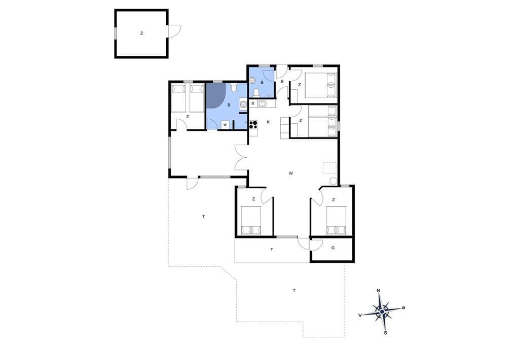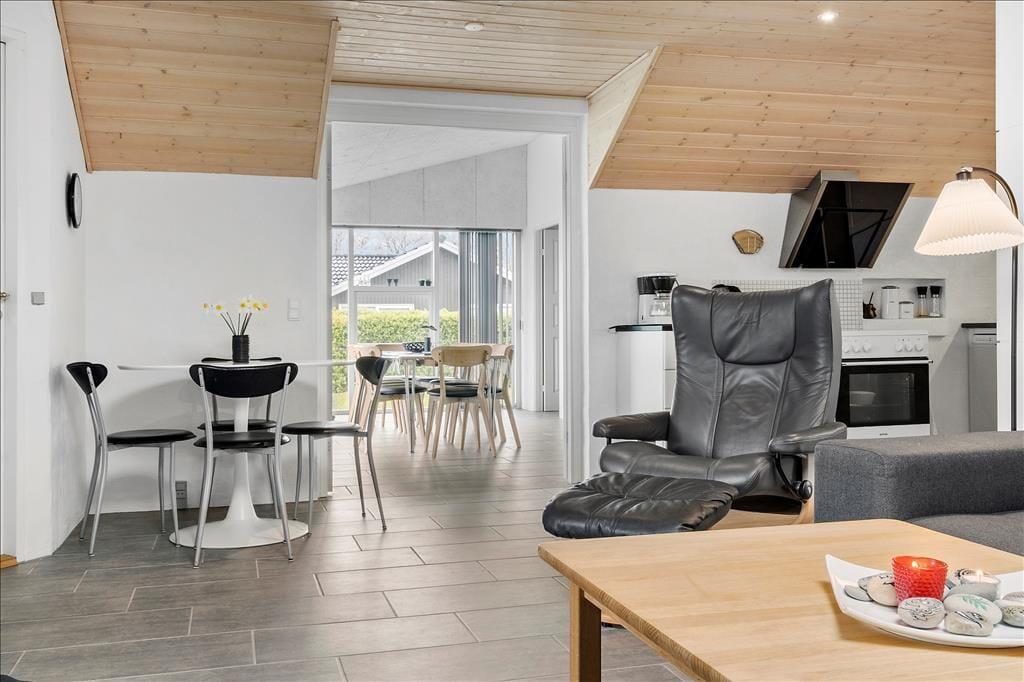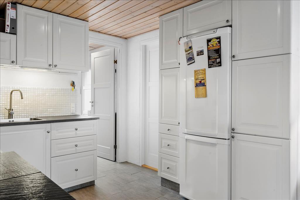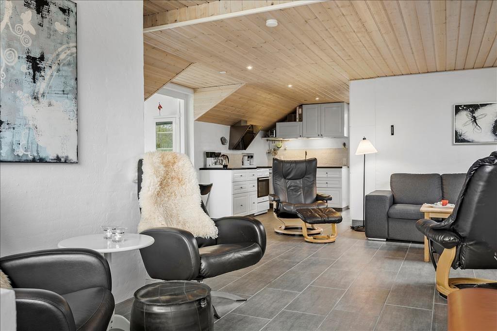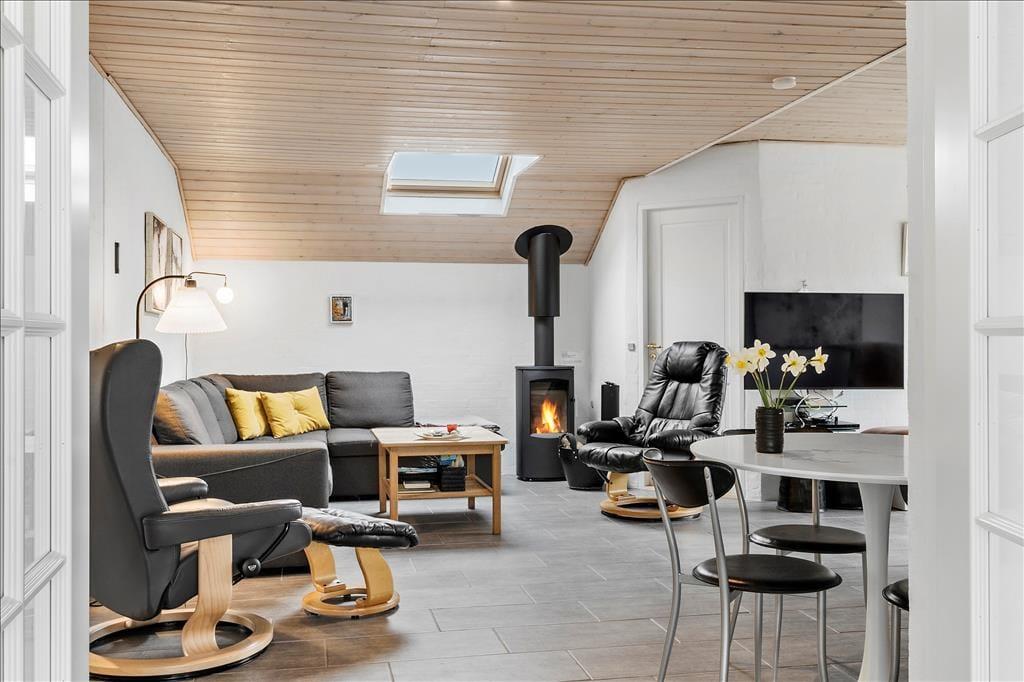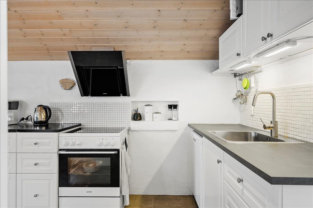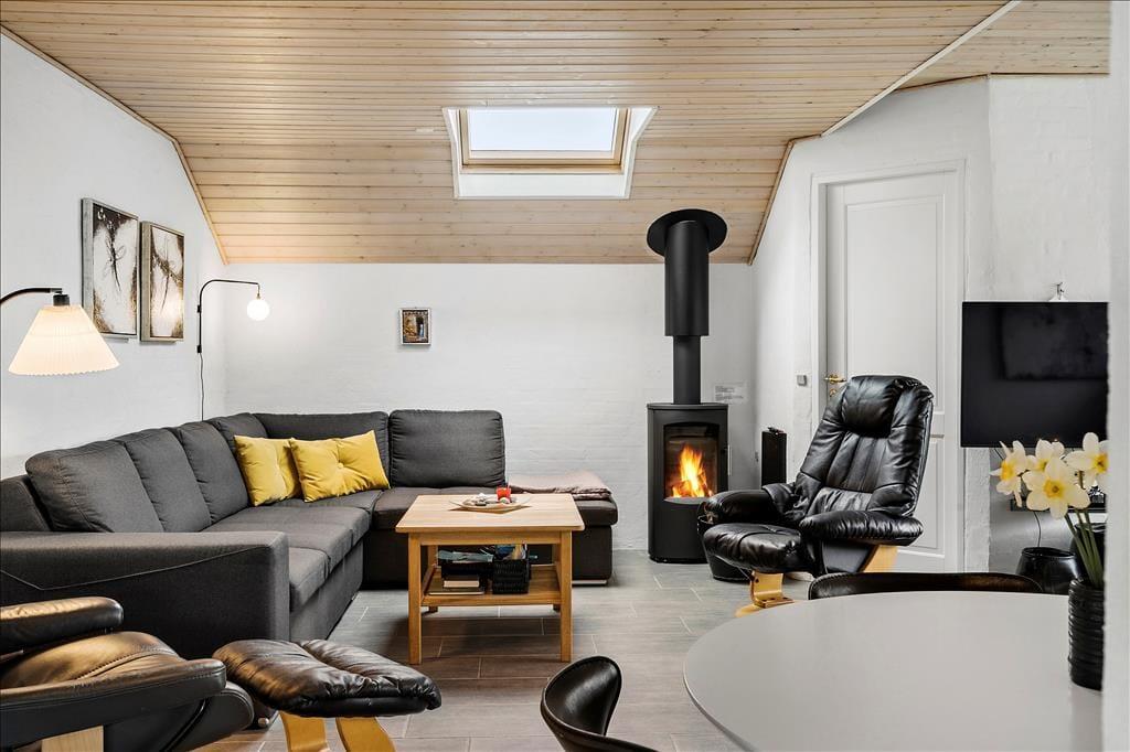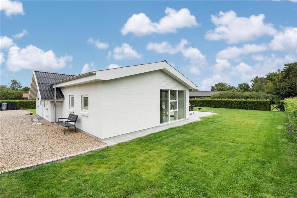 Det murede sommerhus er blevet vedligeholdt og moderniseret løbende – blandt andet er køkkenet fra 2010, og i 2019 blev planløsningen udvidet med en ny, flot tilbygning. Alle rum fremstår pæne og velindrettede, og planløsningen er gennemtænkt, så I har god plads til at folde ferielivet ud. Når I vil hygge jer sammen, kan det foregå i den hyggelige opholdsstue, der har brændeovn, fladskærms-tv med Chromecast, flere bløde siddepladser og åben forbindelse til det førnævnte køkken. Dobbeltdøre åbner op til en skøn spisestue, hvor I kan samles til lækre middage med udsigt til haven gennem de store vinduer. På de fem værelser kan I se frem til at sove længe i komfortable senge, og på det største af husets to badeværelser er der lagt op til wellness og afslapning takket være den lækre hjørnespa.