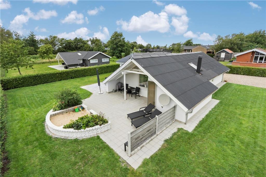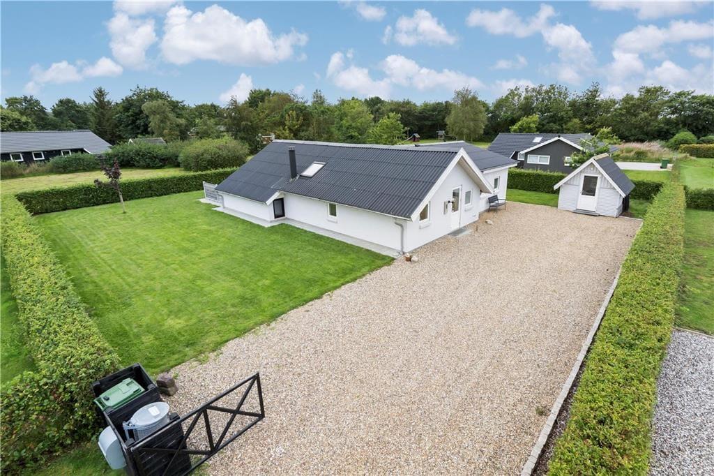 I får en dejlig ramme om ferien, når den foregår ved Handbjerg Strand i dette velindrettede sommerhus på 117 m2. Med så stort et hus kan I nemt og bekvemt være op til 10 personer inden døre, og ude kan I nyde livet på den solrige terrasse og i den grønne have.