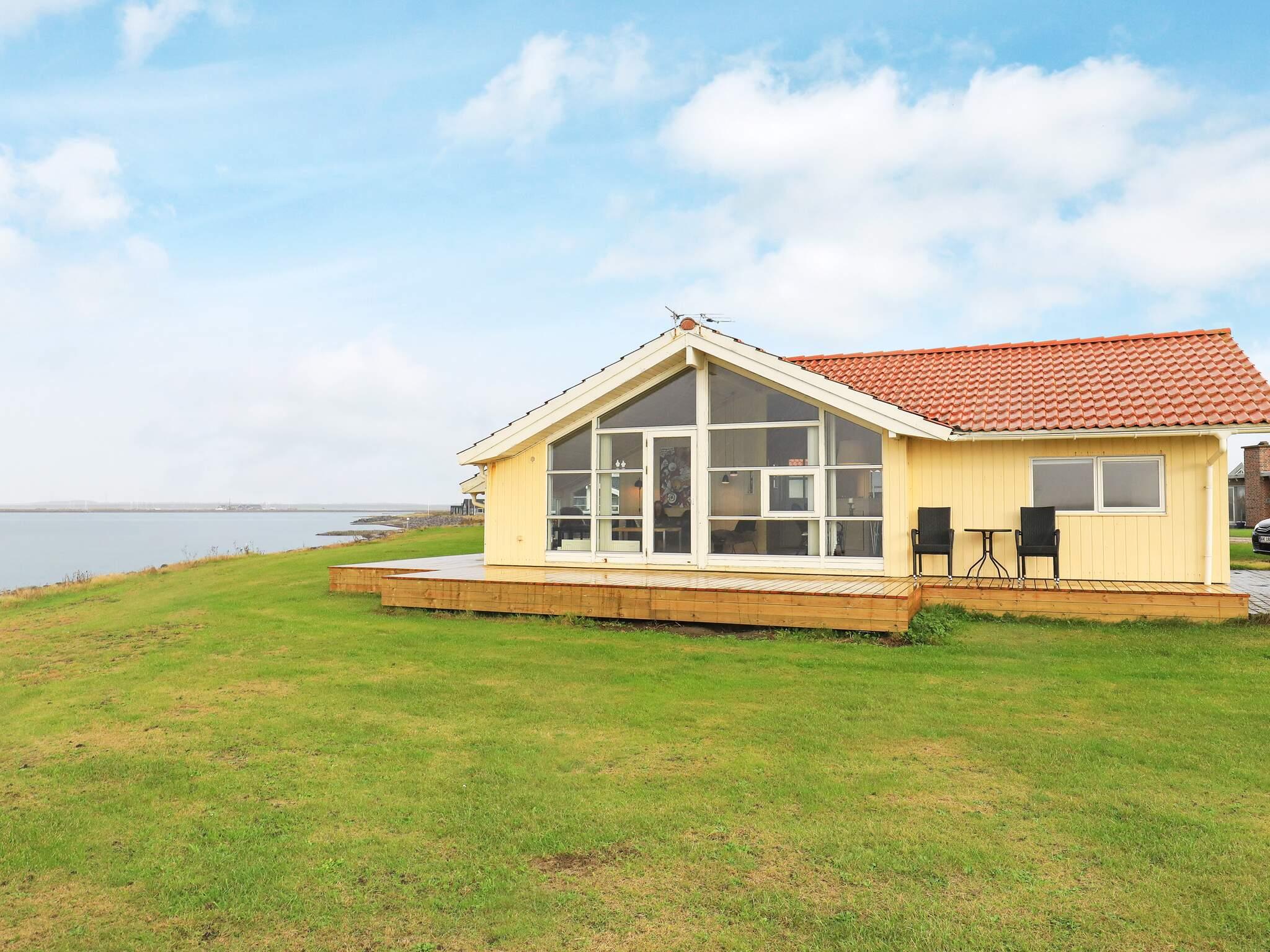 Sommerhus beliggende helt ud til Limfjorden, ca. 10 m fra vandet. Der er fra såvel huset som fra grunden en pragtfuld panoramaudsigt over vandet. Køkkenet er udstyret med komfur med bl.a. keramiske kogeplader, opvaskemaskine og mikroovn. Endvidere er der tv med parabol, dvd-afspiller og radio. Der er stort soveværelse med dobbeltseng. I børneværelset er der to enkeltsenge. Der er gulvvarme på badeværelset. Græsplæne ved huset og terrasse hele vejen rundt om huset. Her kan I sidde og nyde udsigten mens aftensmaden tilberedes på husets havegrill. Ca. 10 fra huset er der en fin sandstrand. Gode indkøbsmuligheder i Vinderup ca. 5 km fra huset.