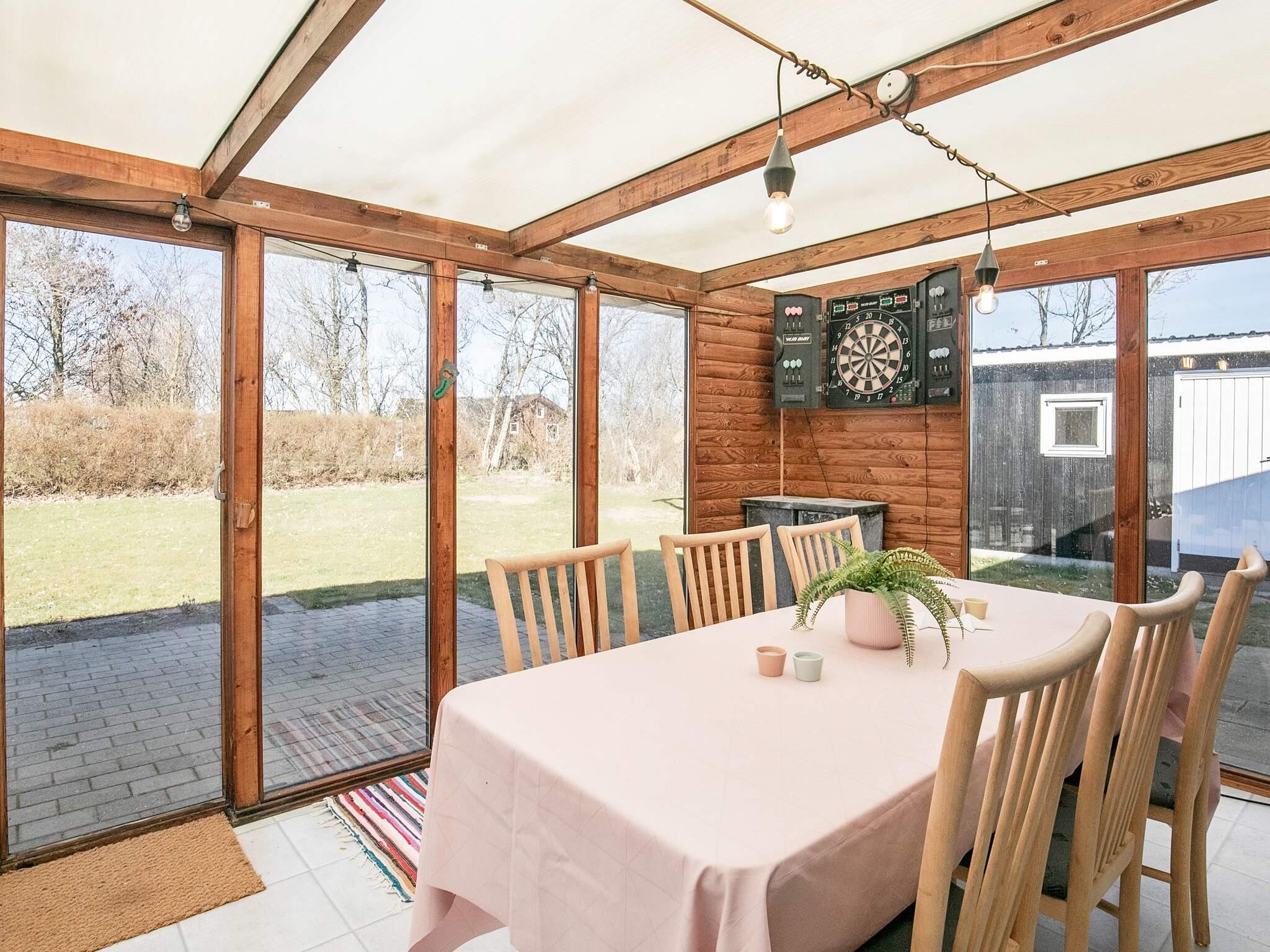 Huset byder på flere åbne terrasser med gode havemøbler og gasgrill, hvor I kan nyde aftensmaden, mens solen går ned over området. Sommerhuset ligger desuden kun cirka 200 meter fra områdets store fællesareal med legeplads, petanquebane samt bord- og bænkesæt. Udlejes ikke til ungdomsgrupper.