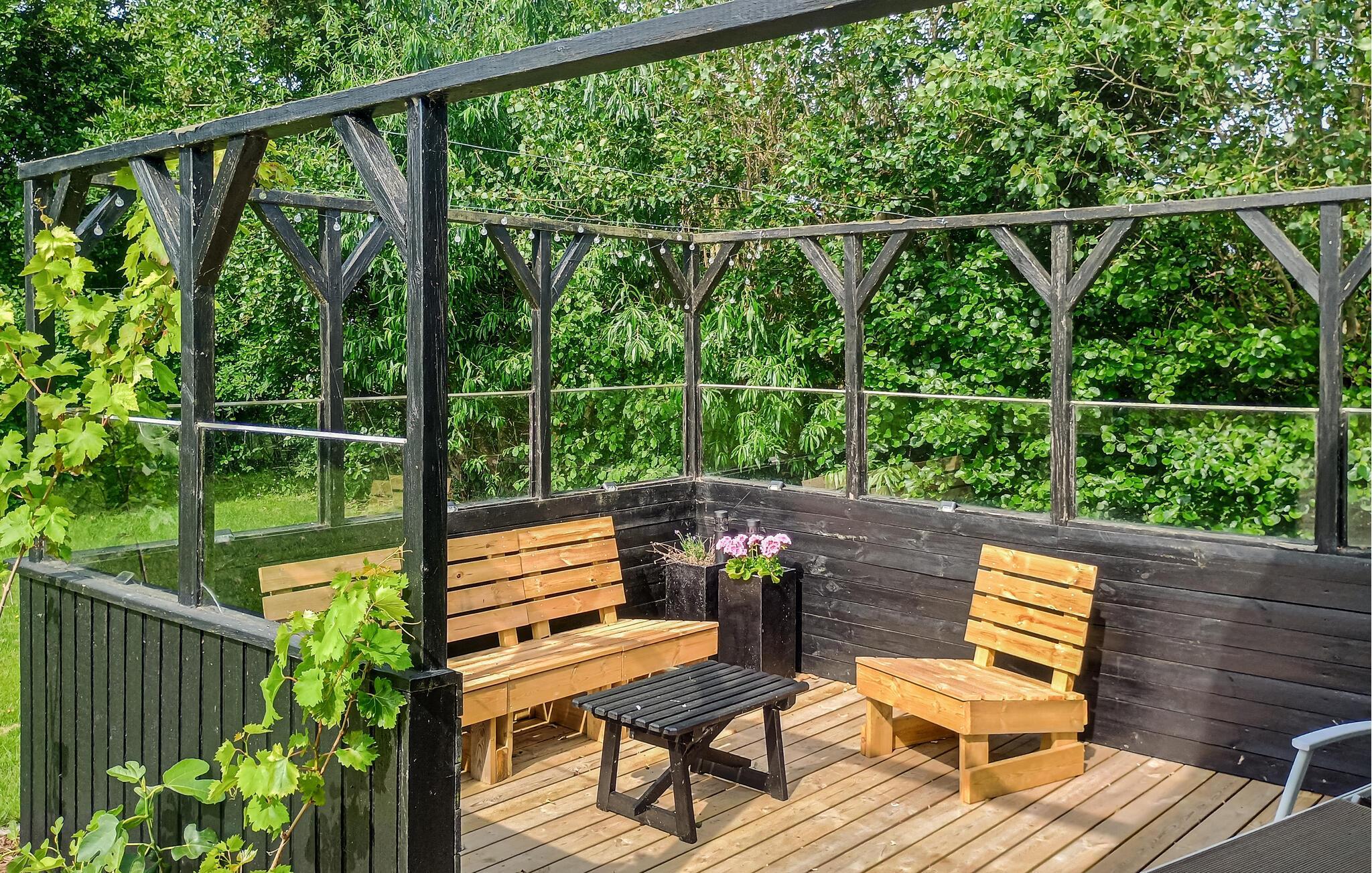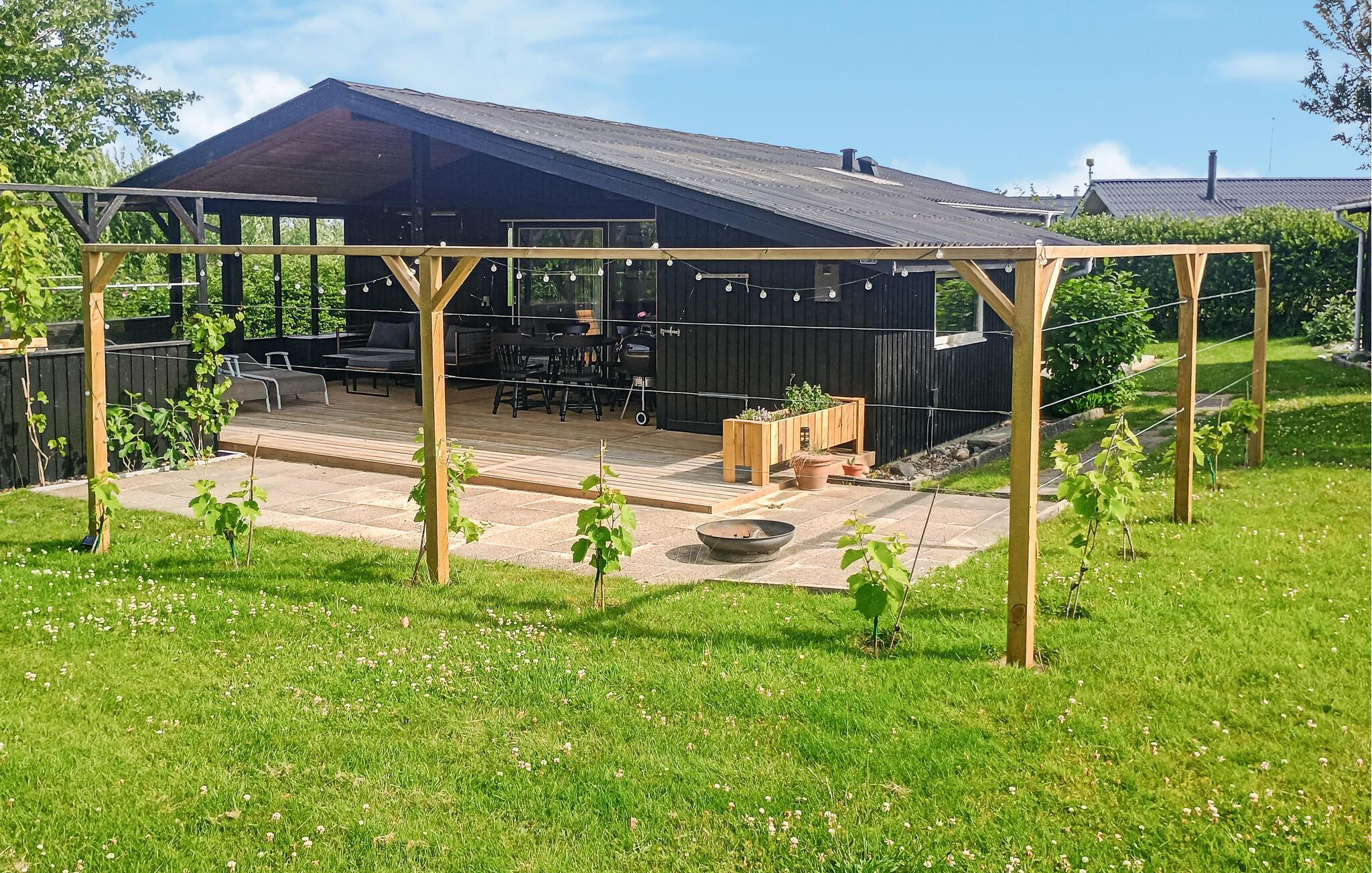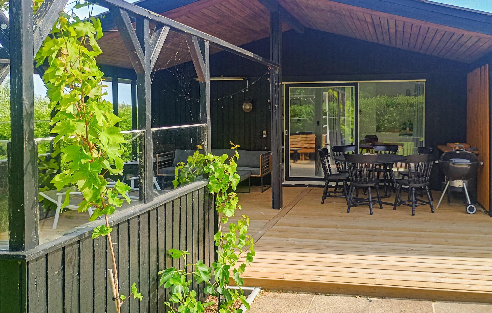 Den rummelige, overdækkede terrasse giver jer god mulighed for at nyde den friske luft uanset vejrliget. Læg jer til rette i hængekøjen, solbad på liggestolene eller nyd et måltid under åben himmel. Den velholdte have lægger op til en masse sjove aktiviteter og en pause i solen. De lune sommerdage rundes af med en velfortjent grillmiddag.