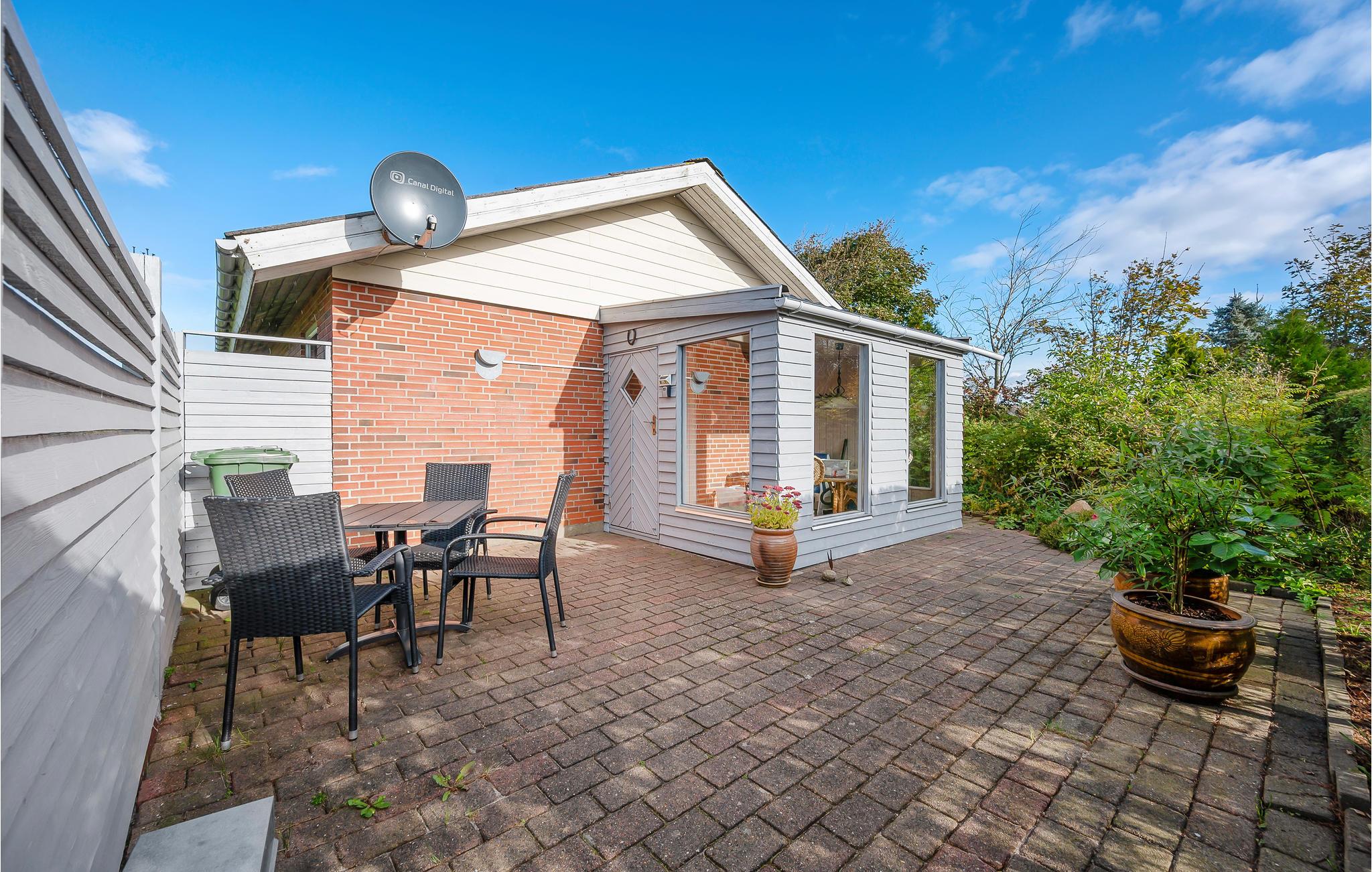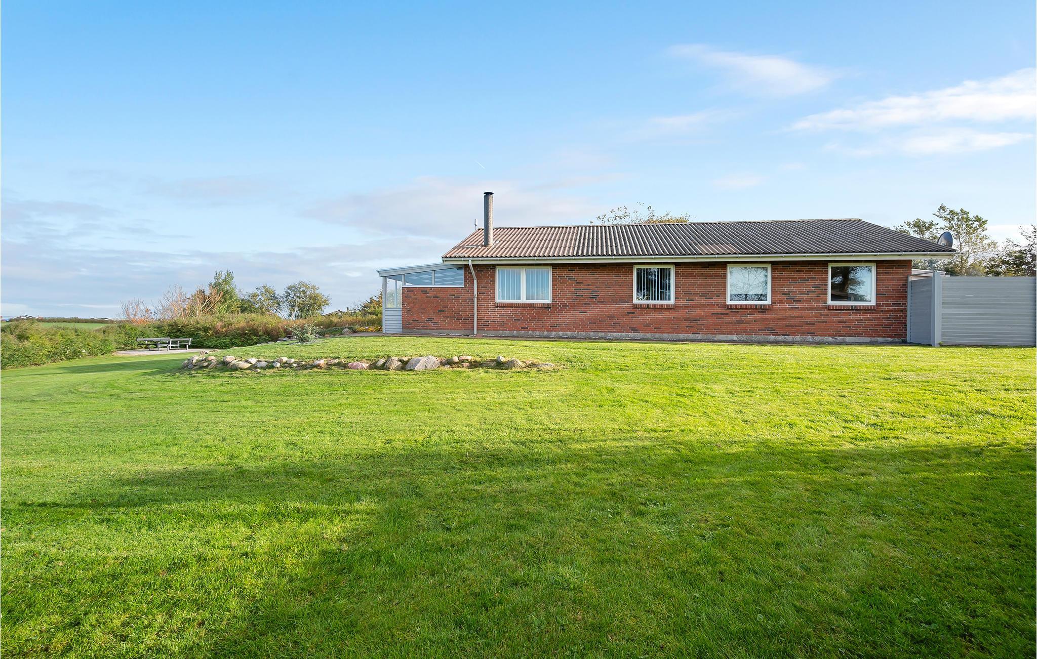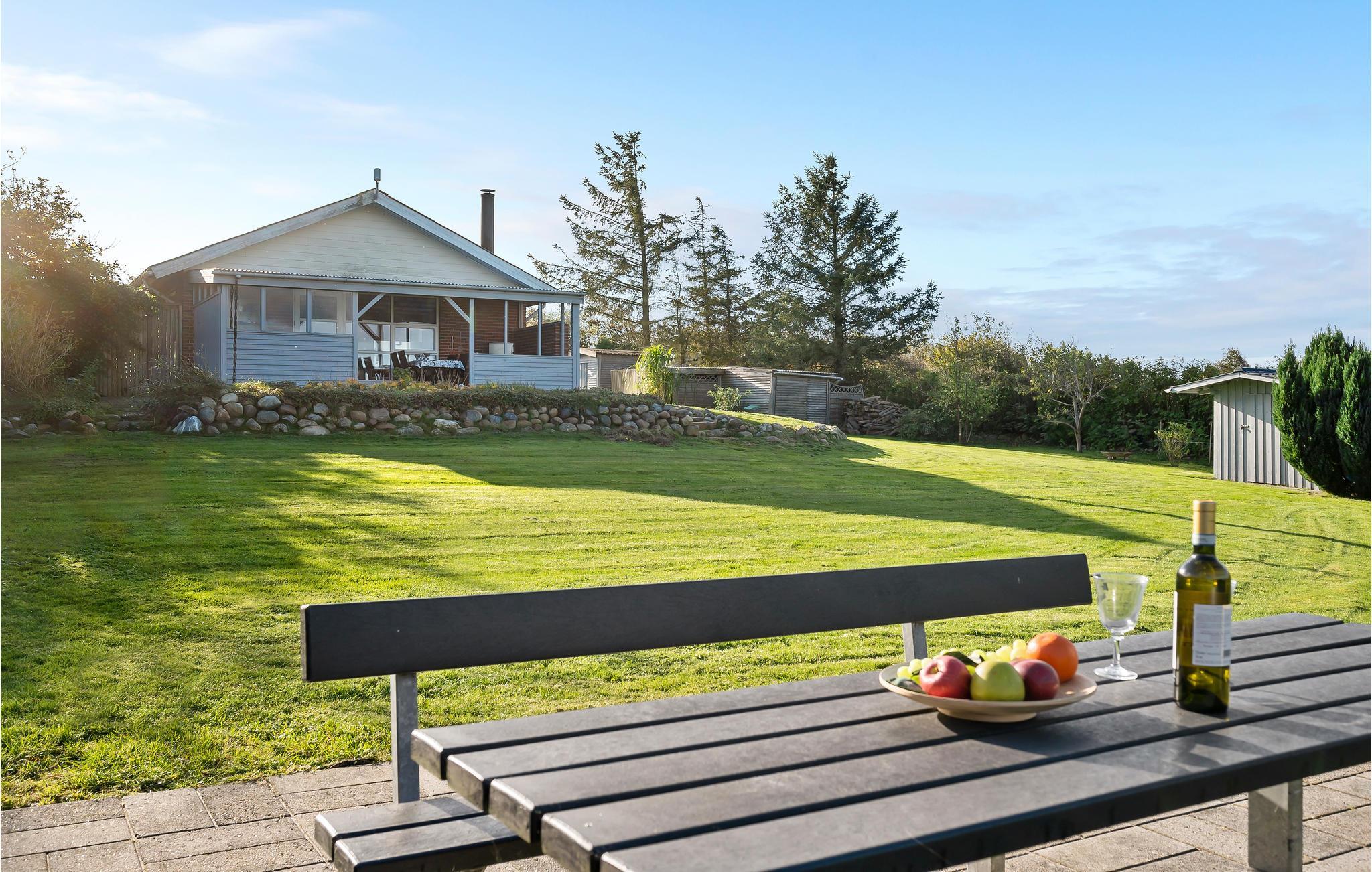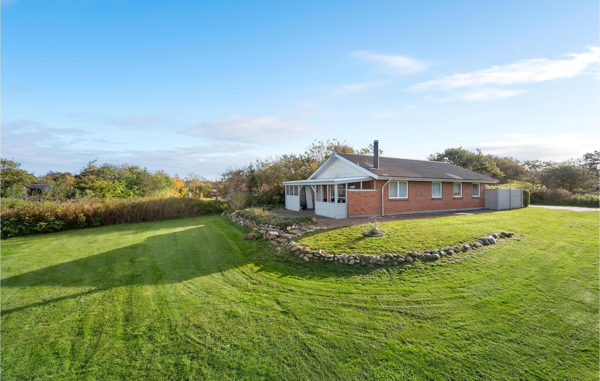 Udenfor finder I en overdækket terrasse med havemøbler og grill, så I let kan nyde et lækkert måltid ude i den friske luft. Haven er grøn, og den store græsplæne indbyder til leg og spil for feriegæster i alle aldre. Familiens firbenede medlemmer vil også elske haven, hvor der er masser af plads at boltre sig på.