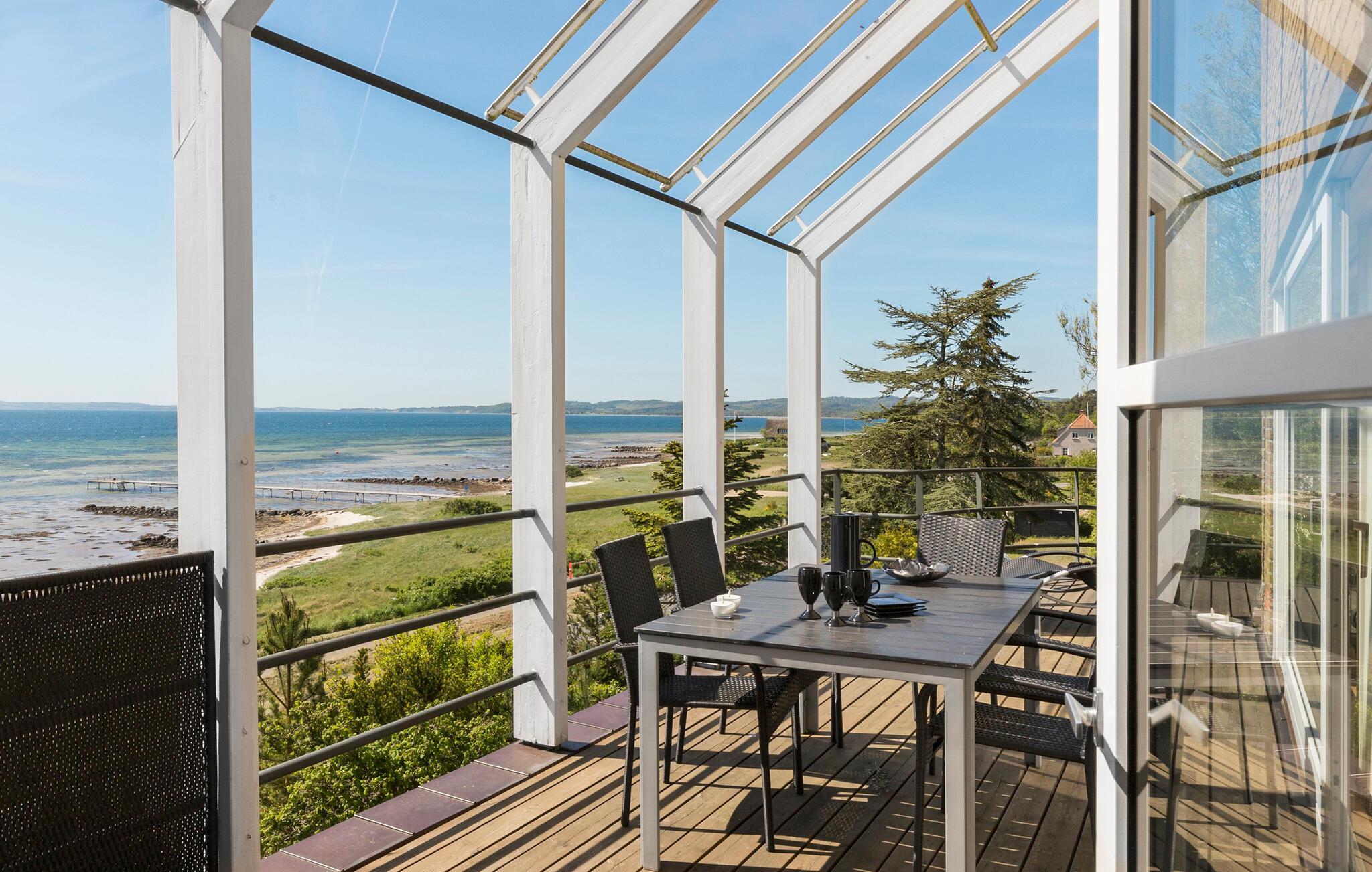 Rummeligt feriehus ved Handrup Strand med panoramaudsigt over Ebeltoft Vig og spabad.