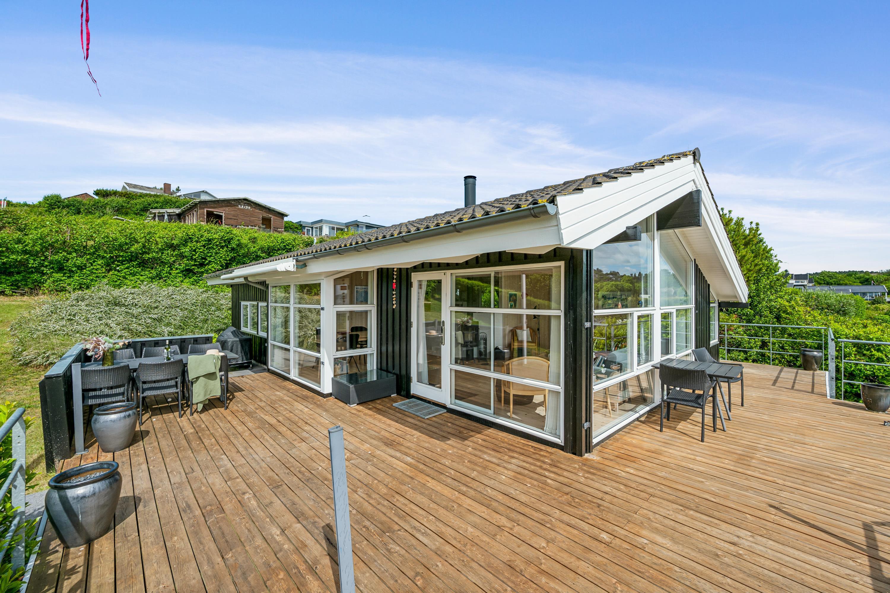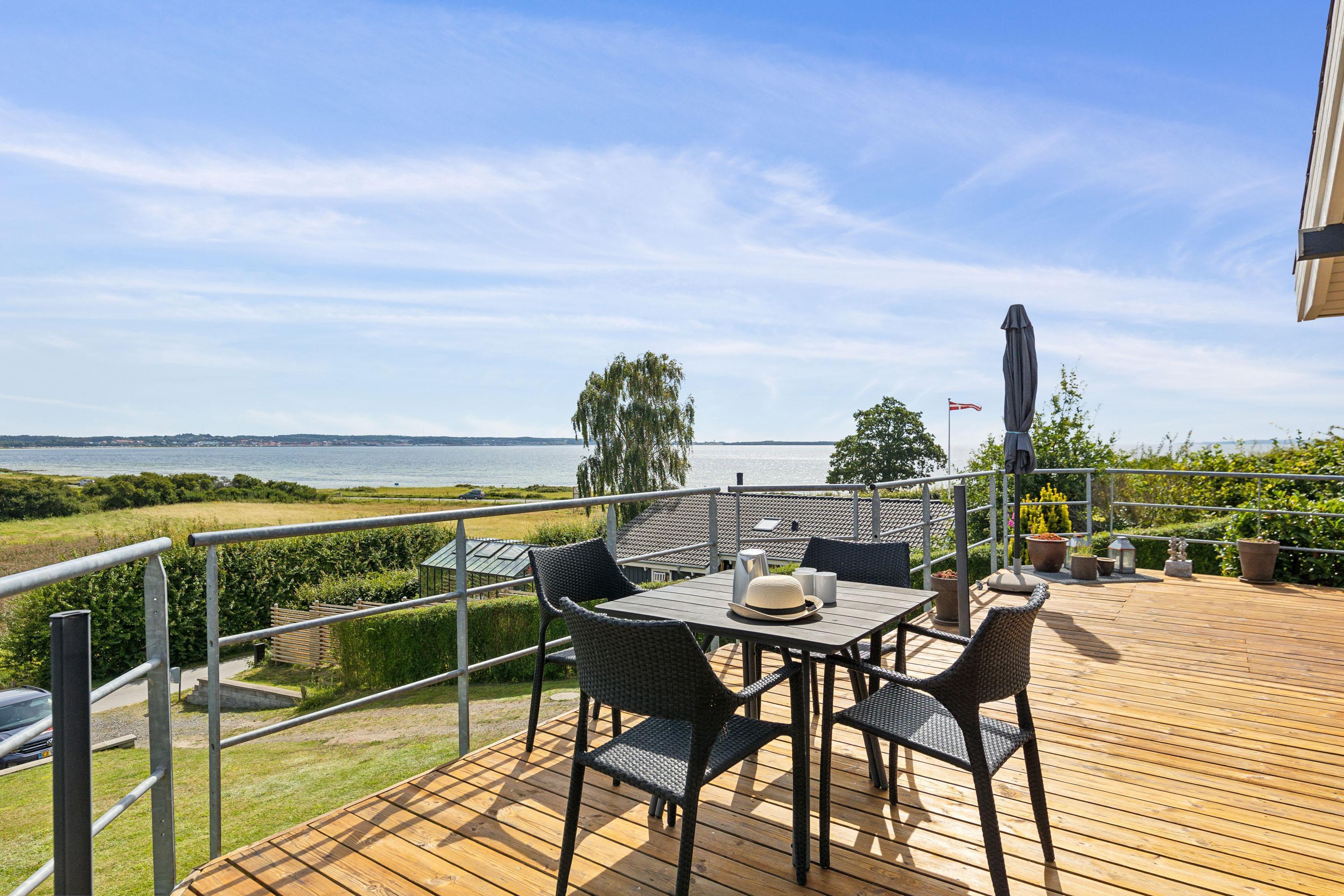Højt beliggende og med den mest fantastiske udsigt over Ebeltoft Vig og Mols Bjerge, finder man dette yderst velholdte og velindrettede feriehus.Såvel fra grunden som fra huset har man den mest storslåede udsigt. Her finder man en flot og velindrettet stue med gode møbler, brændeovn og varmepumpe. Fra stuen er der udgang til den skønne terrasse med havemøbler. I forbindelse med stuen finder man det flotte og veludstyrede køkken med b.la. amerikansk køleskab og opvaskemaskine. Stort badeværelse med bruseniche, spa-bad og vaskemaskine samt adgang til sauna. Husets sengepladser fordeler sig i tre soveværelser; heraf to med dobbeltsenge samt et værelse med to enkeltsenge. Til de små feriegæster er der et puslebord samt en barnestol. TV foregår via chromecast.