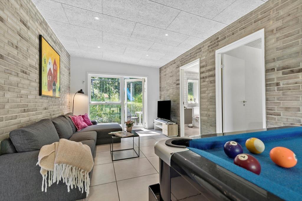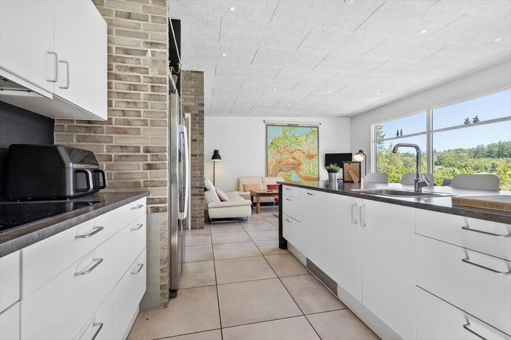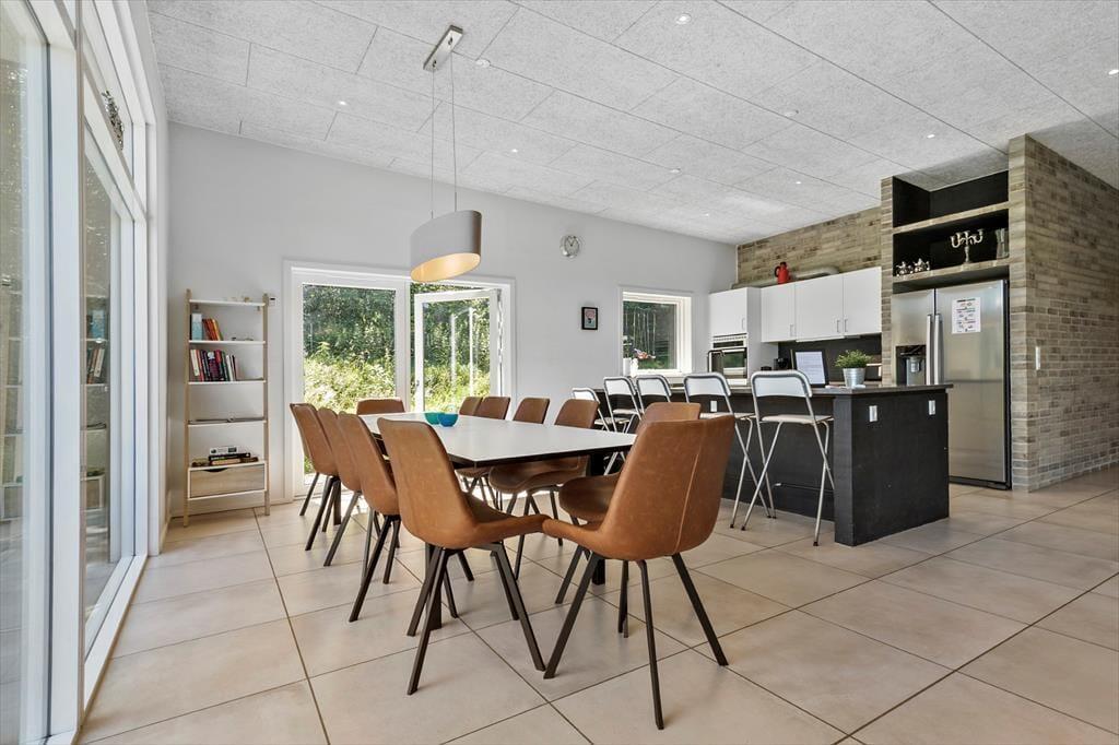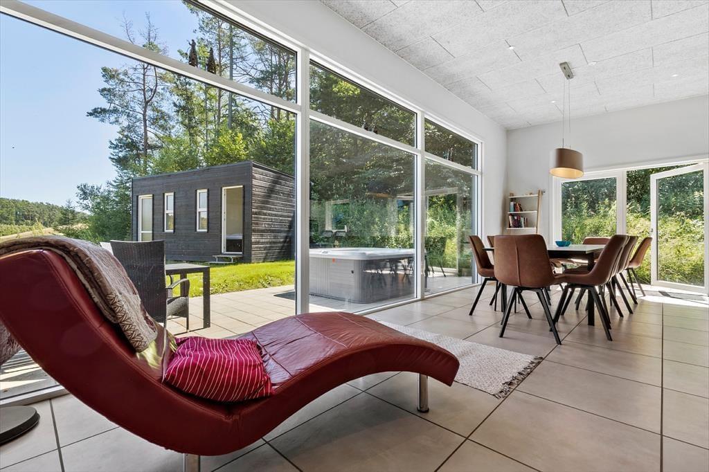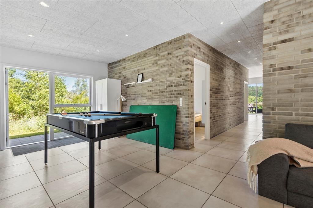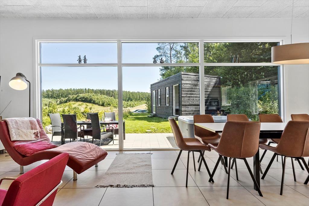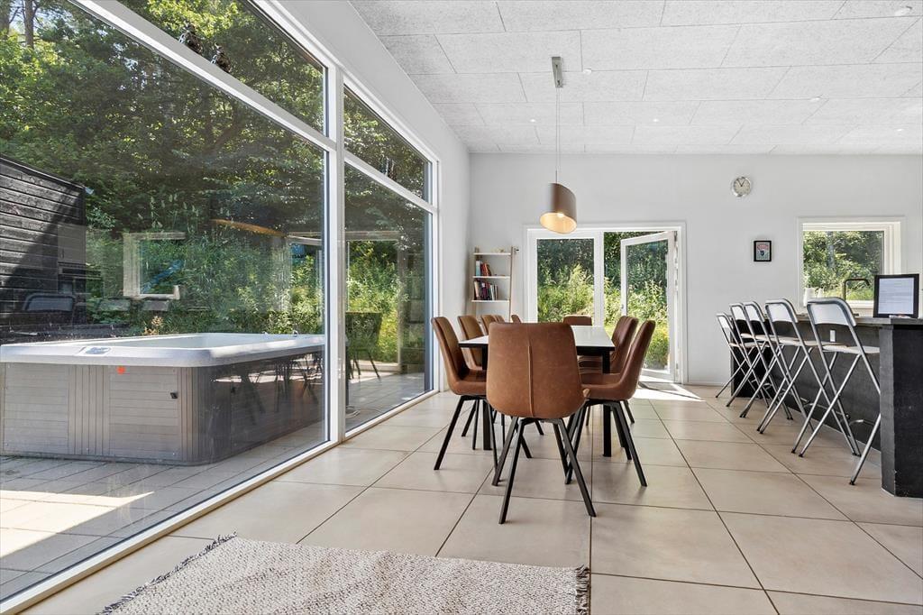 Dette imponerende feriehus byder på 7 flotte værelser, hvor 2 af dem ligger i et anex. Her kan alle få deres eget rum og hygge sige i, være stille med en god bog, eller på anden måde hvile sig. Der er også 2 store badeværelser begge med bruser og et med badekar. Aktivitetsrummet er rummeligt og velegnet til både unge og voksne. Nyd den fantastiske udsigt gennem de store panoramavinduer, mens du slapper af. Køkkenet er fuldt udstyret med moderne hårde hvidevarer og alt nødvendigt køkkengrej. Køkkenet ligger i åben forbindelse med stuen, så her kan alle hygge sig samtidigt lige meget om der skal laves mad eller spilles spil. Dette sted er perfekt til en luksuriøs og underholdende ferieoplevelse for hele familien.