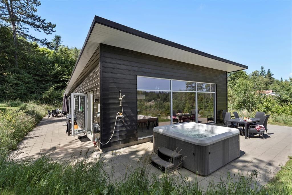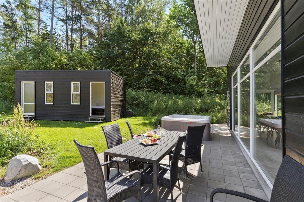 Huset har en stor dejlig grund med legeplads til de små og også til de store. Den store standvandsspa, gøres klar på dagen og det kan hænde at den ikke er helt oppe i graderne, som gør det behageligt at være i, allerede den første dag. På terrassen kan du læse en bog, se efter børnene og nyde den ro, som området byder på. Den findes ikke mange andre steder.