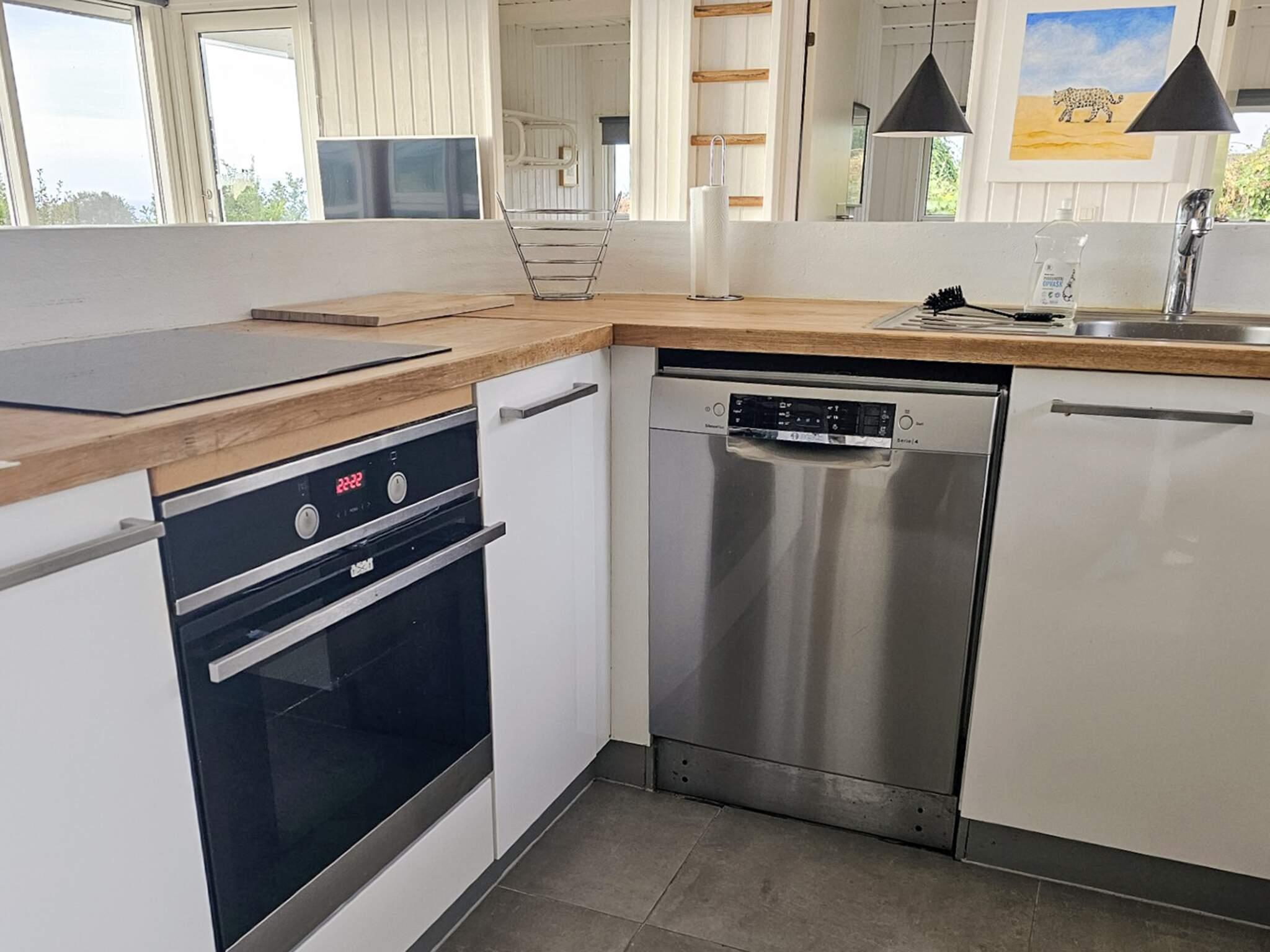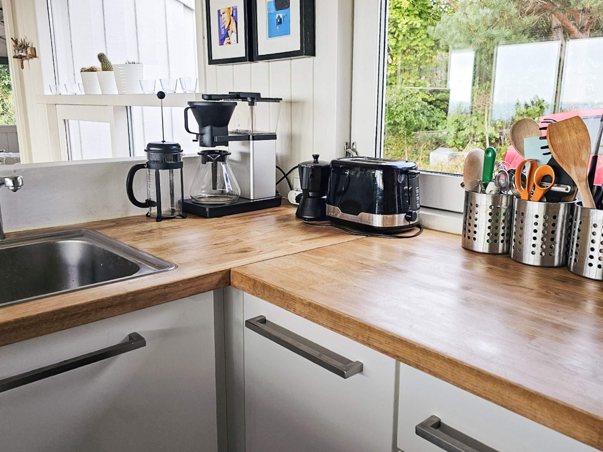Huset er utroligt godt og funktionelt indrettet med bl.a. stort køkken/alrum i åben forbindelse til opholdsstuen med tv, Køkkenet er udstyret med alt i hårde hvidevarer.