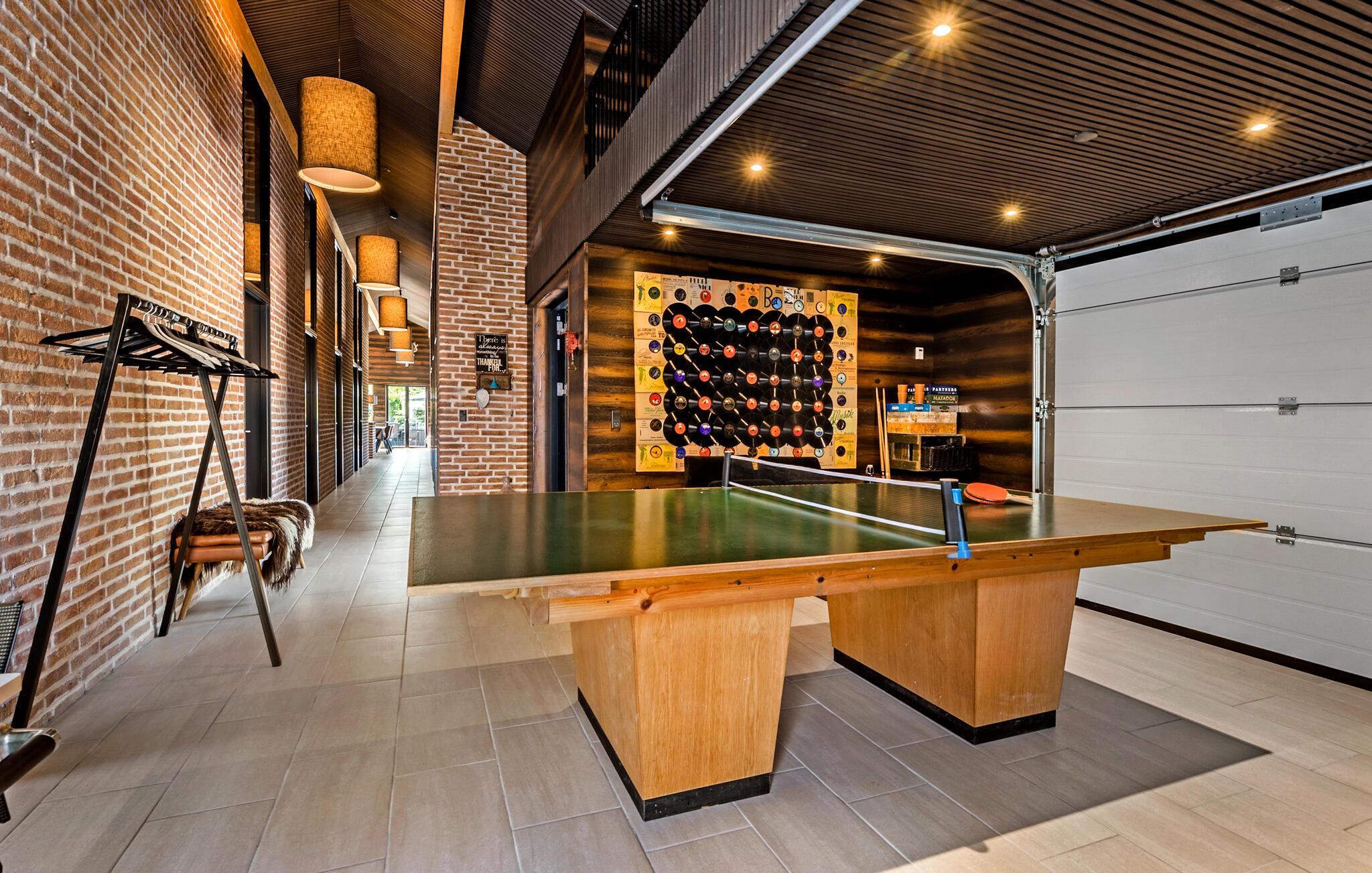 Hvis I er på udkig efter en bolig til årets sammenkomst med den store familie eller en vennefamilie, og hvis I ikke går af vejen for komfort og underholdning på tværs af generationerne, er I kommet til det helt rette sted. Dette flotte og familievenlige hus ligger kun en kort gåtur fra stranden, og indretningen fremtræder virkelig attraktivt med loft til kip, rå murstensvægge og store vinduespartier, der giver den åbne stue et lyst og luftigt udtryk. Hvis vejret viser lidt tænder, kan I tænde op i brændeovnen, der giver varme og stemning til madlavningen i det moderne køkken, mens andre duellerer ved bordtennisbordet eller dækker op ved spisebordene med plads til alle og en dejlig udsigt. Lad en dejlig dag gå på hæld med snacks og en hyggelig filmaften i det komfortable sofaområde, mens I lægger planer for de kommende dage.