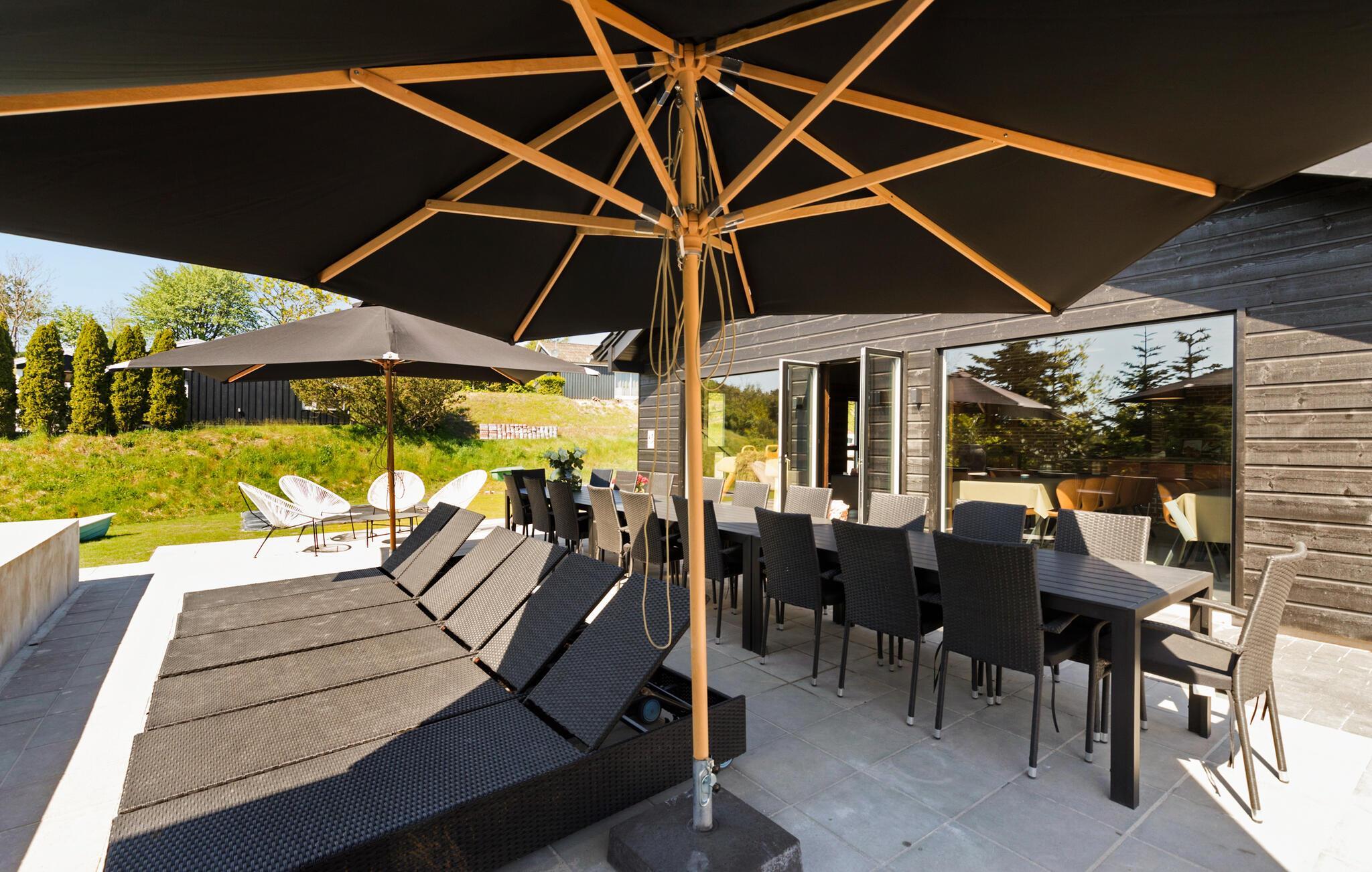 Huset ligger på en stor og dejlig naturgrund, der lokker til sjov, spas og solbadning, når vejret er godt. For børnene er der trampolin, gynge og sandkasse at boltre sig med, mens de voksne daser på terrassen eller får et spil skak med de gedigne brikker. Prikken over i'et er dog poolen, som året rundt er opvarmet til 38 grader - her kan børnene plaske rundt fra morgen til aften. Tilbered en lækker aftensmad på grillen, inden I forkæler jer selv med lidt god wellness i saunaen eller spabadet med en god drink til sent.