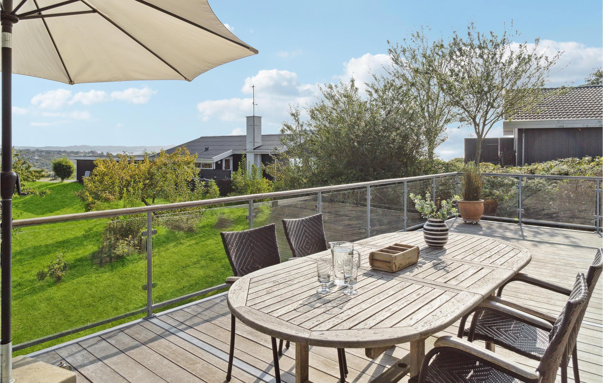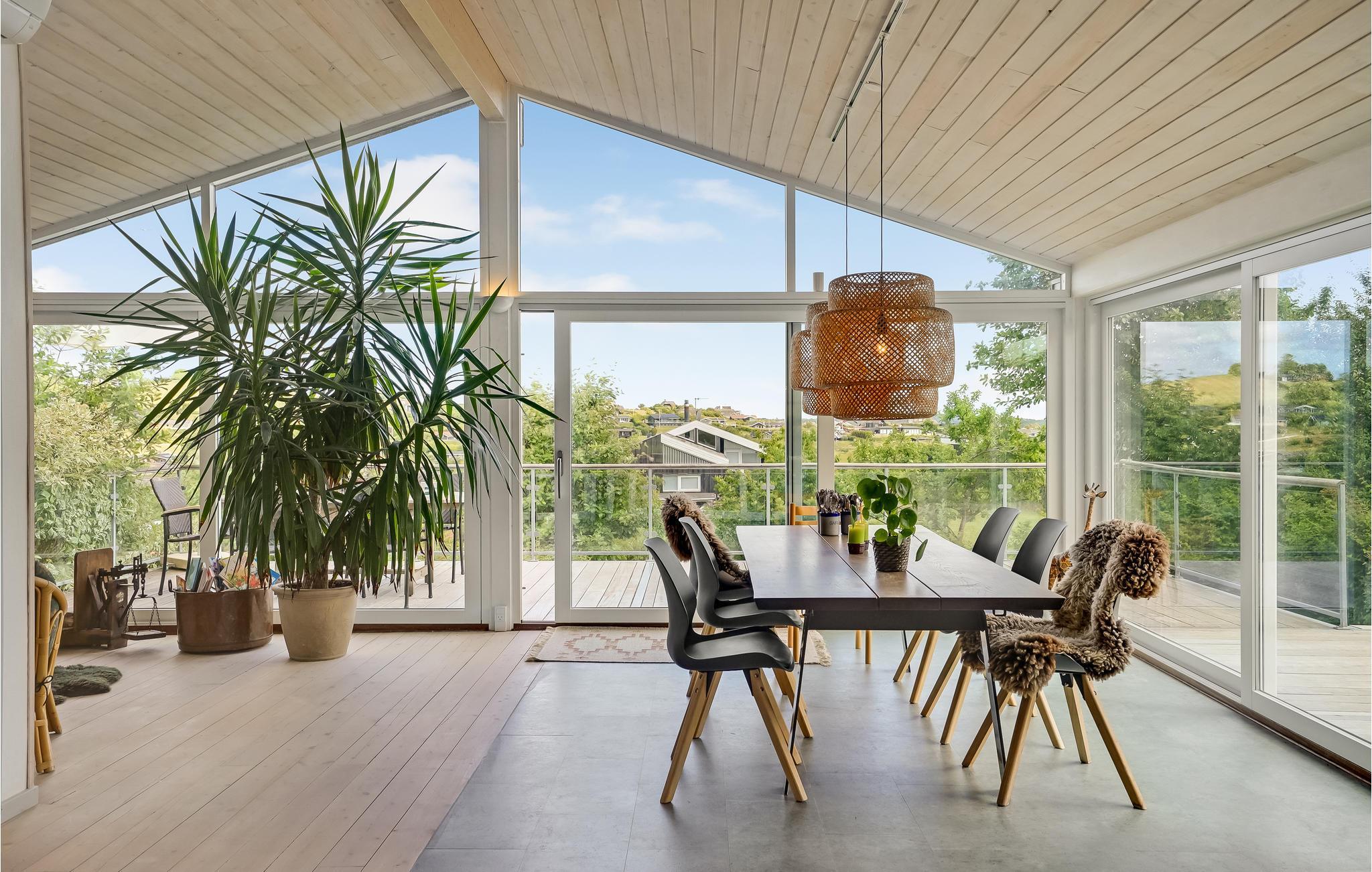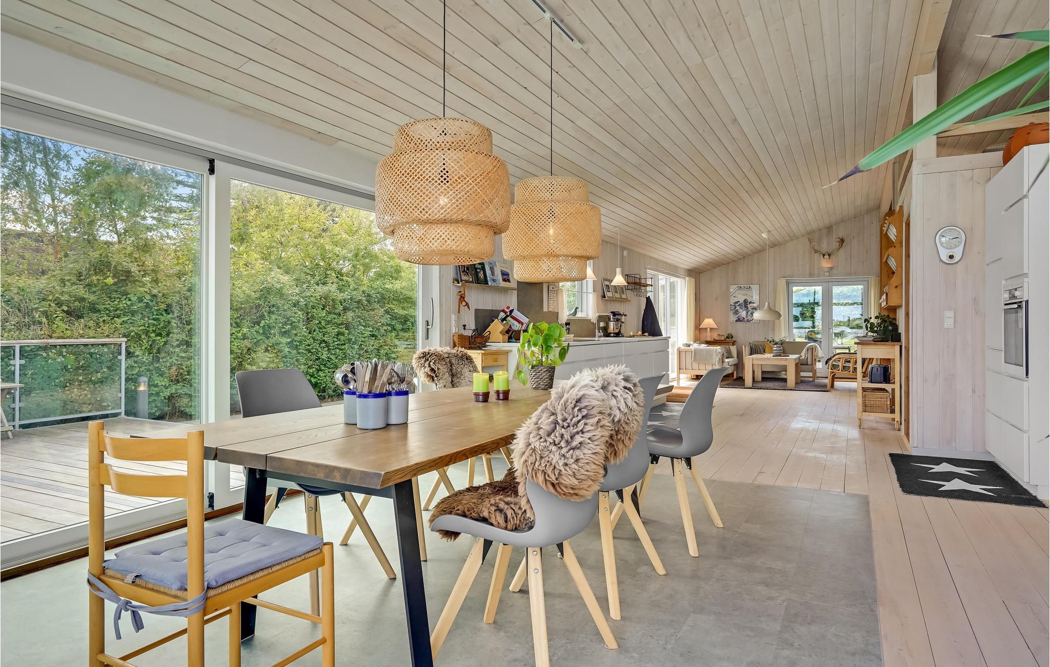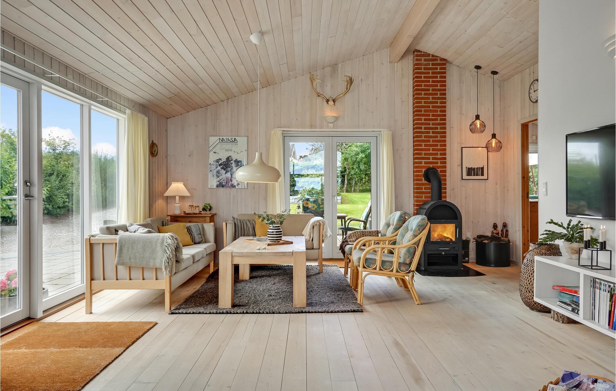 Tag familien med til Djursland og nyd et skønt ophold i dette attraktive sommerhus. Her kan I se frem til en bolig med gode faciliteter og hyggelige rammer. Den store opholds- og spiseafdeling er indbydende og lys på grund af de store vinduesfronter.Om aftenen sørger brændeovnen for stemningsfuld varme og hygge. Der er også gode terrasseområder, hvor I kan nyde solen og jeres måltider i den friske luft.