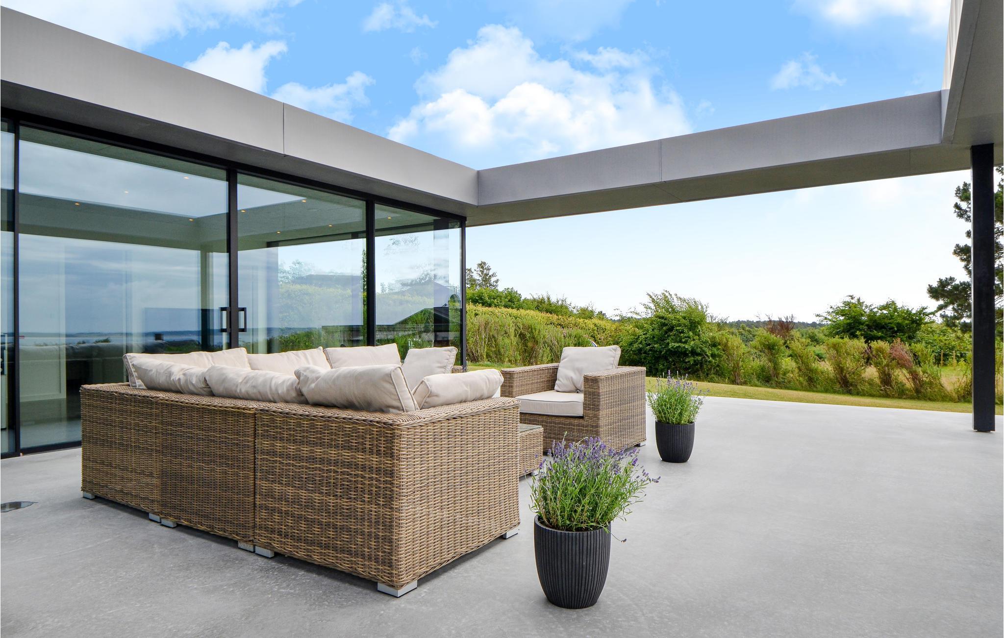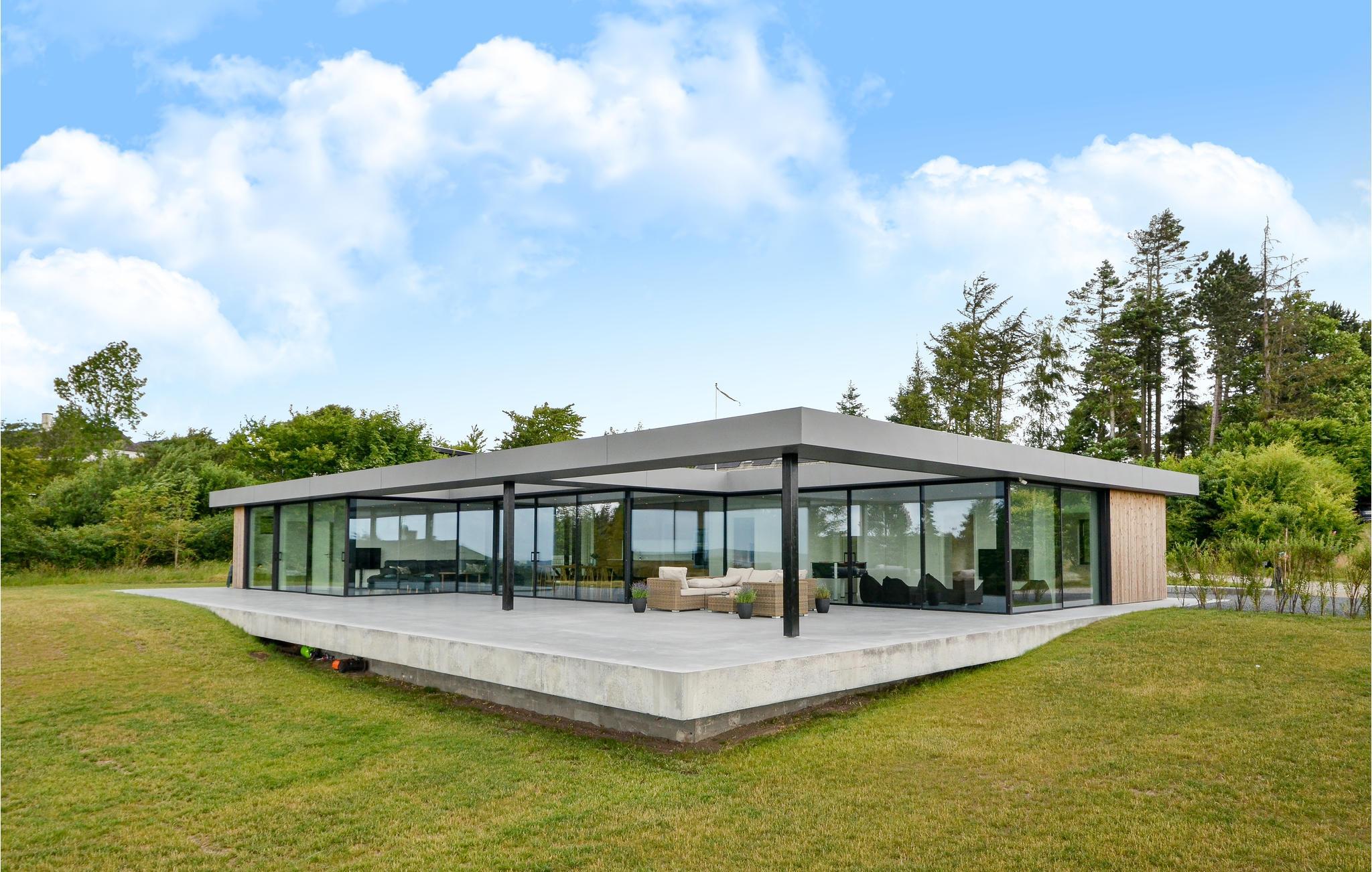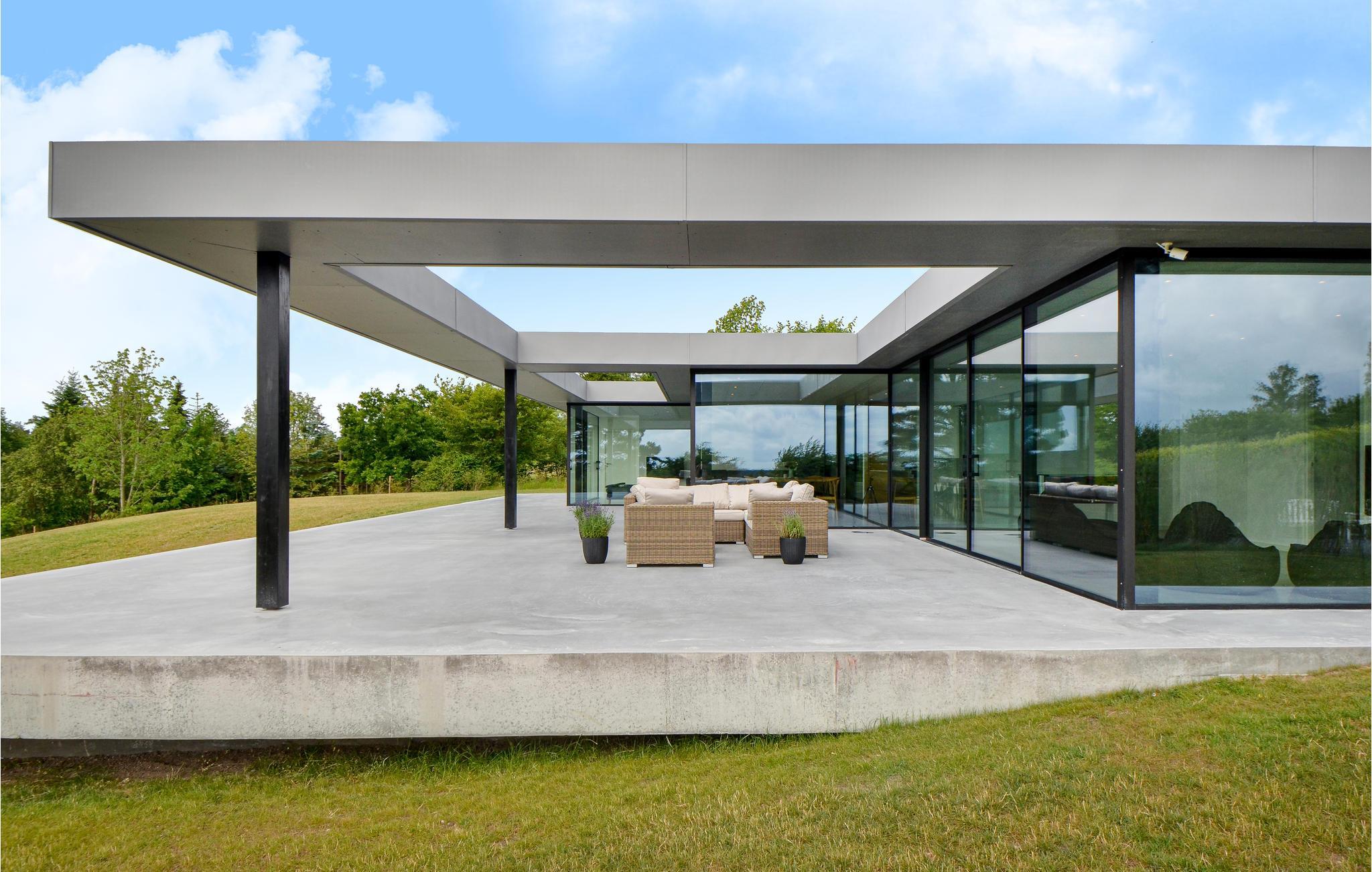 Arkitektonisk luksushus i Handrup Bakker med panoramaudsigt over Ebeltoft Vig og stor naturgrund.