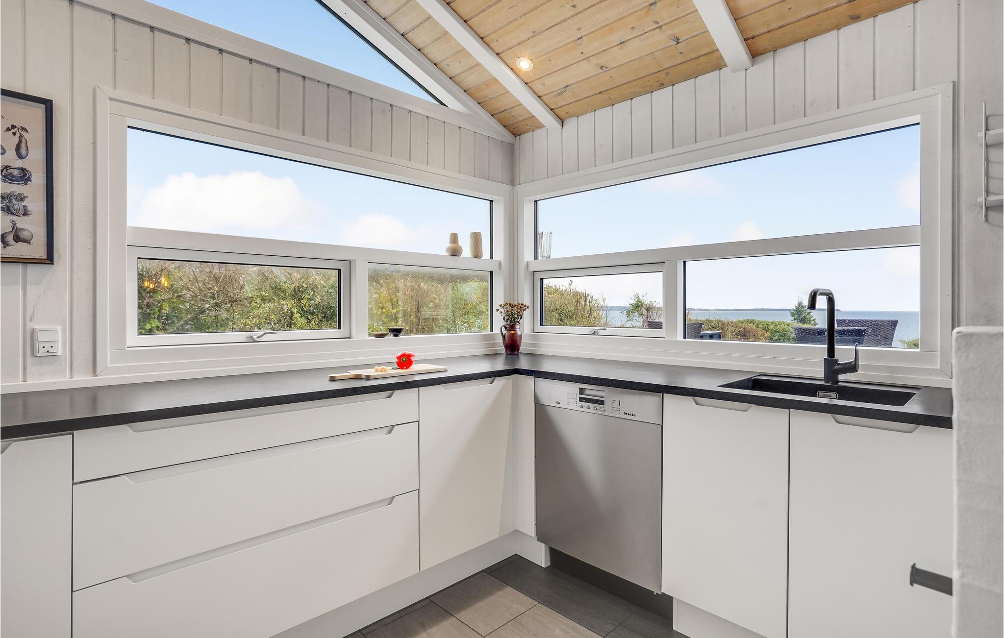 Dette skønne feriehus ligger helt ideelt med en flot panoramaudsigt over Ebeltoft Vig. Der er to minutters gang til den dejlige, børnevenlige strand med lavt vand og sandbund. Området byder på rigtig gode forhold til bl.a. windsurfing, lystfiskeri, golf og vandreture i de meget smukke omgivelser. I nærheden findes utallige attraktioner; besøg bl.a. Ebeltoft og oplev den hyggelige stemning med de toppede brosten og små butikker, tag i Ree Park, Skandinavisk Dyrepark eller besøg Det gamle Rådhus, Glasmuseet eller Fregatten Jylland.