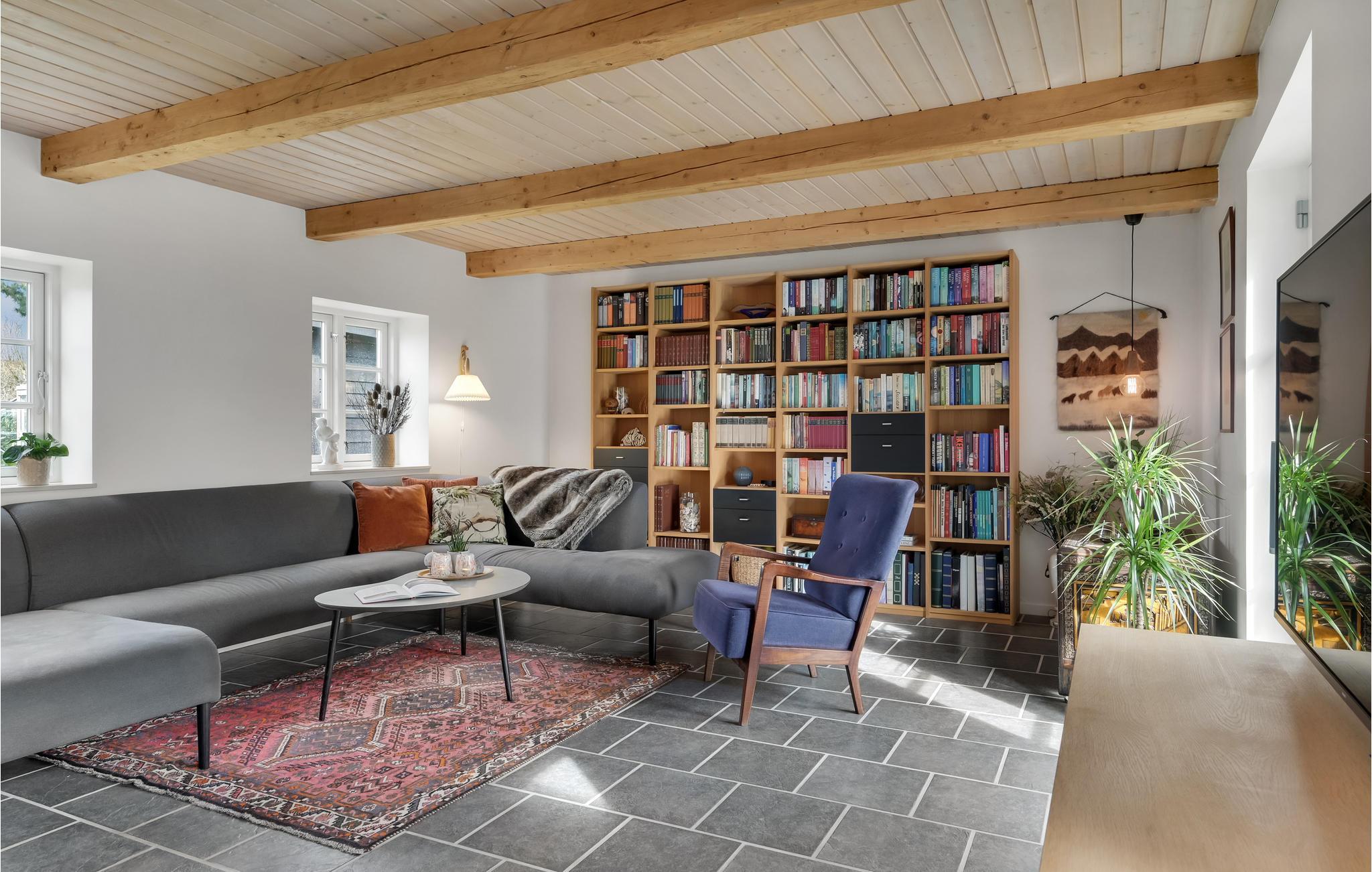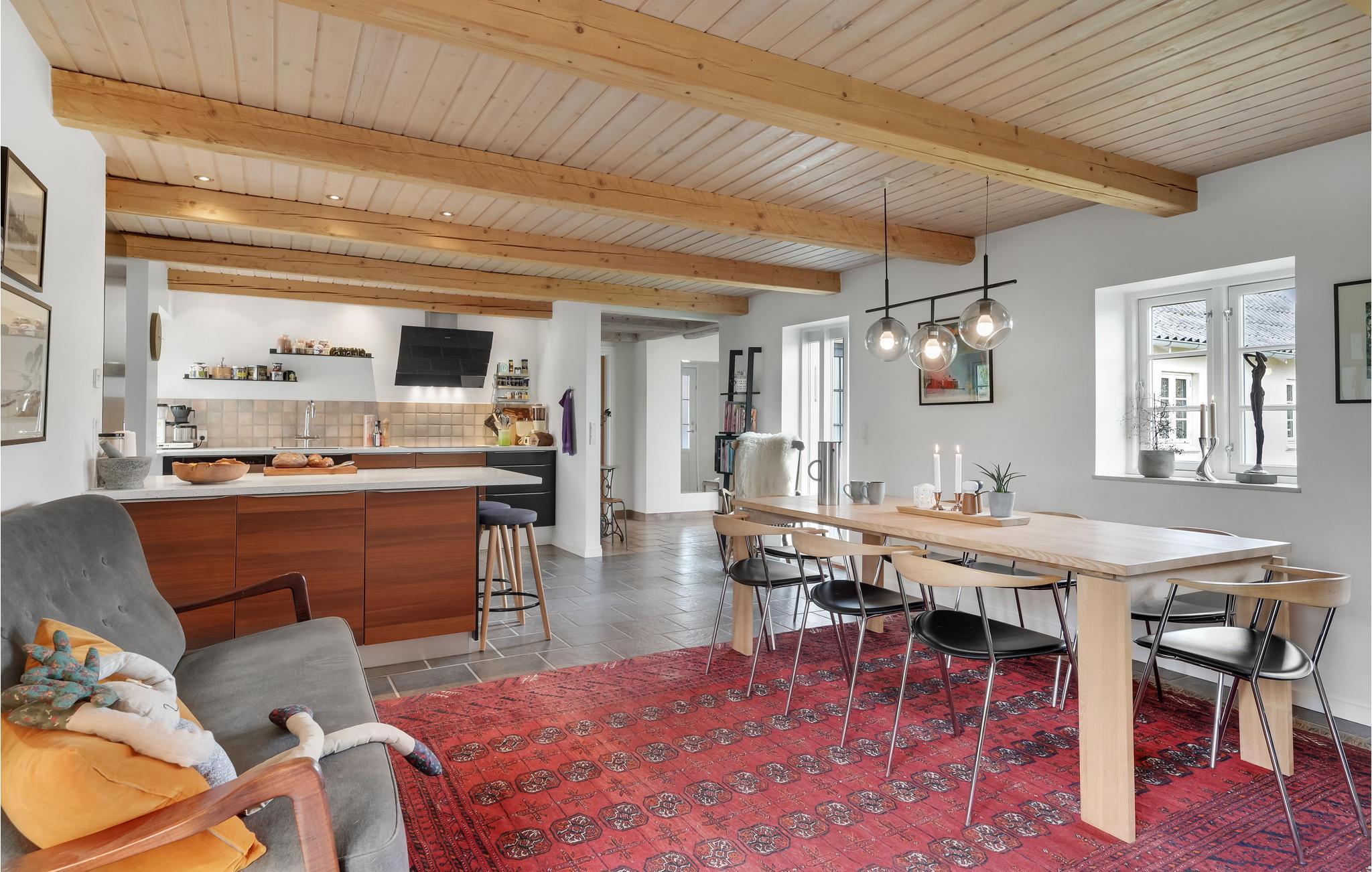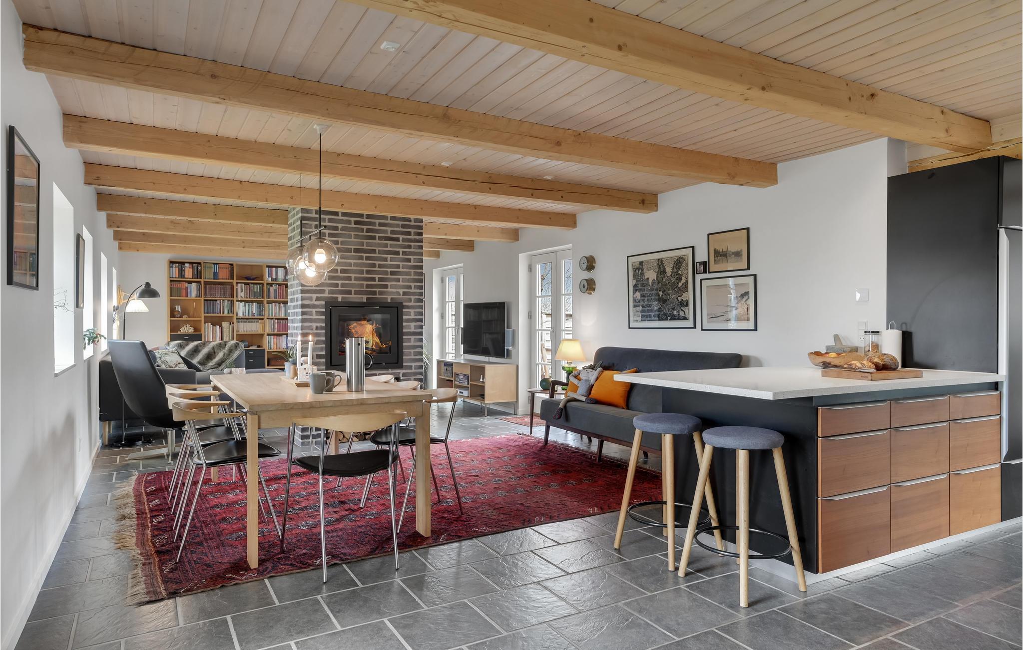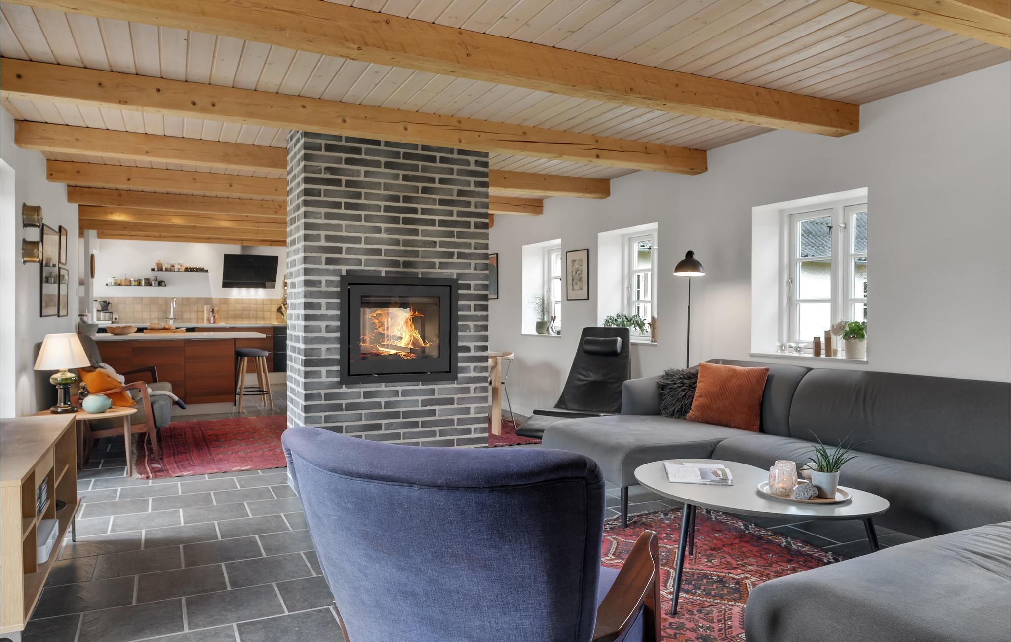 Velkommen til et dejligt stort hus, hvor der er god plads til hele familien. Her får I en velindrettet feriebolig med indbydende soveværelser og dejlige fællesarealer, hvor I kan slappe af sammen efter en lang dag på farten. Tænd op i brændeovnen på en kølig dag og sæt jer med brætspil, bøger og varm kakao, mens maden simrer på komfuret. I sommerhalvåret kan I dække op til dagens måltider udendørs og lade børnene boltre sig på græsplænen.