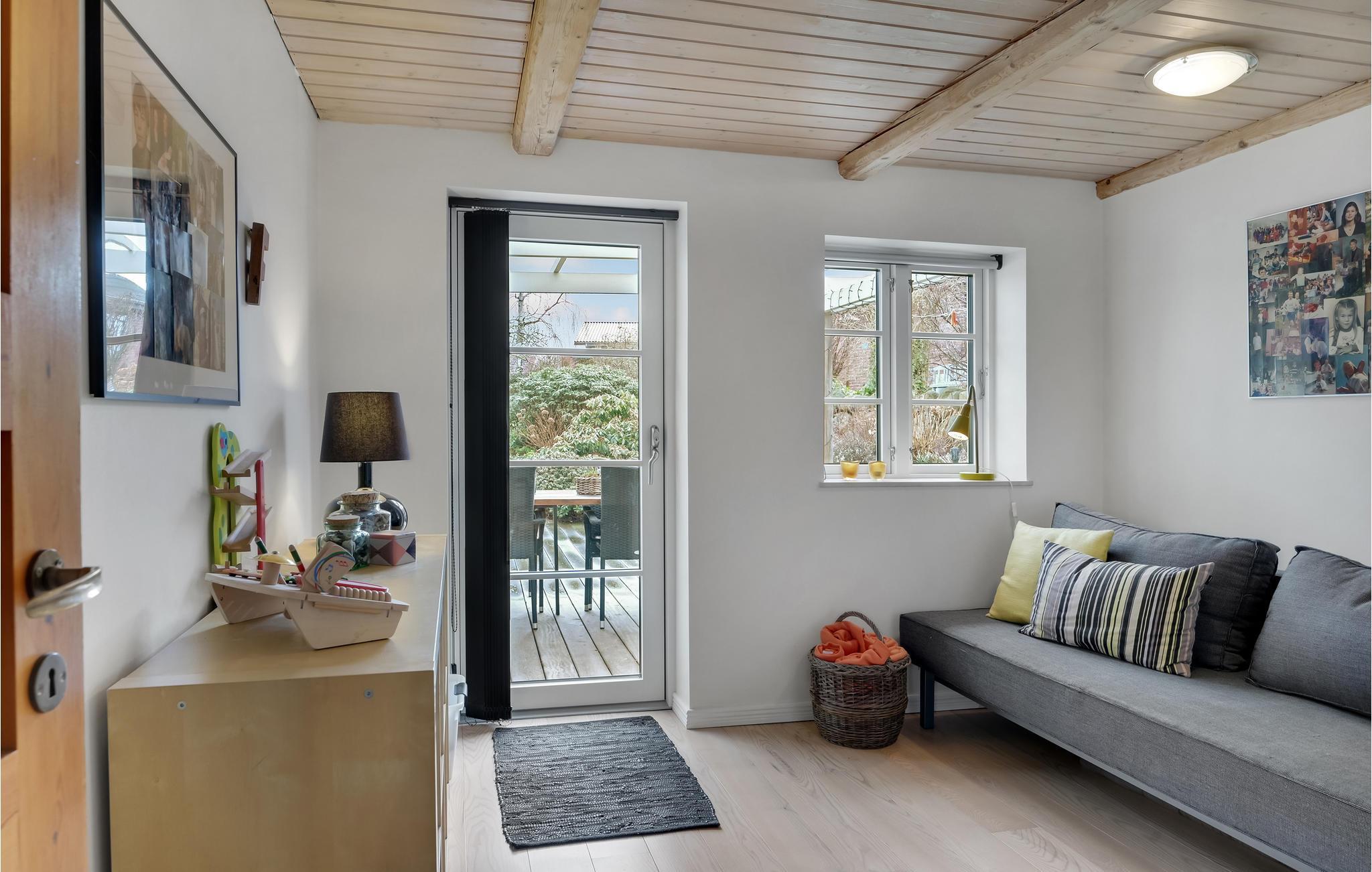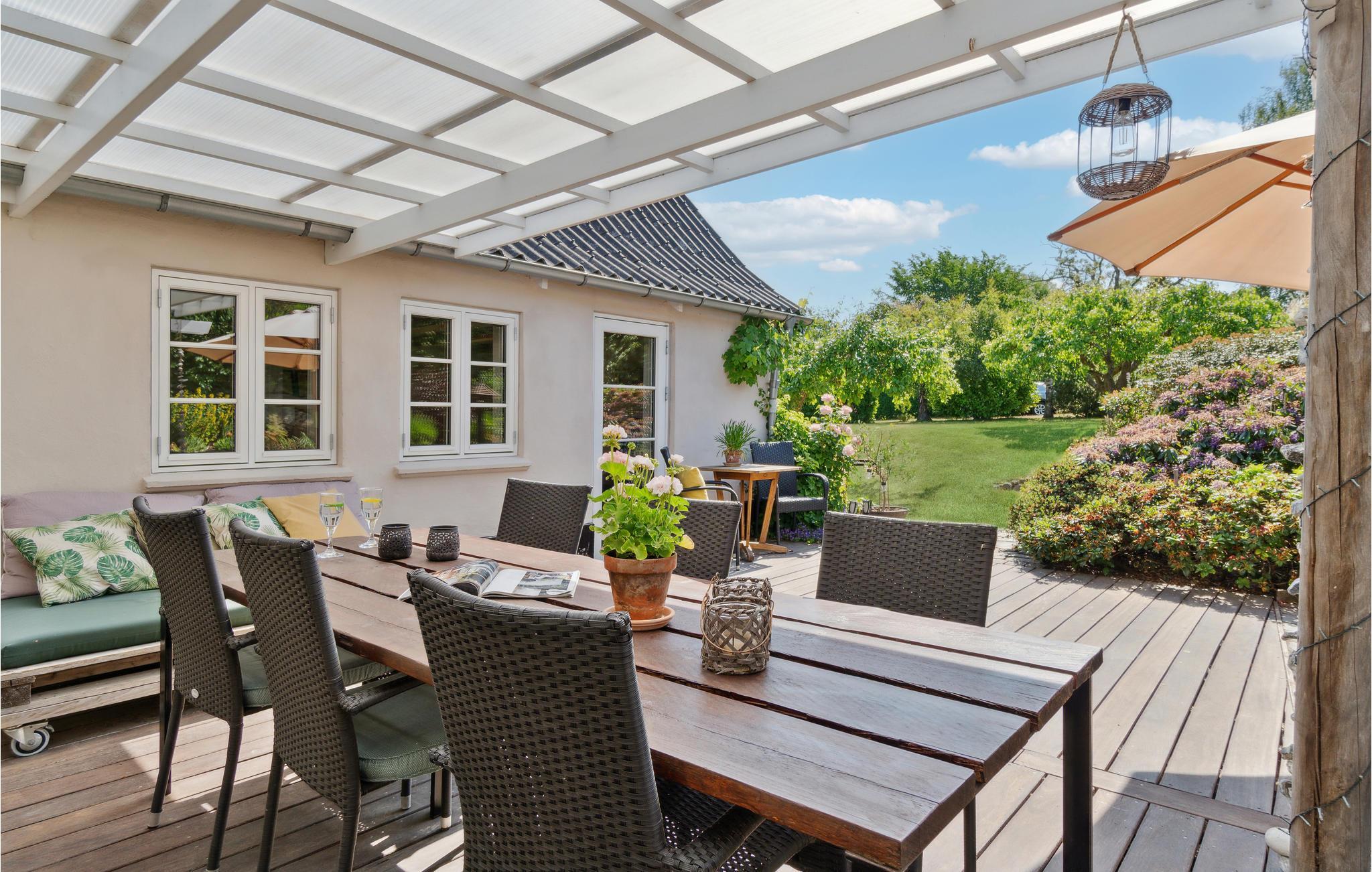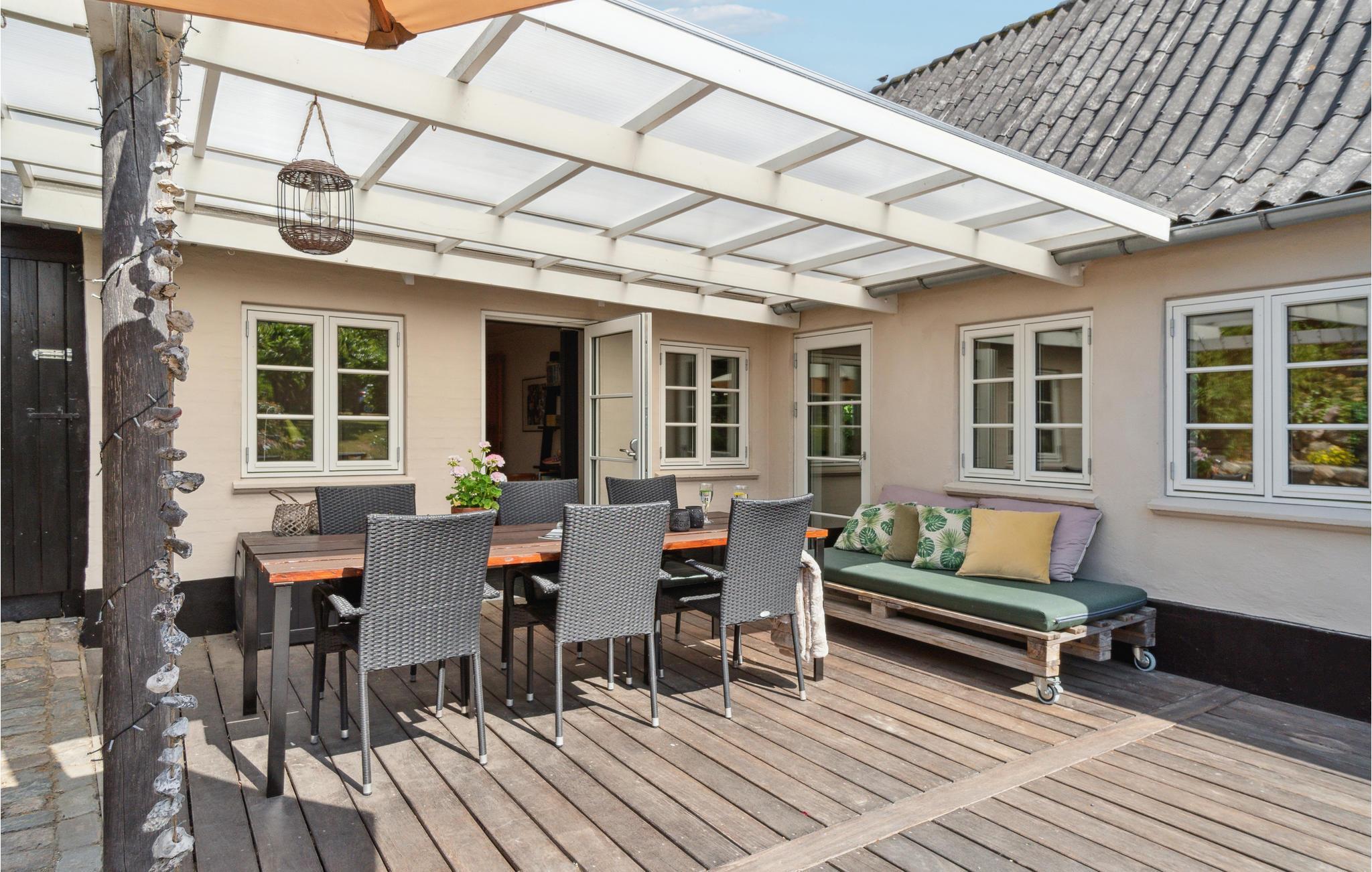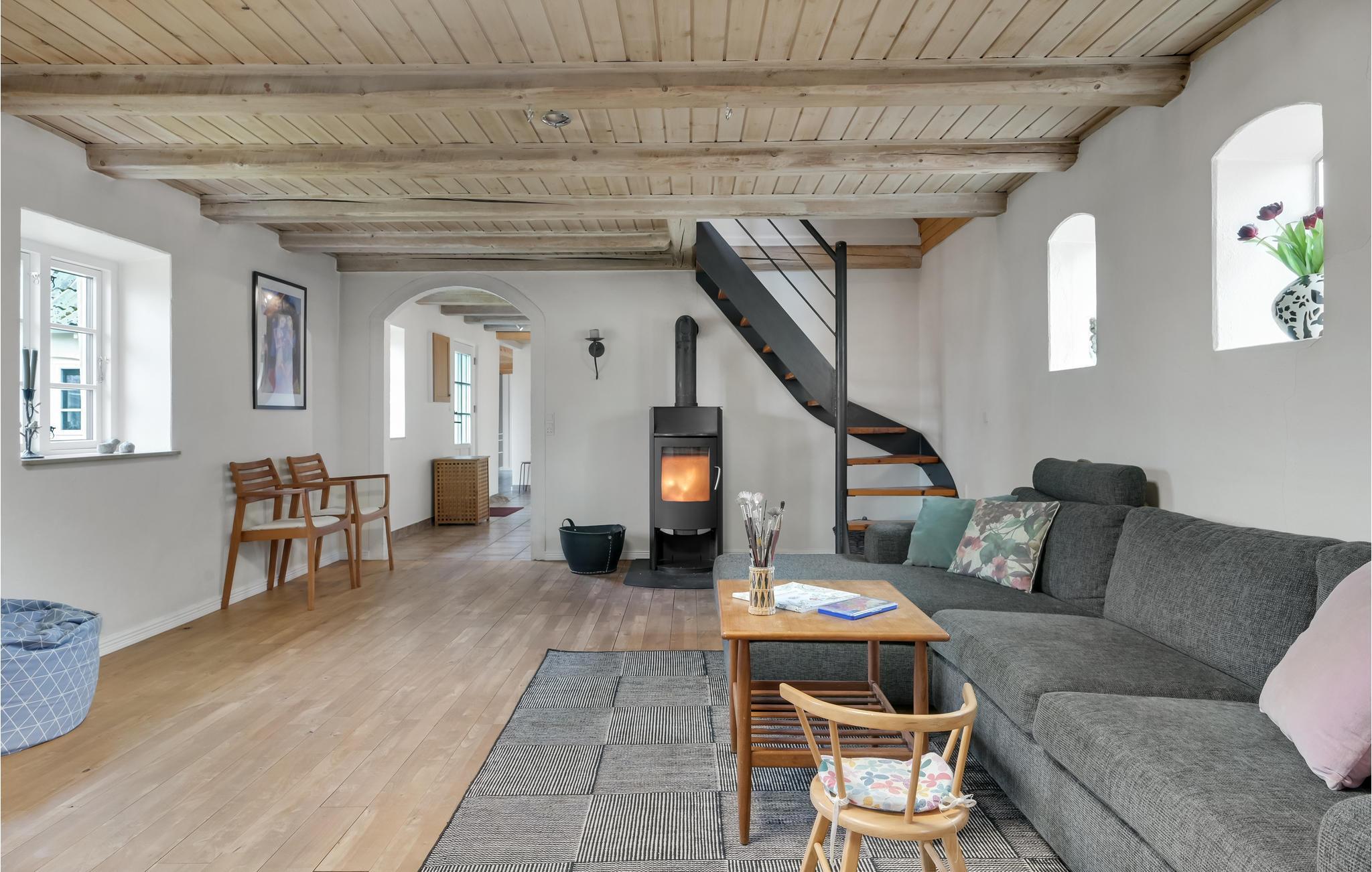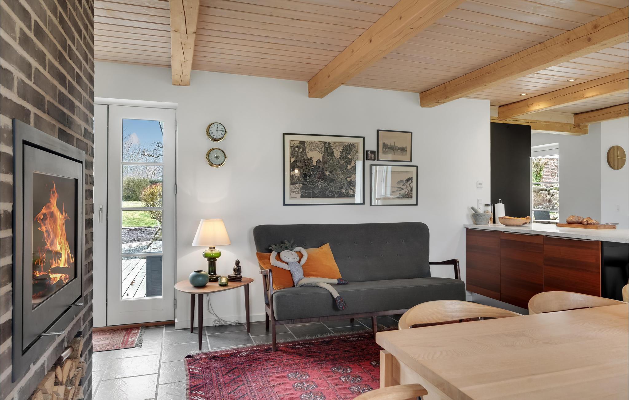 Velkommen til et dejligt stort hus, hvor der er god plads til hele familien. Her får I en velindrettet feriebolig med indbydende soveværelser og dejlige fællesarealer, hvor I kan slappe af sammen efter en lang dag på farten. Tænd op i brændeovnen på en kølig dag og sæt jer med brætspil, bøger og varm kakao, mens maden simrer på komfuret. I sommerhalvåret kan I dække op til dagens måltider udendørs og lade børnene boltre sig på græsplænen.