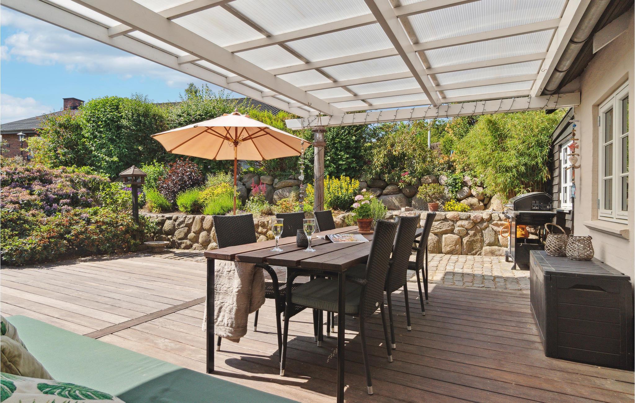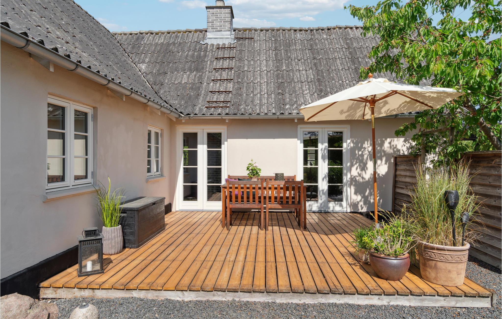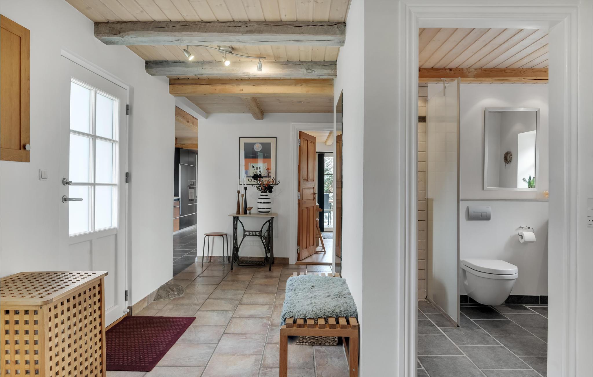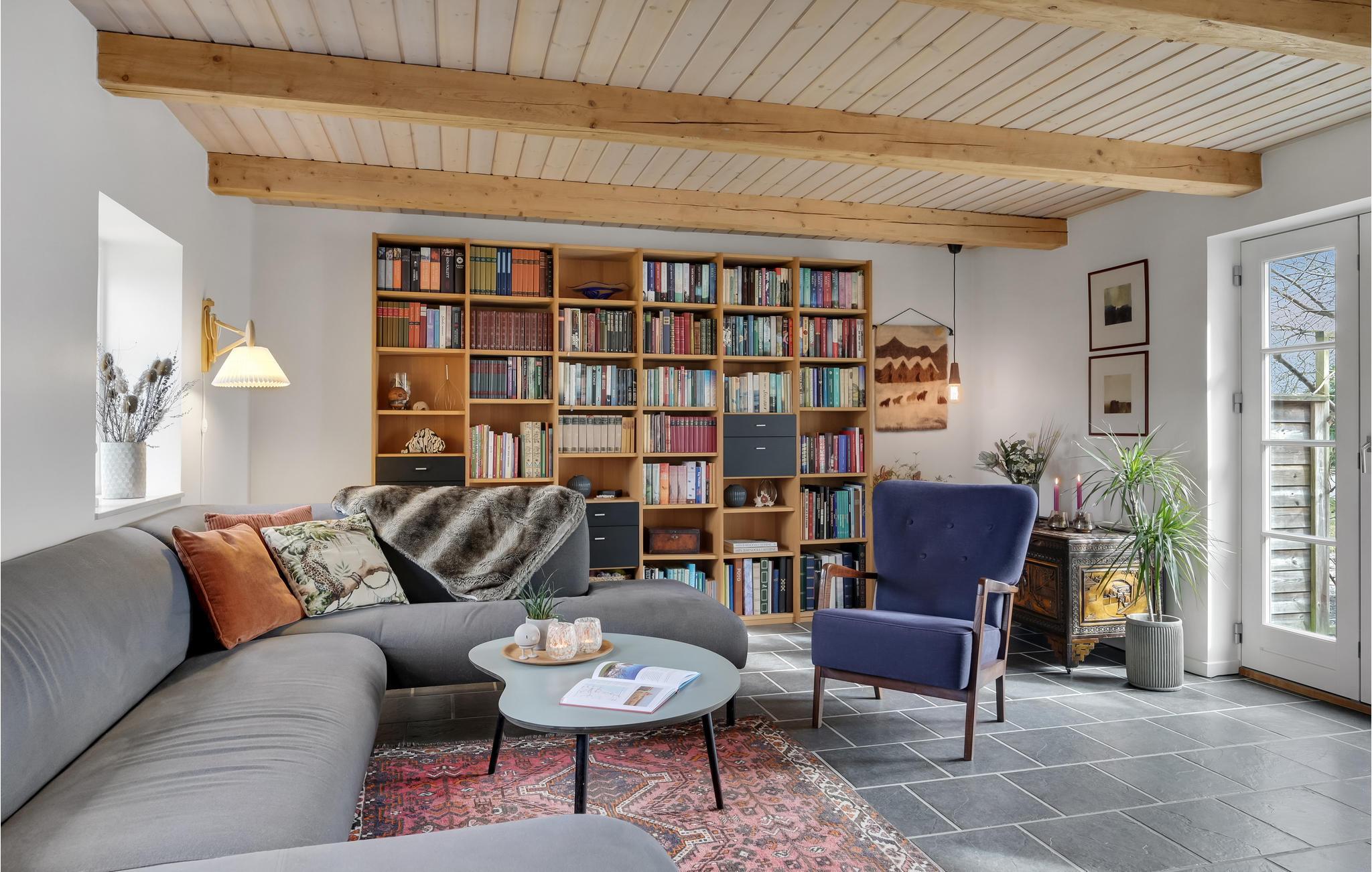 Velkommen til et dejligt stort hus, hvor der er god plads til hele familien. Her får I en velindrettet feriebolig med indbydende soveværelser og dejlige fællesarealer, hvor I kan slappe af sammen efter en lang dag på farten. Tænd op i brændeovnen på en kølig dag og sæt jer med brætspil, bøger og varm kakao, mens maden simrer på komfuret. I sommerhalvåret kan I dække op til dagens måltider udendørs og lade børnene boltre sig på græsplænen.