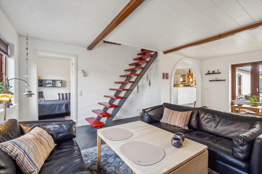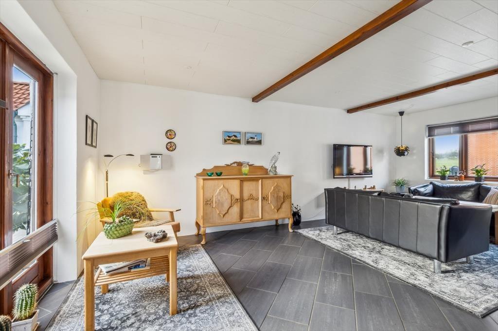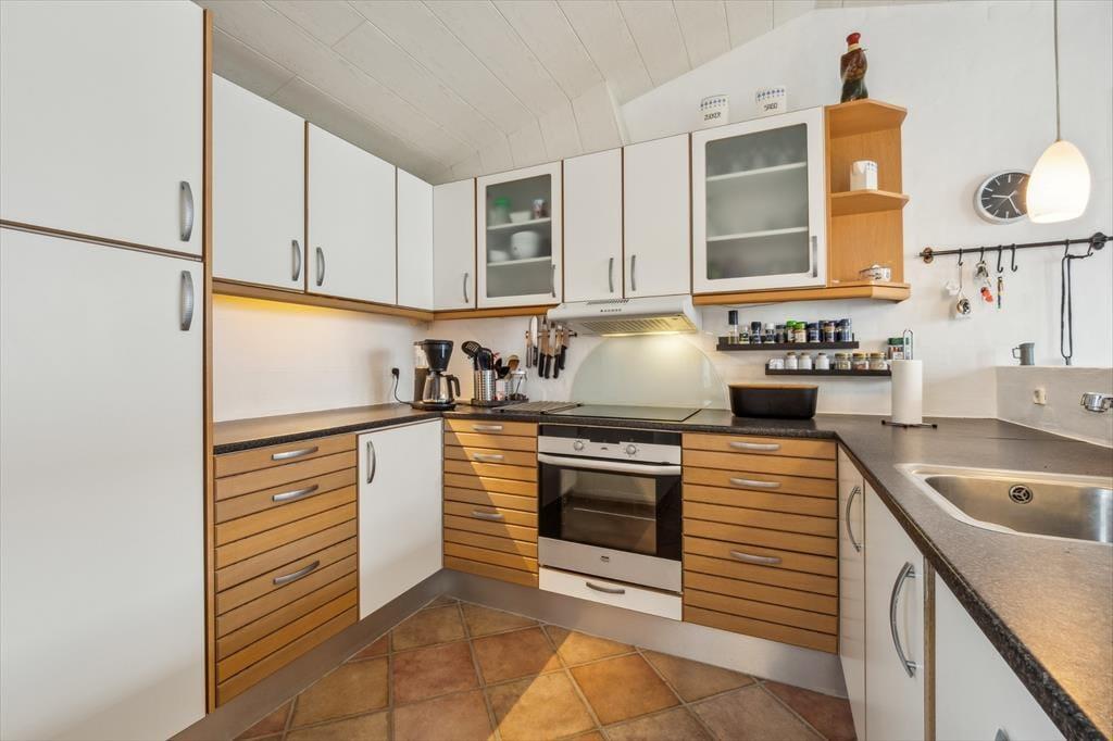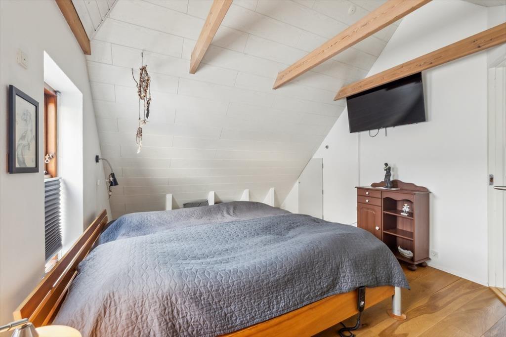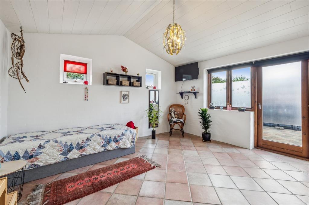 Husets hjerte er det store køkken/alrum, der ligger i åben forbindelse med opholdsstuen. Her kan du samle familie og venner til madlavning, brætspil og lange samtaler, mens dagslyset strømmer ind gennem vinduerne. Stemningen indbyder til langsomme feriemorgener med kaffe ved bordet og afslappede aftener, hvor dagens oplevelser vendes i ro og mag. De rummelige værelser giver mulighed for privatliv og fordybelse, og hele huset fremstår som et energivenligt og behageligt sommerhus, der er skønt at opholde sig i året rundt.
