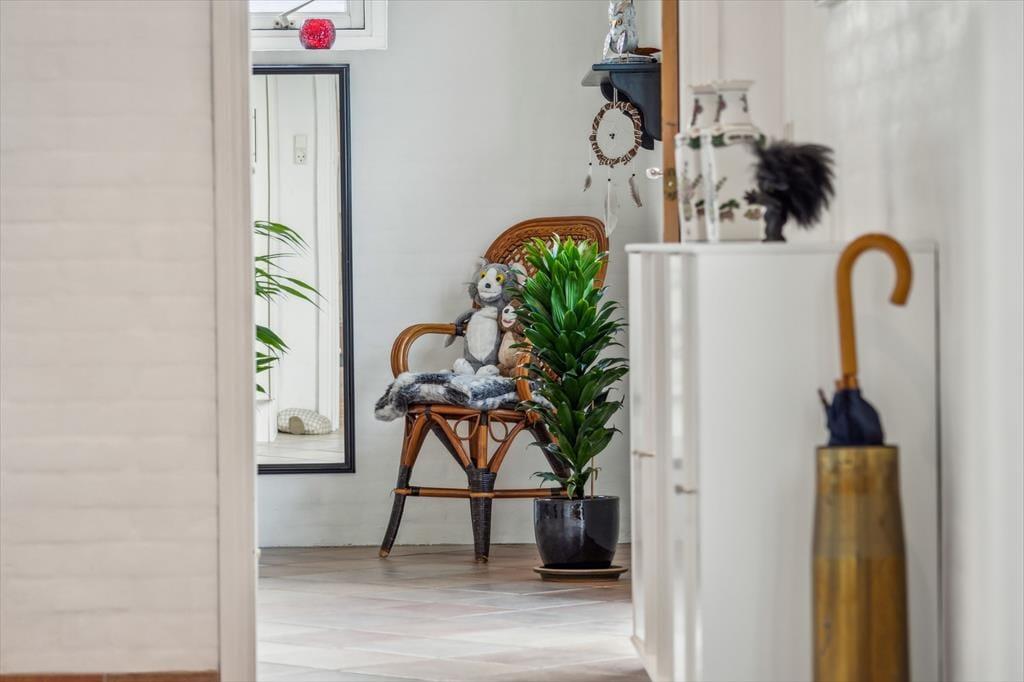 Når du træder ind i sommerhuset, mærker du straks den behagelige atmosfære, som kendetegner dette klassiske fiskerhus. Indretningen er lys og indbydende, og de nænsomme renoveringer sikrer, at husets oprindelige charme er bevaret, samtidig med at komforten er i top. Den rummelige entré giver god plads til overtøj og feriens små ritualer, mens bryggerset gør det nemt at skifte mellem ude- og indeliv efter en dag ved havet.