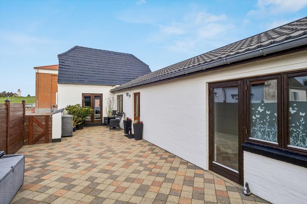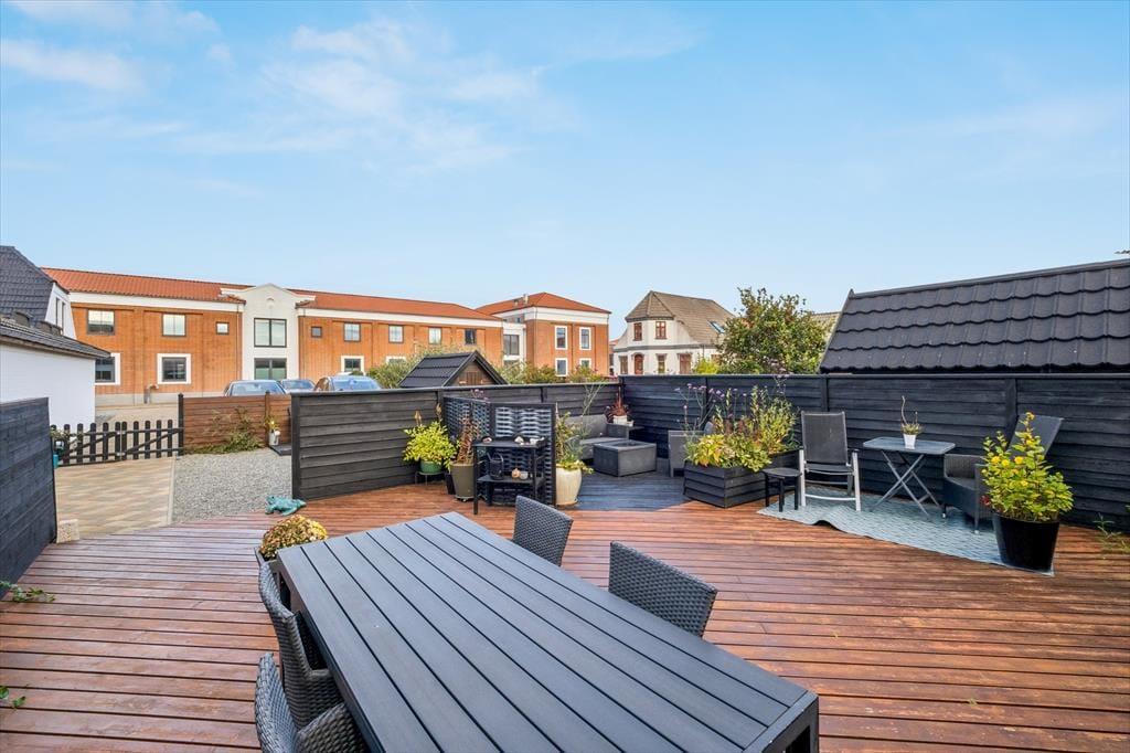 Udenfor venter flere dejlige terrassearealer, som giver dig mulighed for at nyde ferielivet i det fri – uanset tidspunktet på dagen. Her kan du finde en solrig krog til morgenkaffen, et roligt hjørne til en god bog eller et hyggeligt sted at samles til grill og lange sommeraftener. Terrasserne skaber en naturlig forlængelse af opholdsrummene og gør det nemt at lade inde og ude smelte sammen.