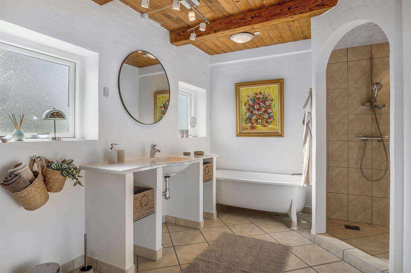 Der er 2 badeværelser med bruseniche og 2 toiletter. Badekar.
