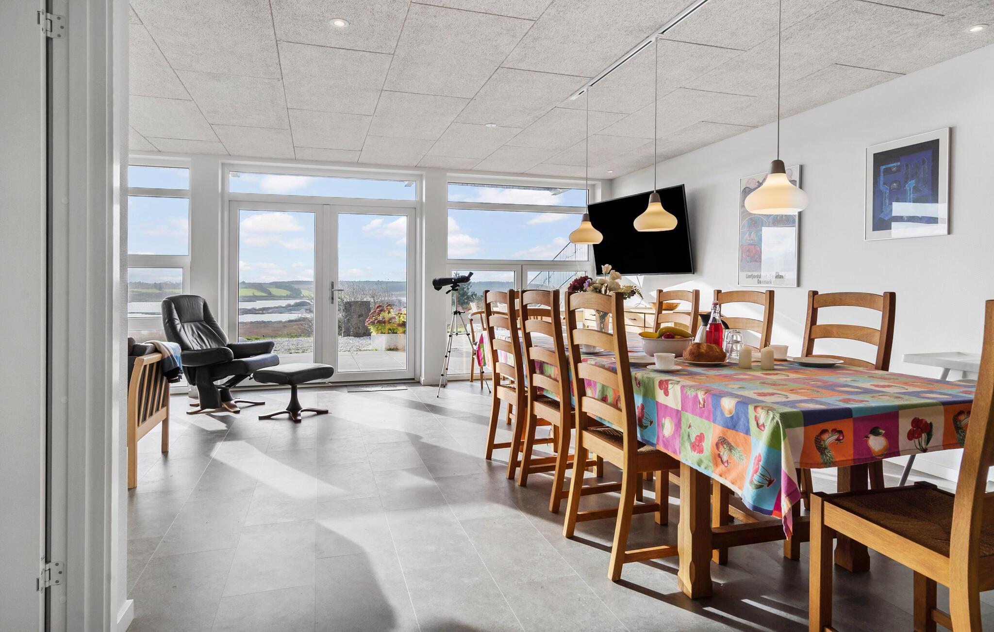 Nyd ro og vidder i et moderne feriehus nær Hanstholm med stor terrasse, shelter, og panoramaudsigt over søen.
