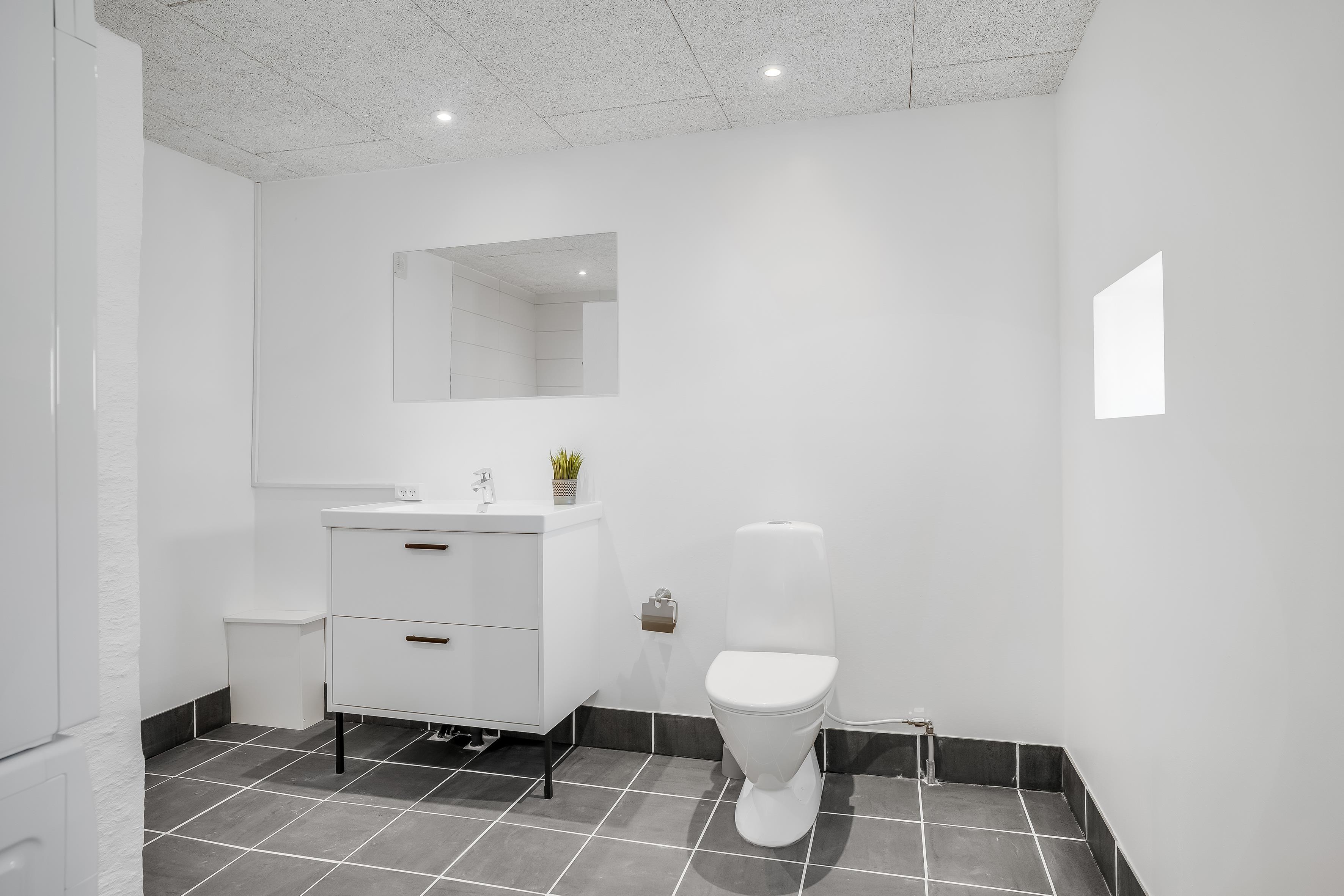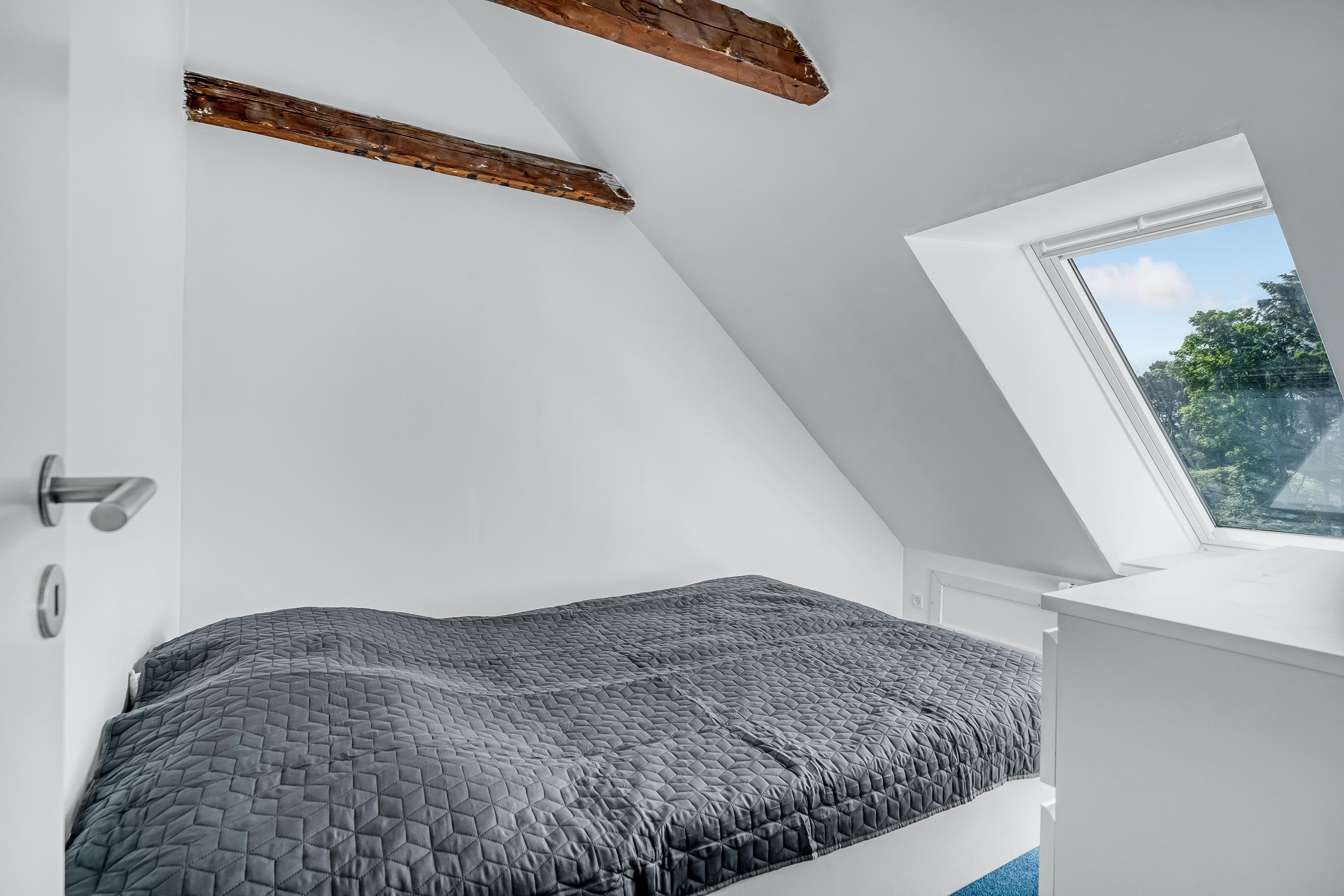 Boligen har i alt 4 soveværelser, alle med dobbeltsenge, hvilket giver masser af sovepladser til op til 8 personer. Der er også en barneseng og barnestol til rådighed, hvilket gør huset perfekt til familier med små børn. Badeværelset er moderne og komfortabelt, udstyret med gulvvarme, bruser og to toiletter for at sikre, at alle har den plads, de har brug for, selv i travle tider.