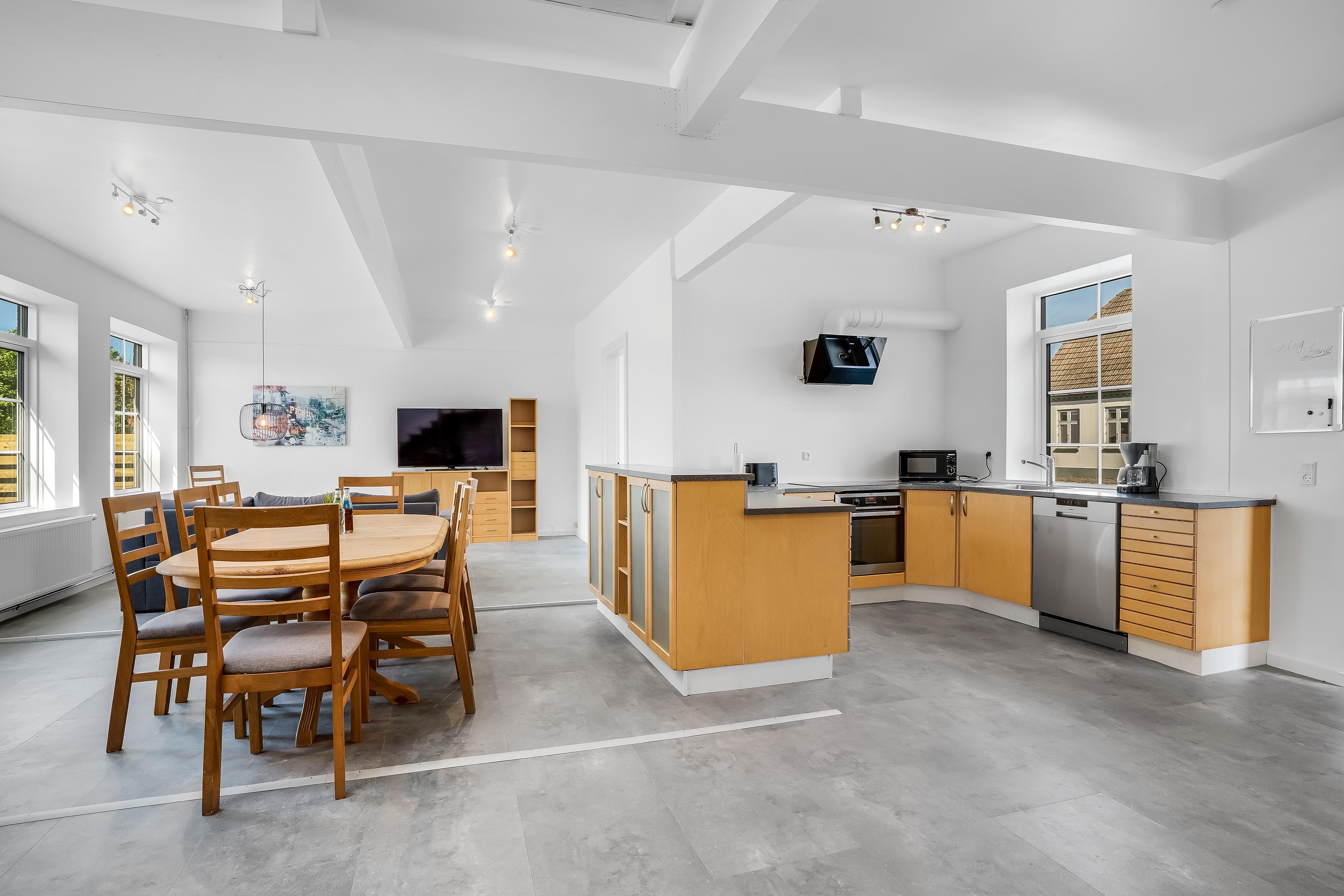 Indenfor finder du et lyst og luftigt opholdsområde, der er perfekt til at samles med familie og venner. Stuen er udstyret med et fjernsyn, der tilbyder dansk TV og Chromecast, så du kan nyde dine yndlingsprogrammer og film. Det trådløse internet gør det nemt at holde kontakten med verden, hvis du ønsker det.